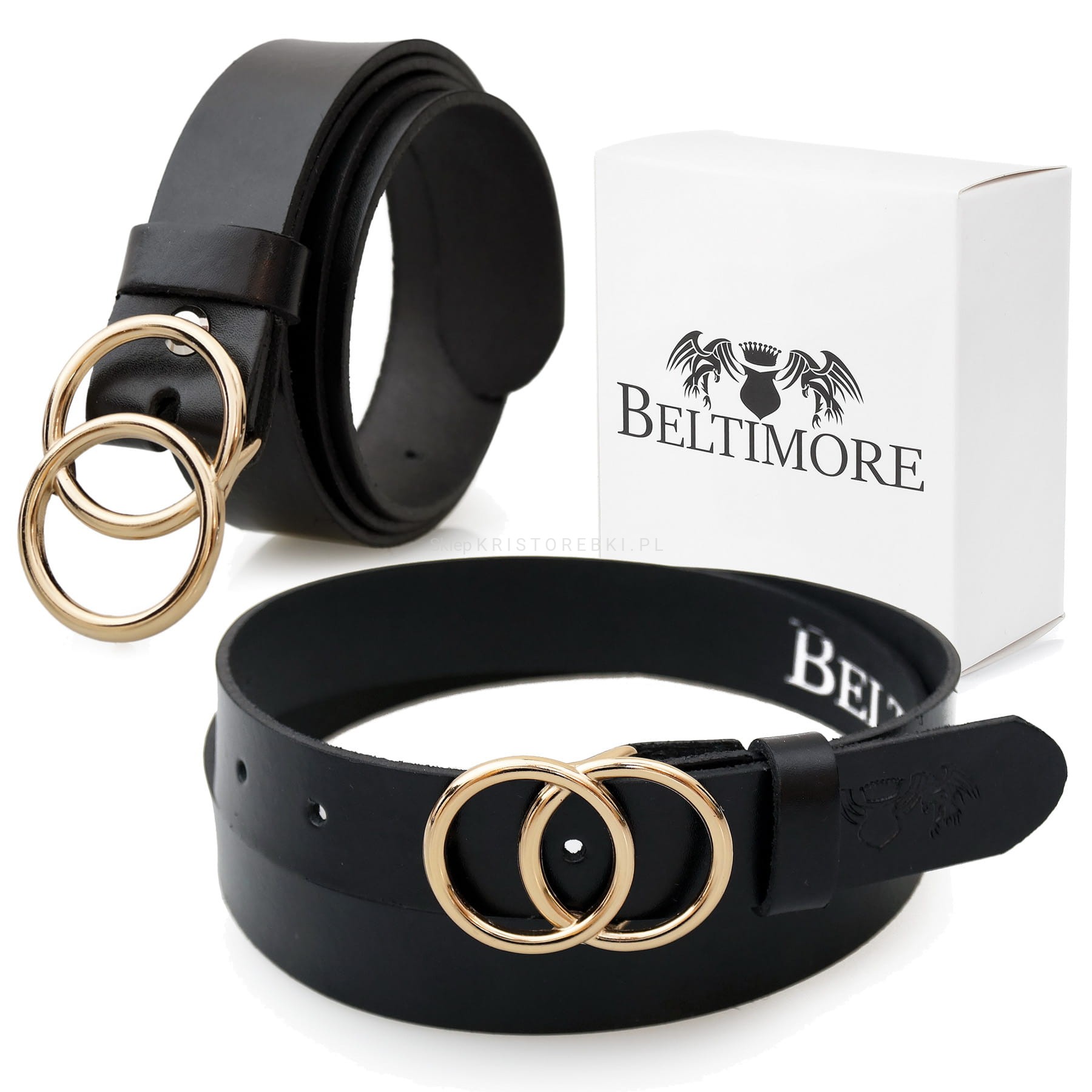 BELTIMORE pasek skórzany damski do spodni sukienki A028 czarny