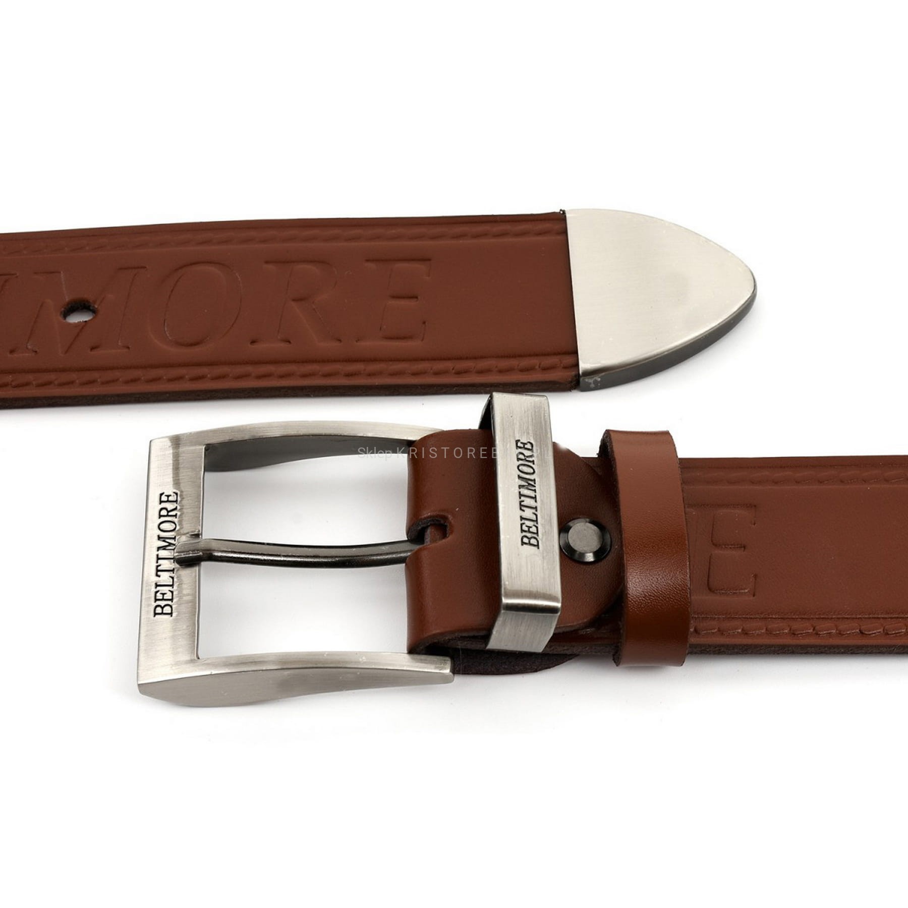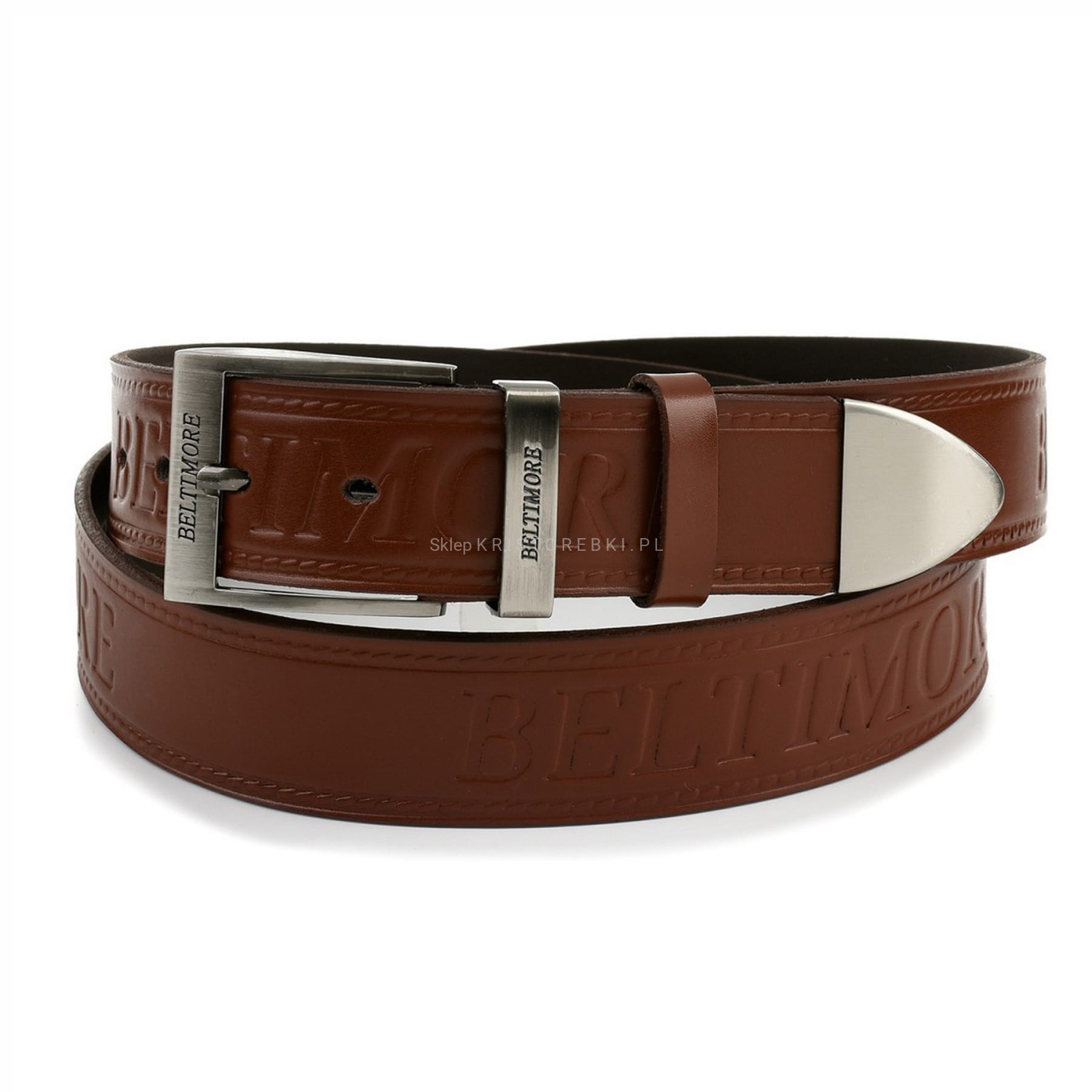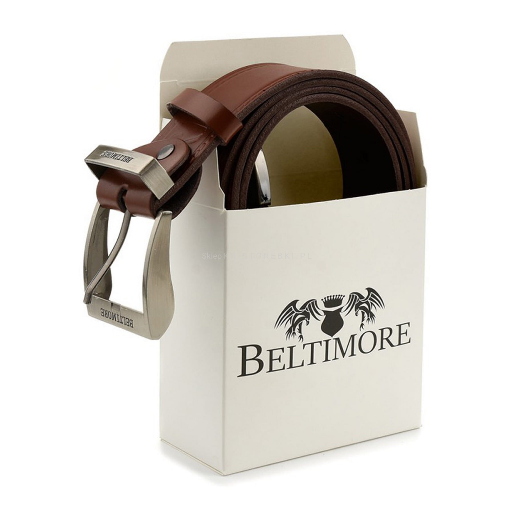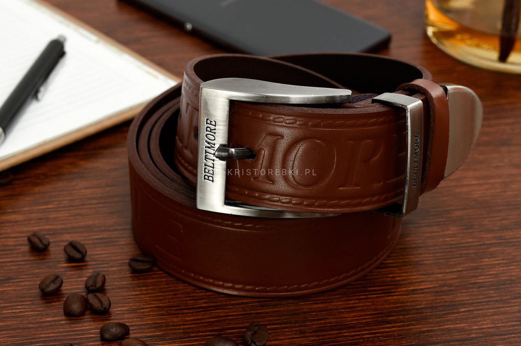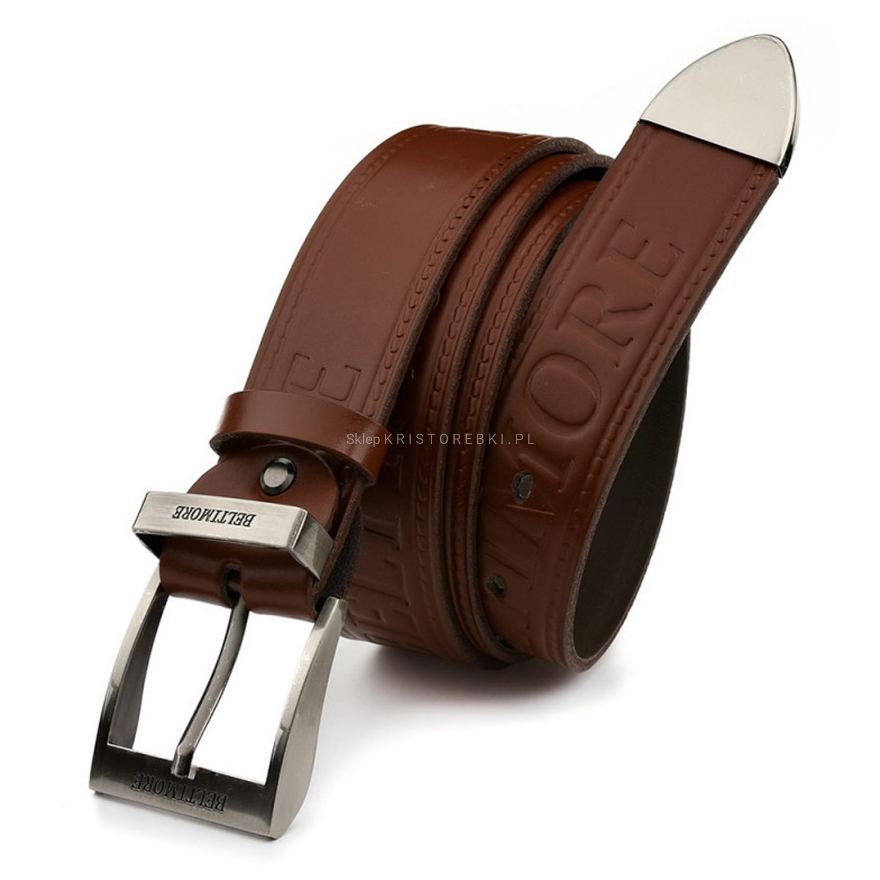 Męski pasek marki BELTIMORE wykonany z grubej i pachnącej skóry naturalnej w kolorze BRĄZOWYM. Oferowany skórzany pasek, to przede wszystkim kultowa pozycja na rynku europejskim. Uniwersalny kolor, prosta i elegancka klamra sprawiają, że pasek sprawdzi się do większości luźnych spodni, jeansów, czy krótkich spodenek. Wykonany jest ze dobrej, wołowej skóry naturalnej, dzięki czemu posłuży Ci na długi okres. Do paska dołączona jest dodatkowa szlufka ułatwiająca jego noszenie a koniec zdobi metolowe ozdobne i ochronne okucie. Pasek jest idealnym rozwiązaniem również na prezent dla bliskiej osoby.