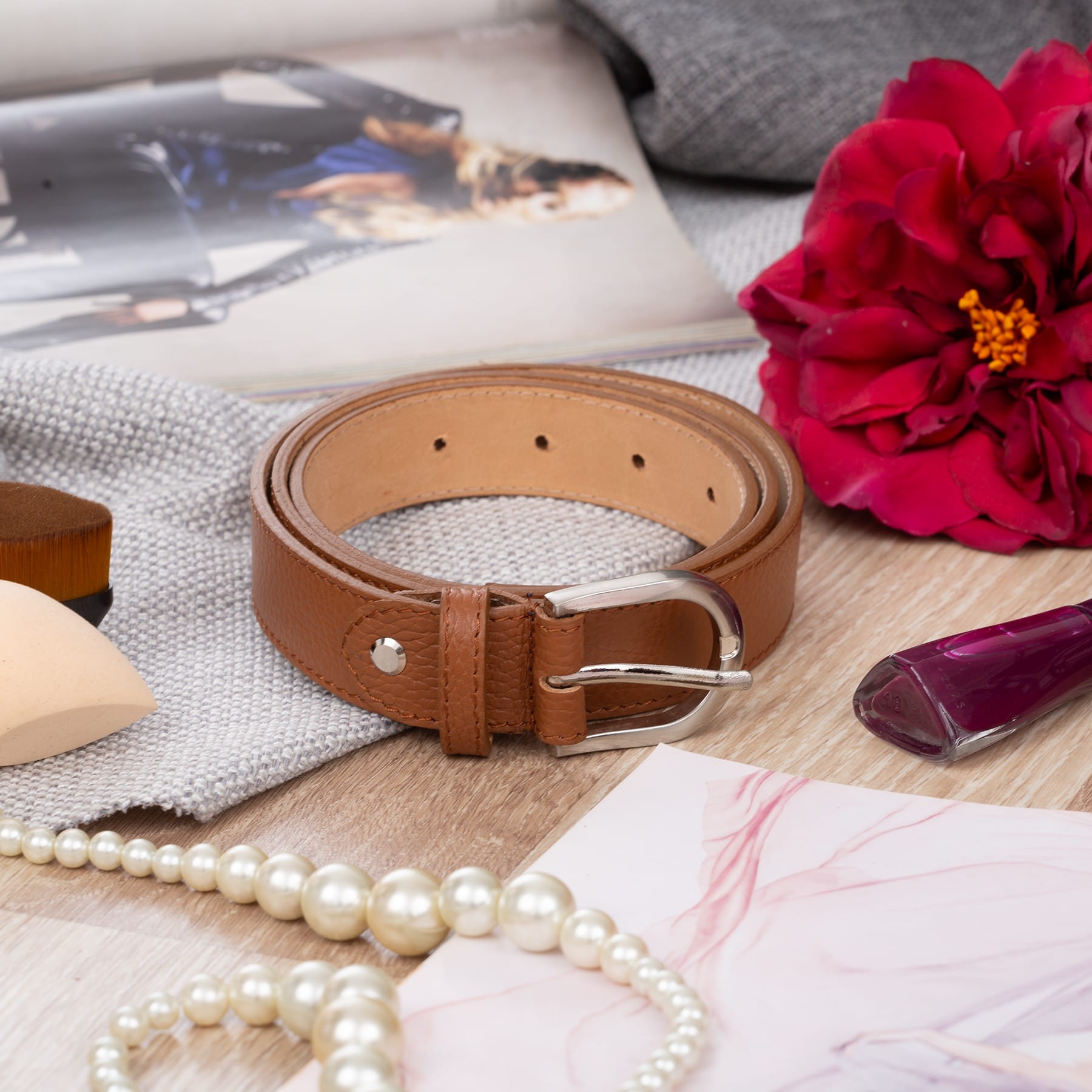 VERA PELLE pasek damski skórzany klasyczny do spodni i sukienki A058 camel