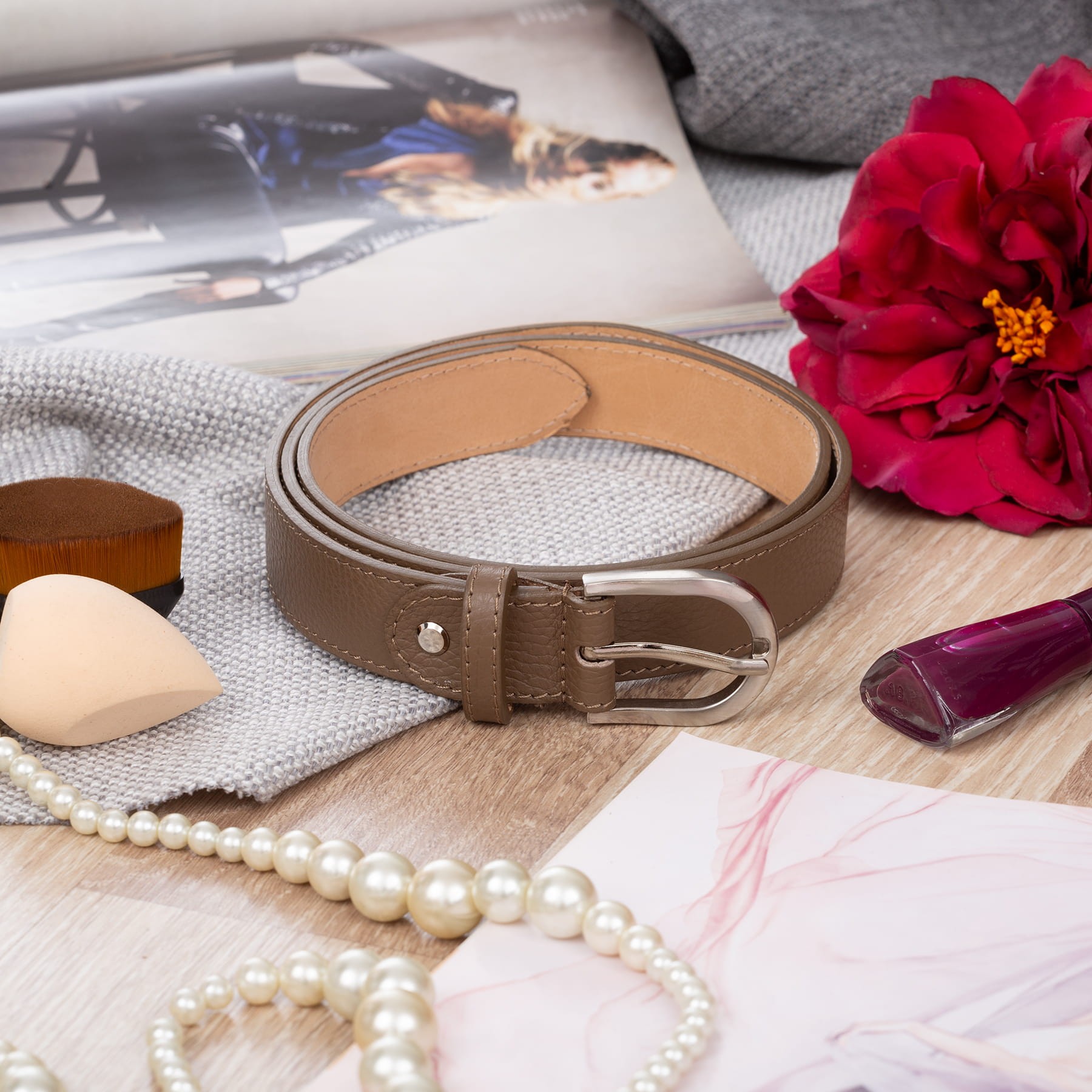 VERA PELLE pasek damski skórzany klasyczny do spodni i sukienki A058 taupe