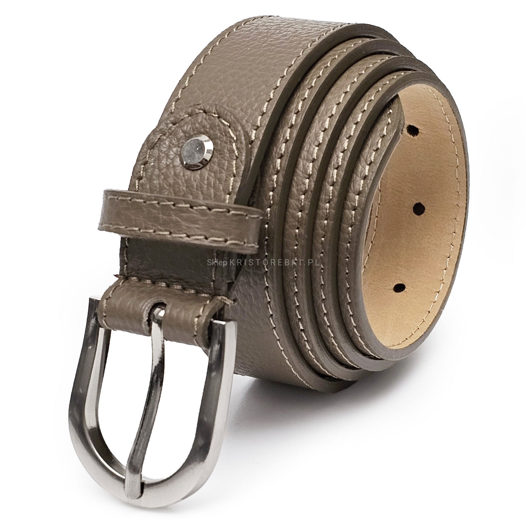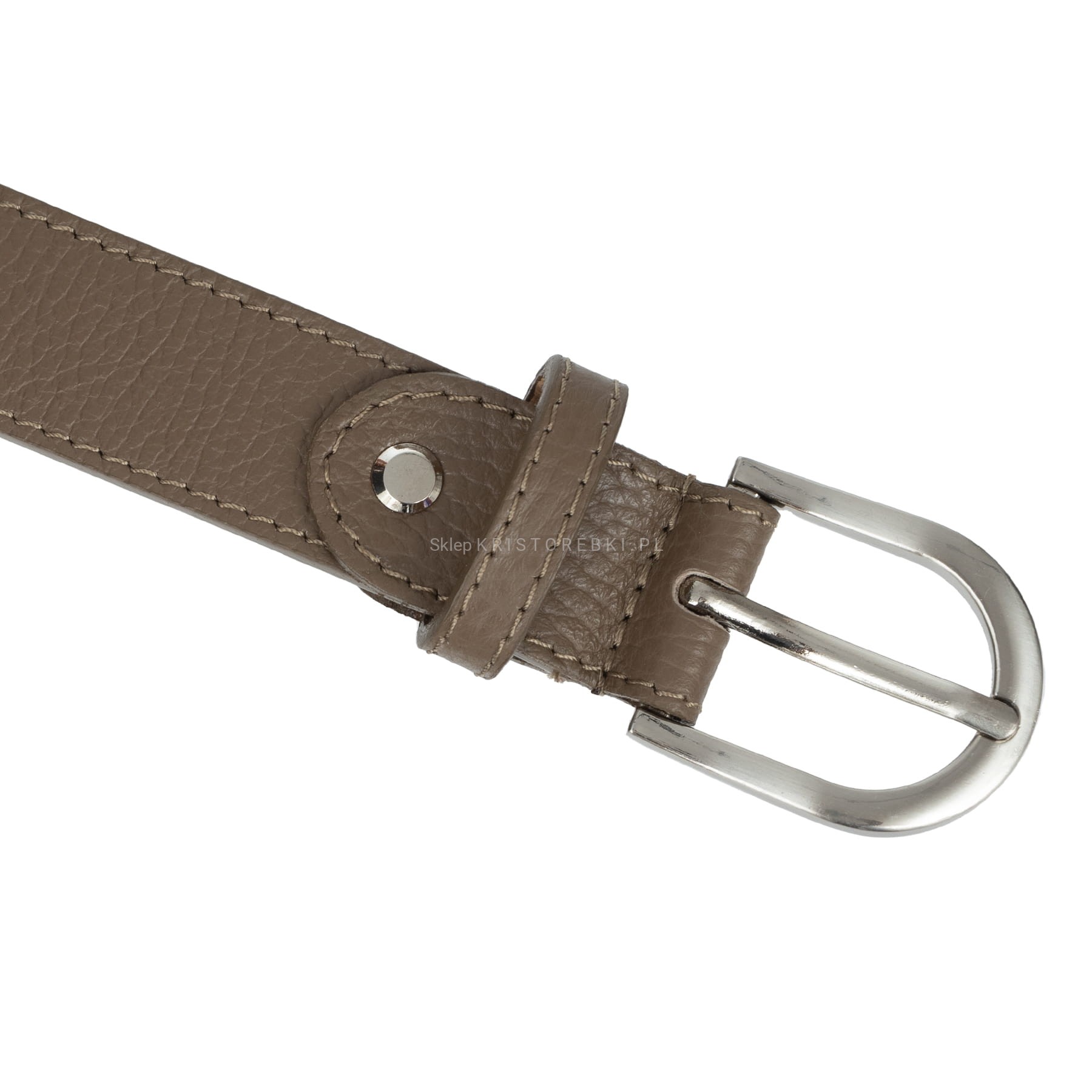 Damski pasek znanej i cenionej na rynku europejskim marki VERA PELLE ITALY w kolorze TAUPE. Wyprodukowany z najwyższej jakości włoskiej skóry naturalnej. Posiada klasyczną klamrę na bolec w kolorze SREBRNYM. Pasek ten będzie świetnym dodatkiem do codziennych i wieczorowych stylizacji. Pasek dodatkowo posiada możliwość dowolnego skracania. Wystarczy odkręcić tylną śrubkę, wyjąć pasek z mocowania, skrócić o preferowaną długość, zrobić nową dziurkę i ponownie skręcić.