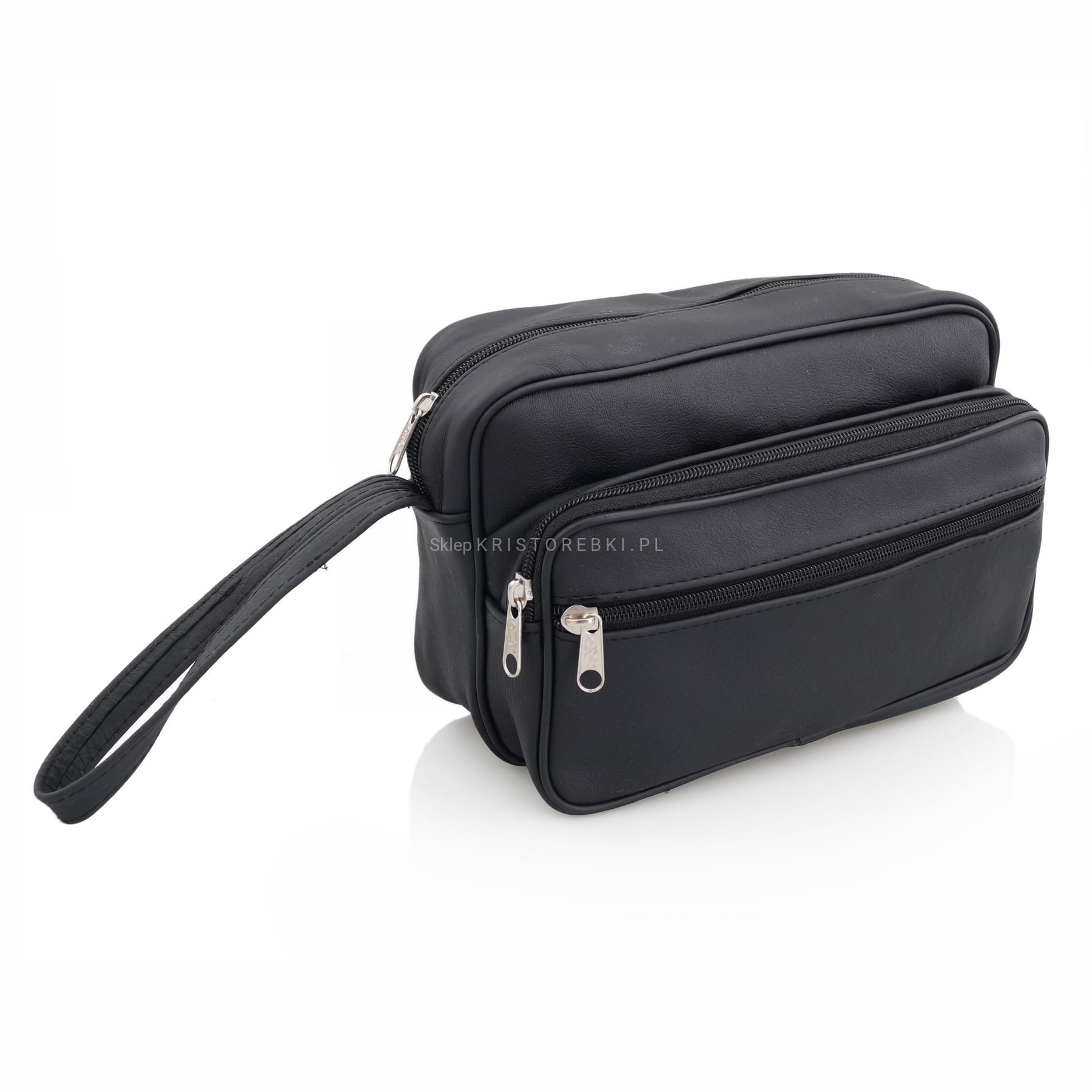 SASZETKA męska skórzana do ręki na dokumenty i pieniądze duża E008 czarna
