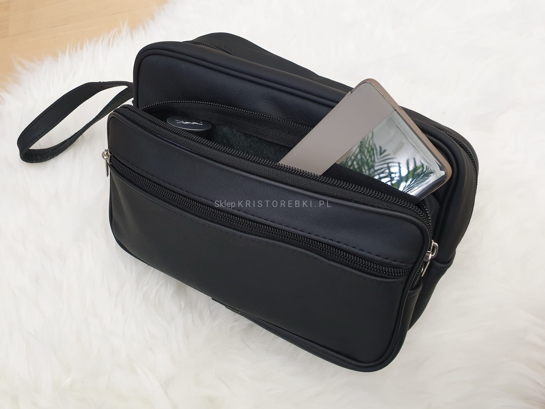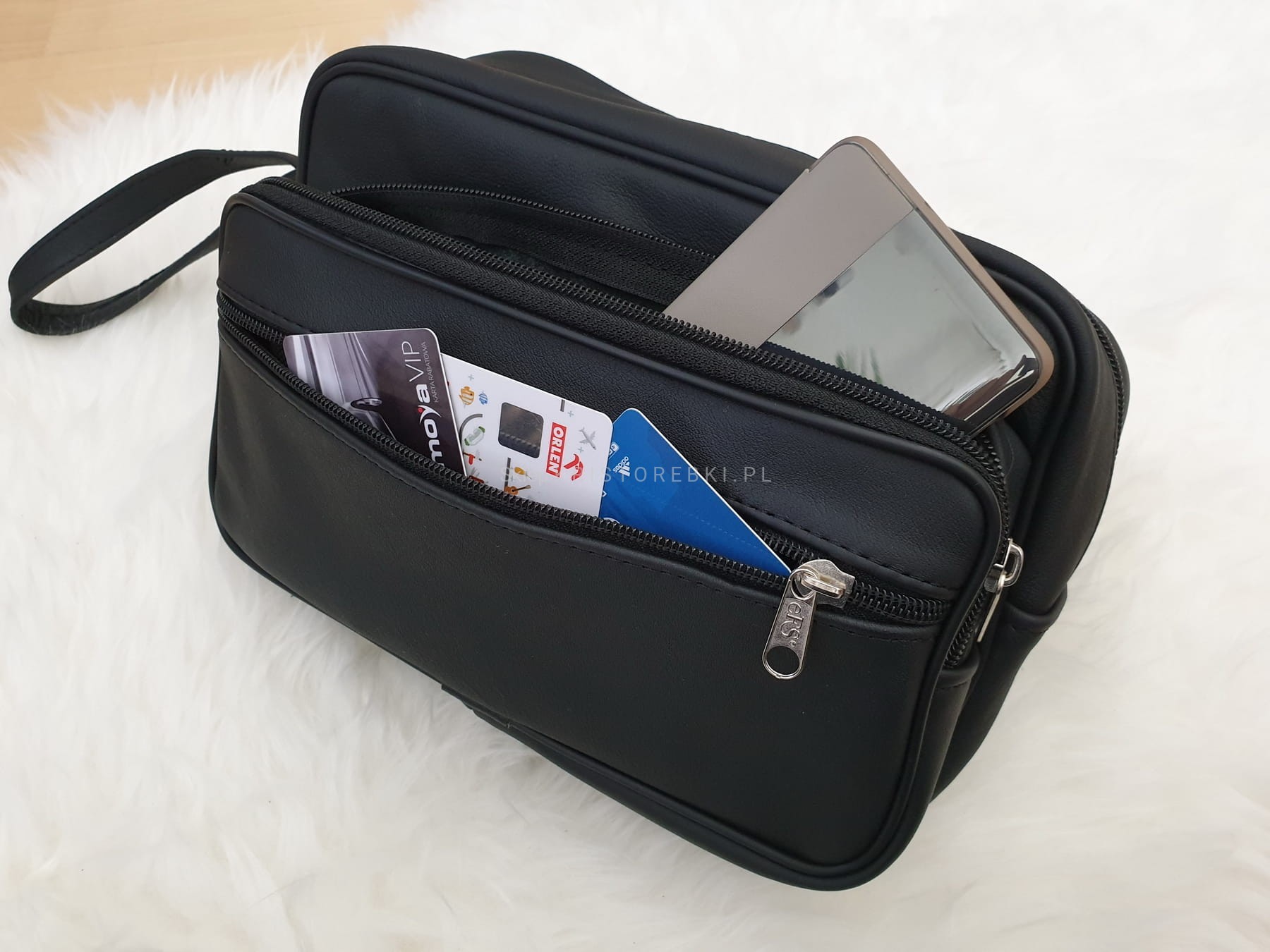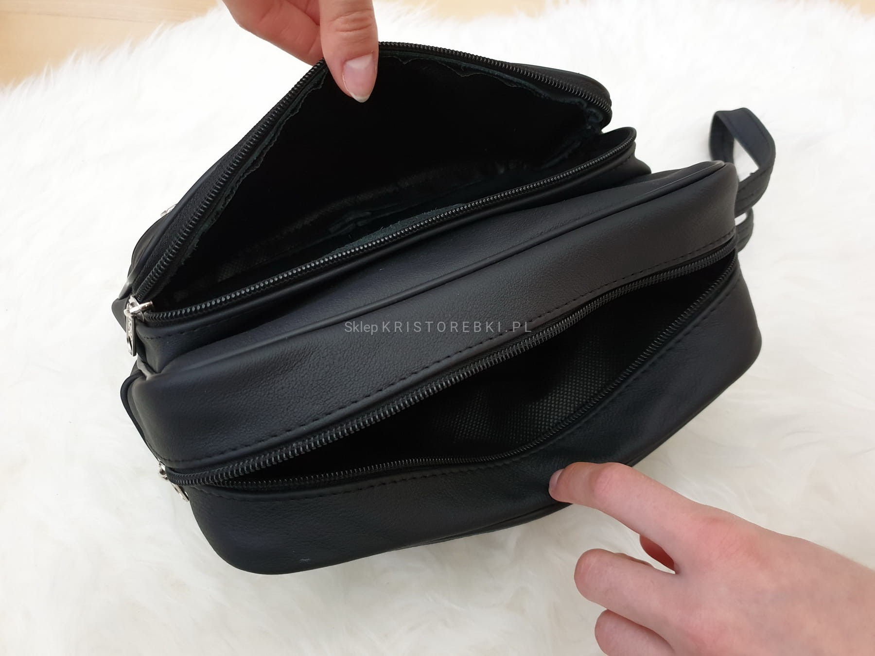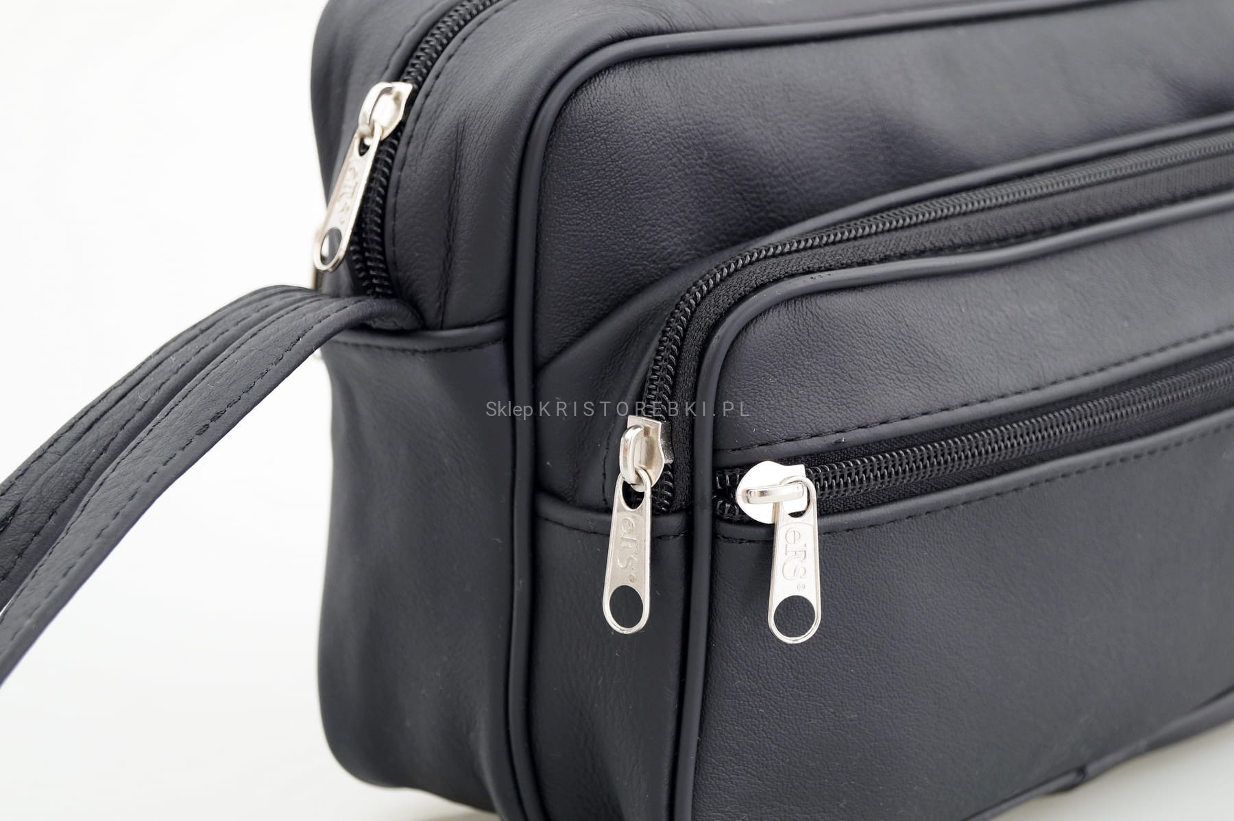 Funkcjonalna i solidna saszetka męska produkcji POLSKIEJ w kolorze CZARNYM. Wykonana została z wysokiej jakości skóry naturalnej. Saszetka jest w wersji XL, dzięki czemu jest bardzo praktyczna i pojemna. Saszetka posiada jedną dużą komorę zamykaną na suwak. Z przodu saszetki znajduje się kieszeń zamykana na suwak a na jej froncie znajduje się dodatkowa kieszeń zamykana na suwak. Z tyłu saszetki znajduje się kolejna praktyczna kieszeń zamykana na suwak. Saszetka posiada specjalny uchwyt do noszenia w ręku. Idealnie sprawdzi się do przewożenia dokumentów i gotówki.