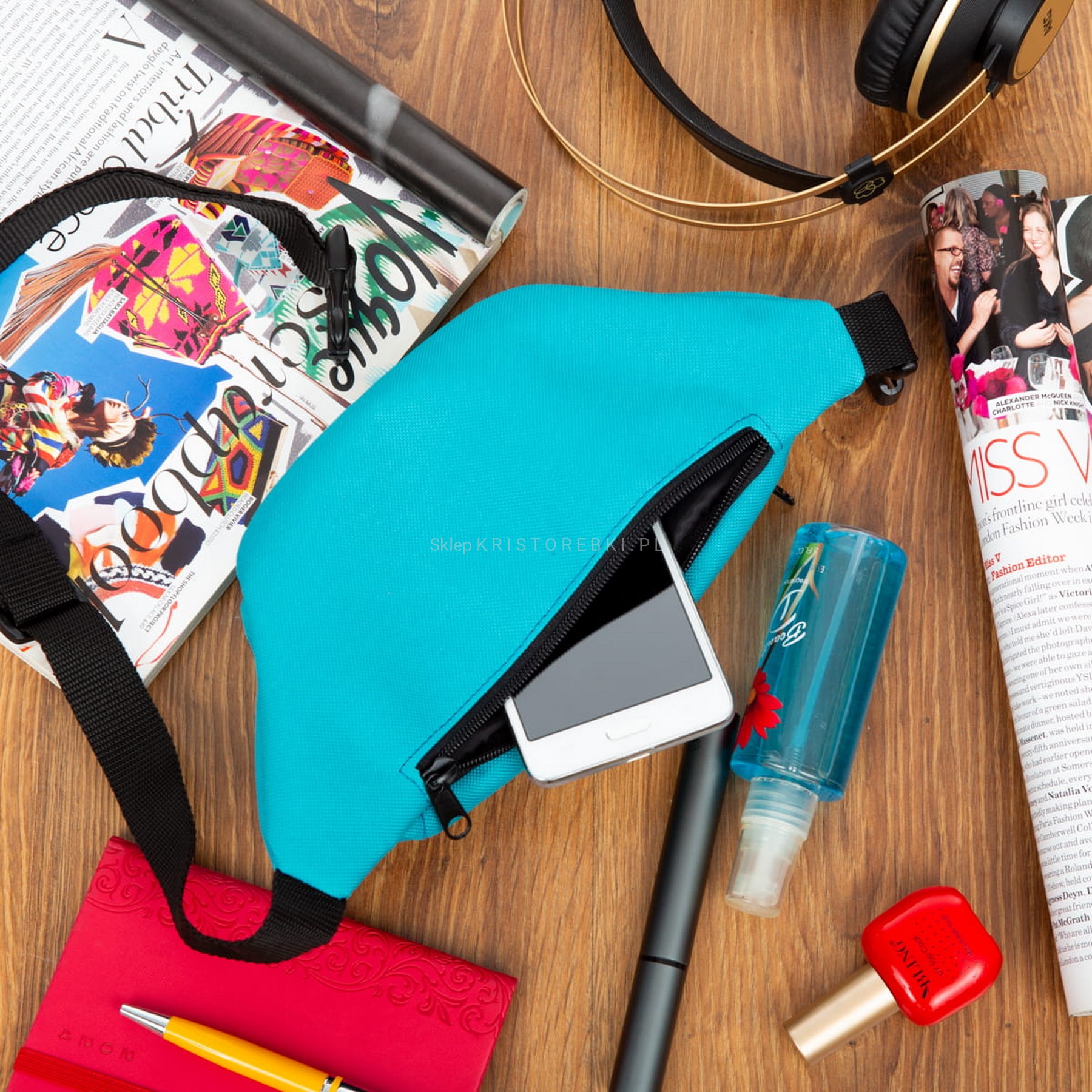 NERKA saszetka biodrówka solidna polska N001 turkusowa