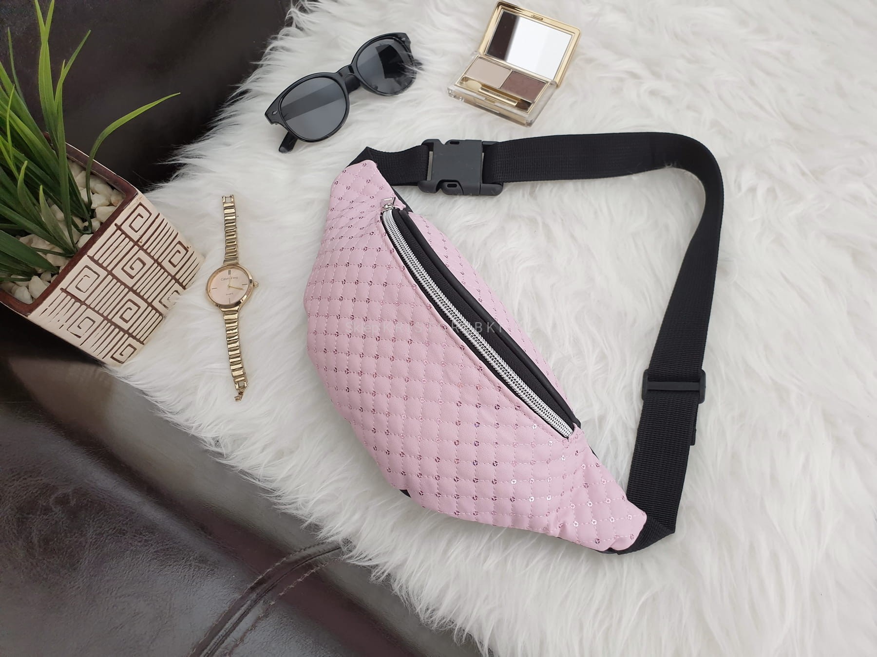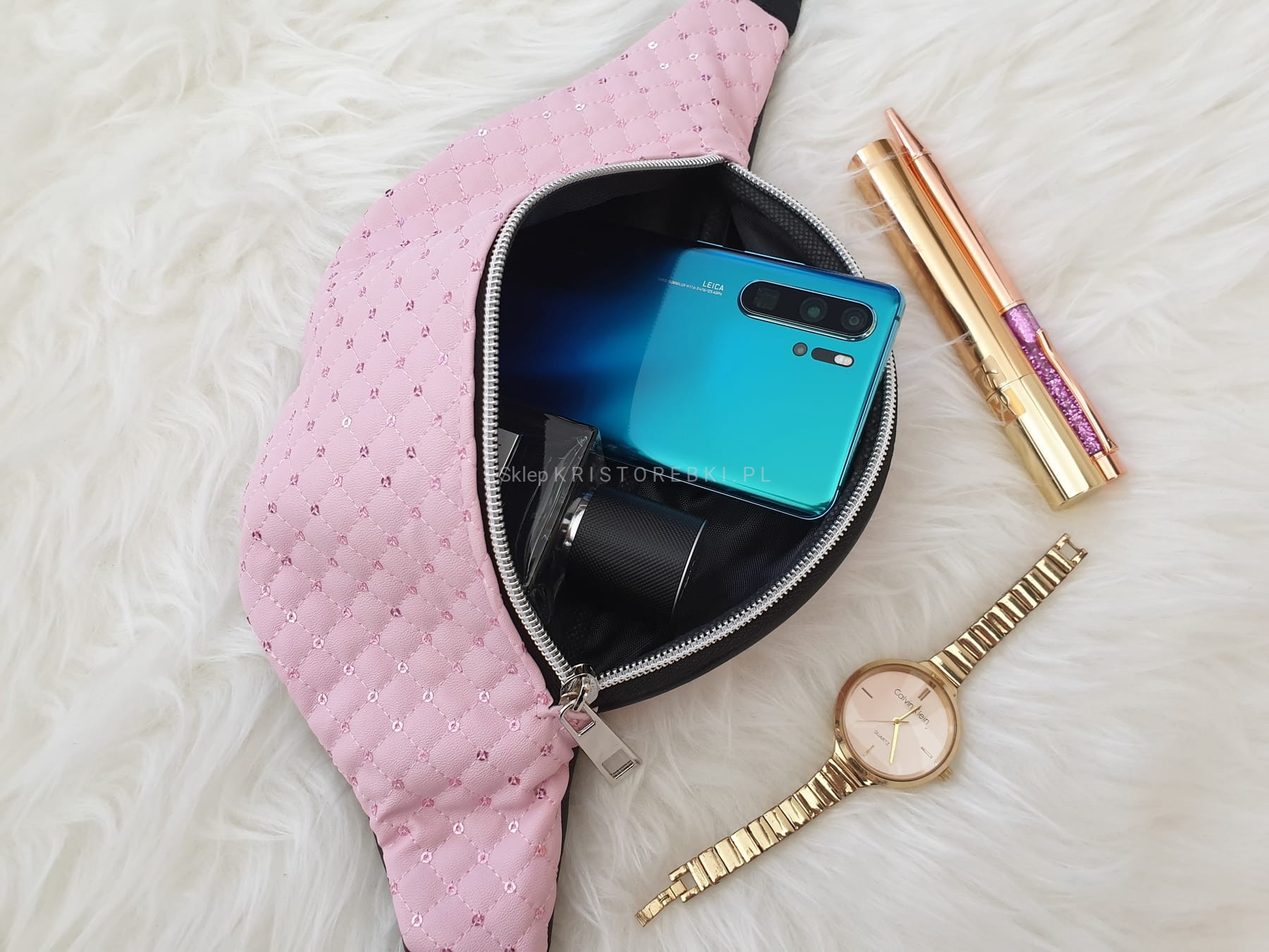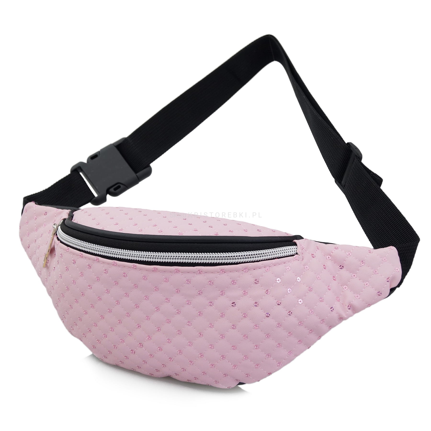 VERSOLI nerka damska saszetka biodrówka pikowana z cekinami N114 różowa