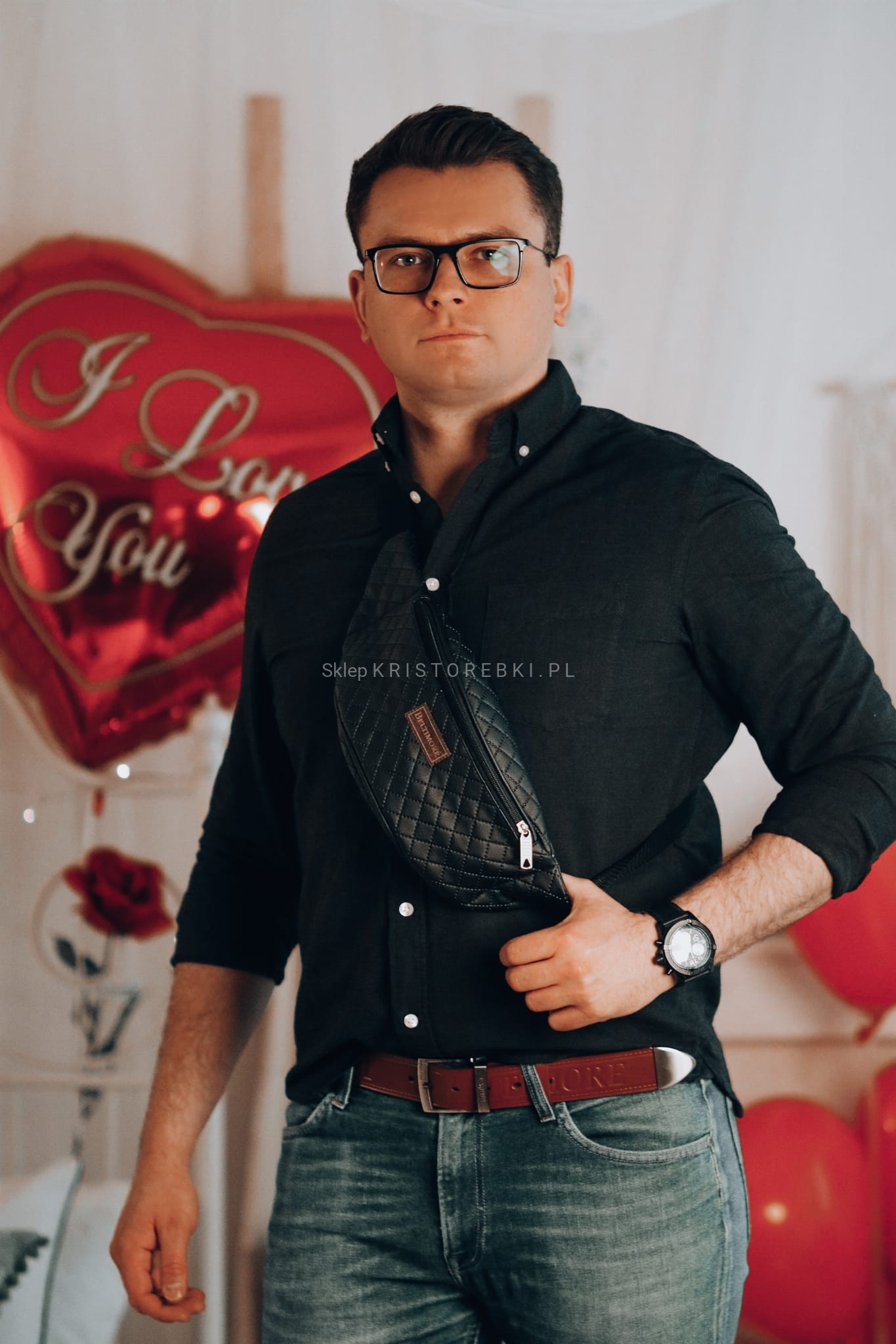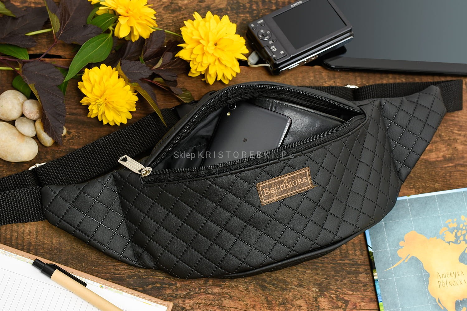 BELTIMORE nerka eko skórzana saszetka biodrówka pikowana N148 czarna