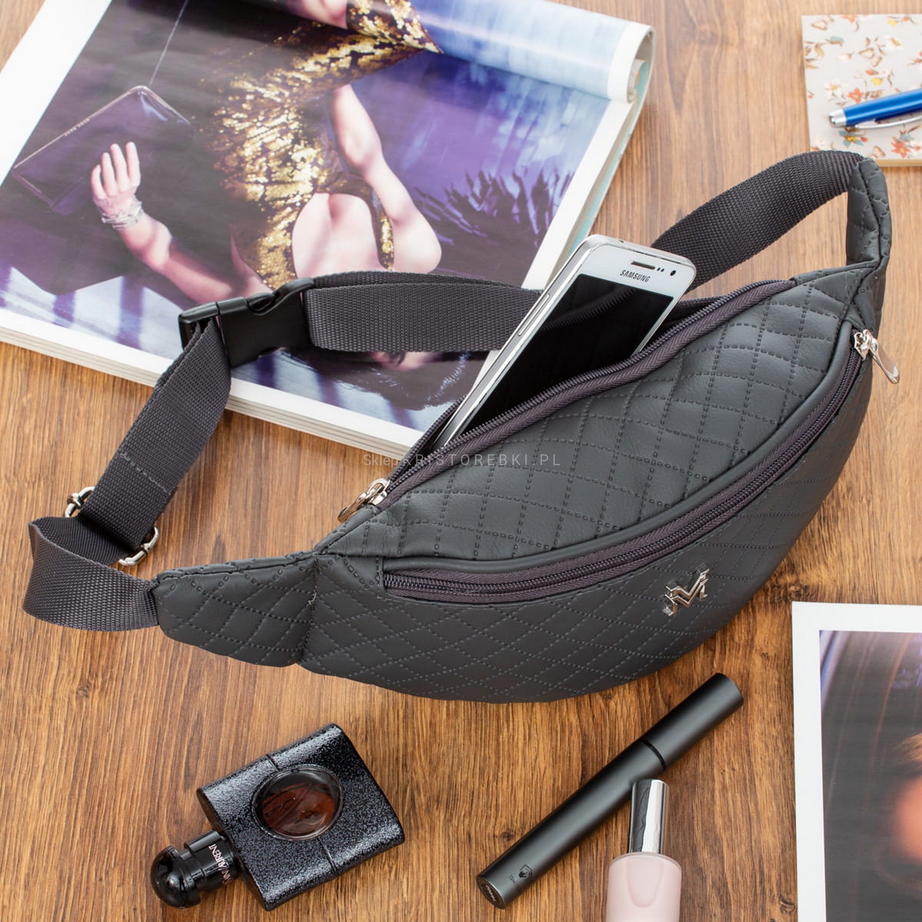 VERMARI nerka eko skórzana saszetka biodrówka pikowana N152 ciemna szara