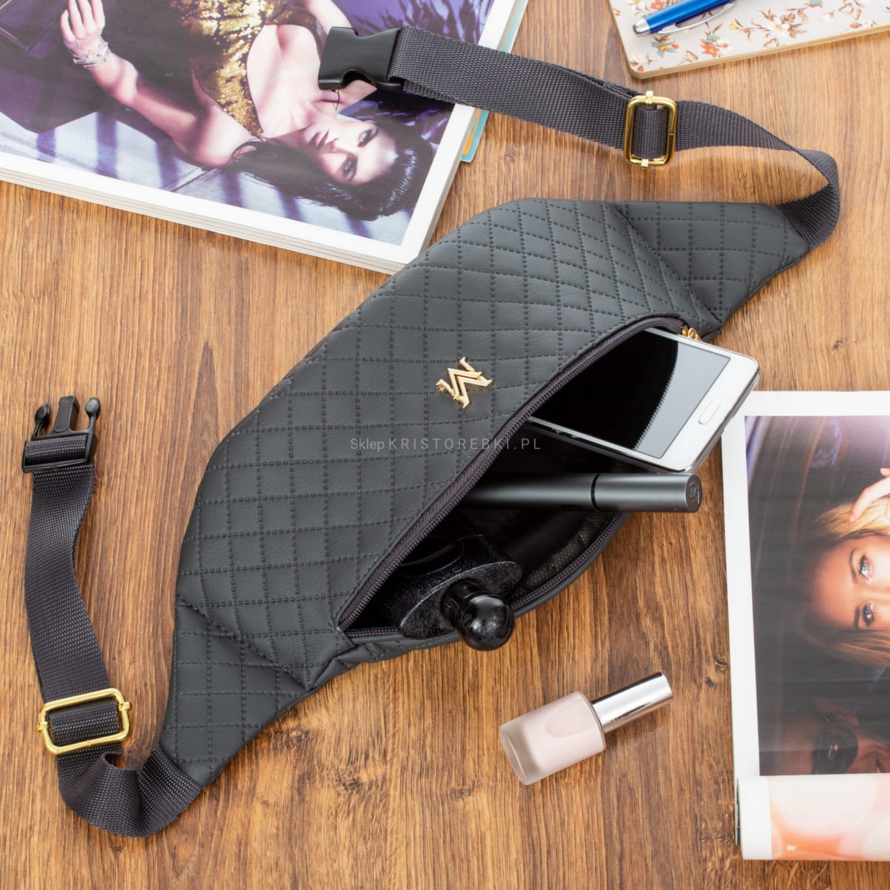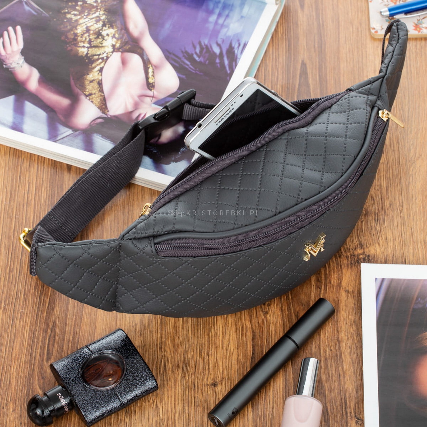 VERMARI nerka eko skórzana saszetka biodrówka pikowana N153 ciemna szara