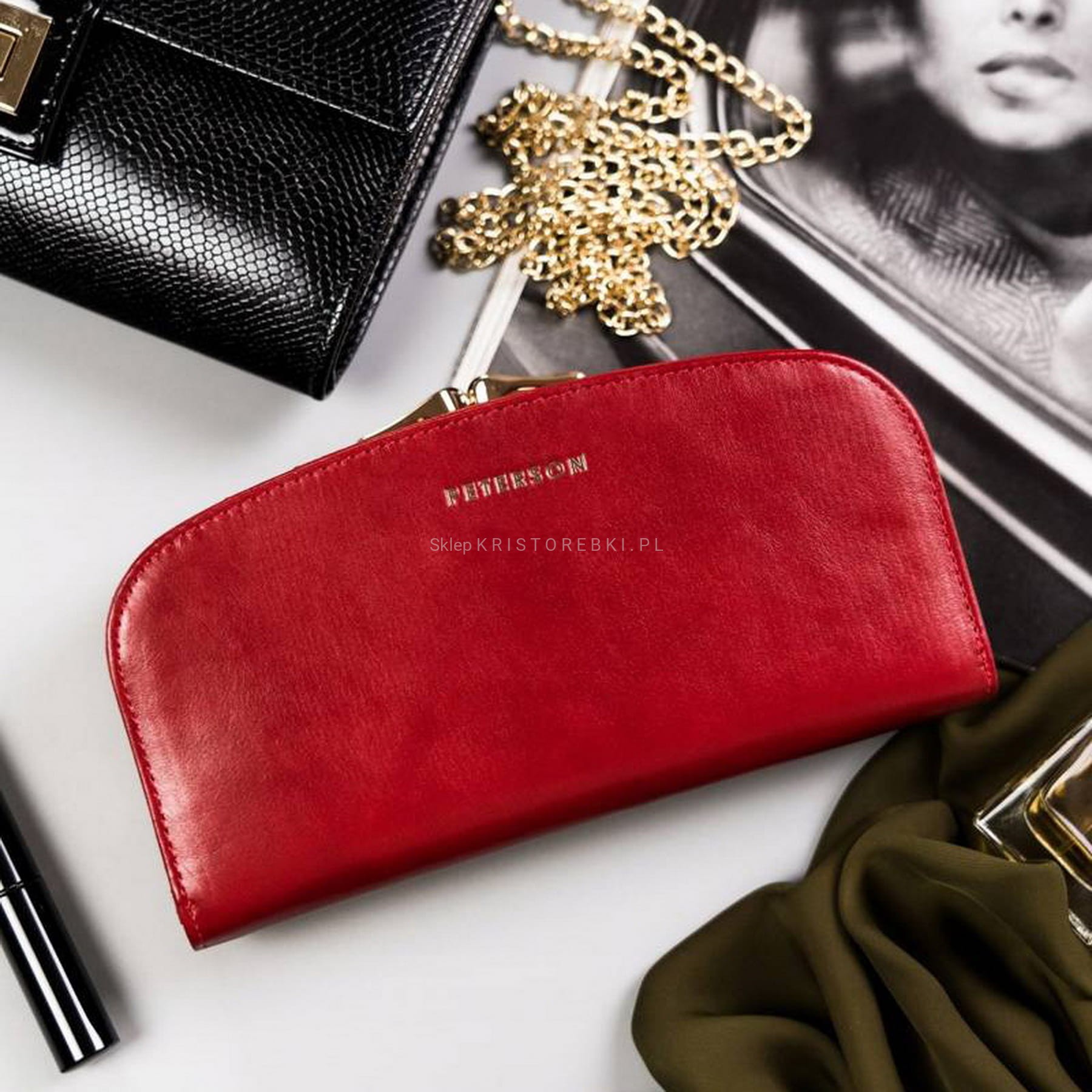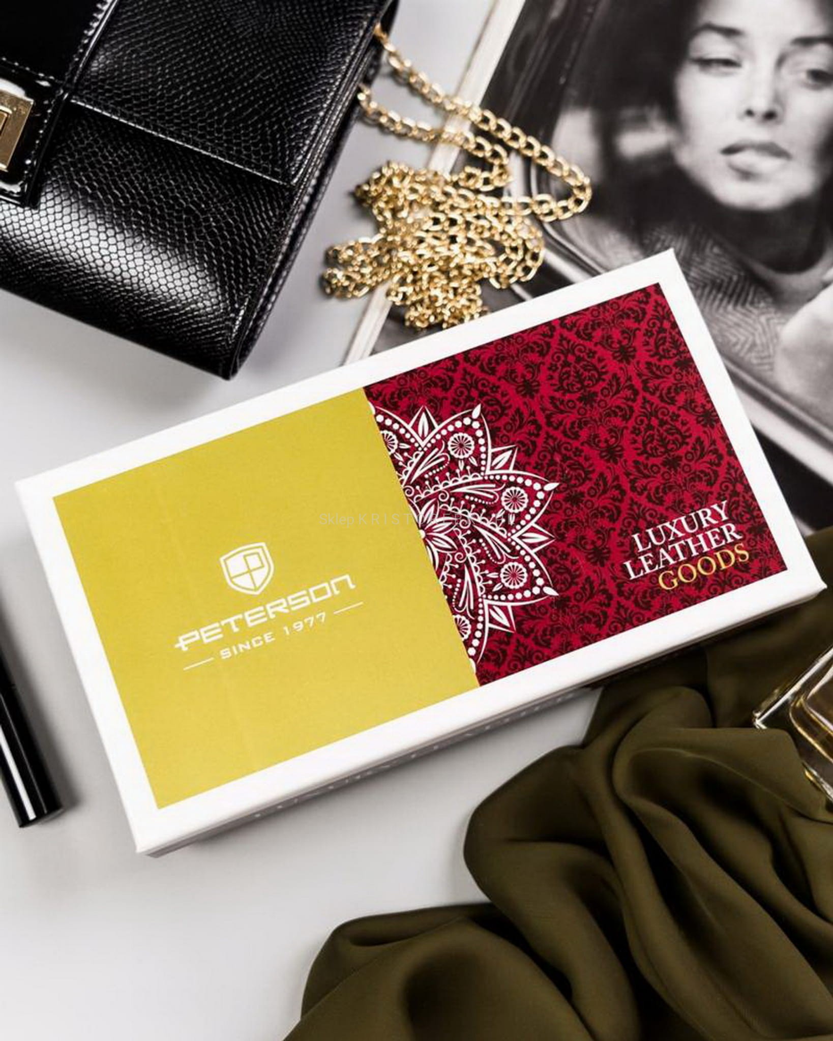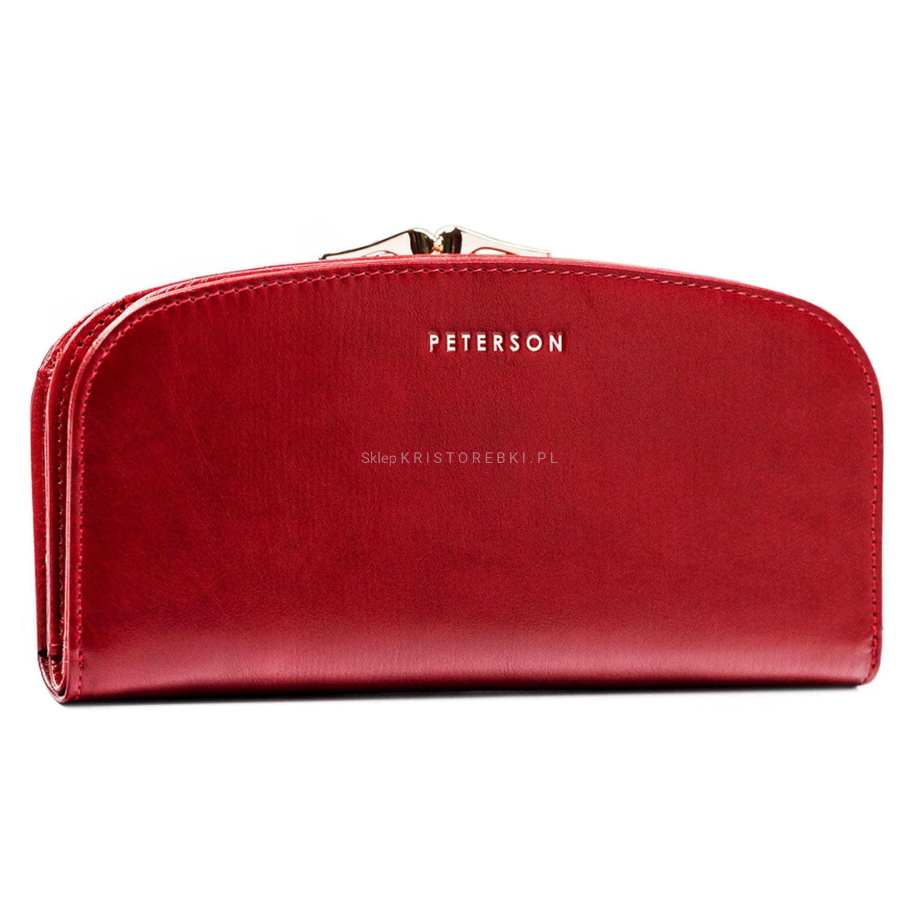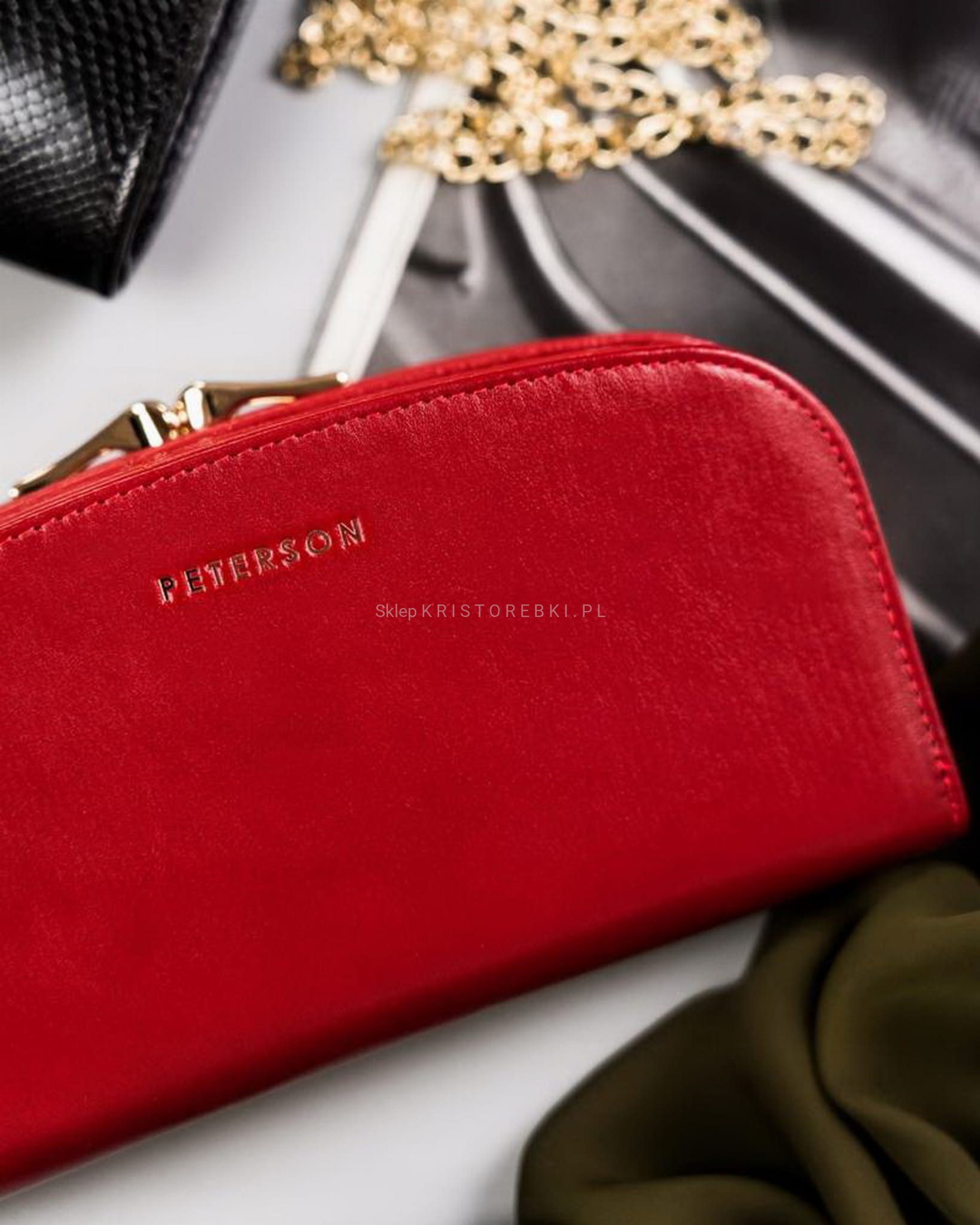 PETERSON portfel damski skórzany elegancki gładki matowy z biglem P172 czerwony