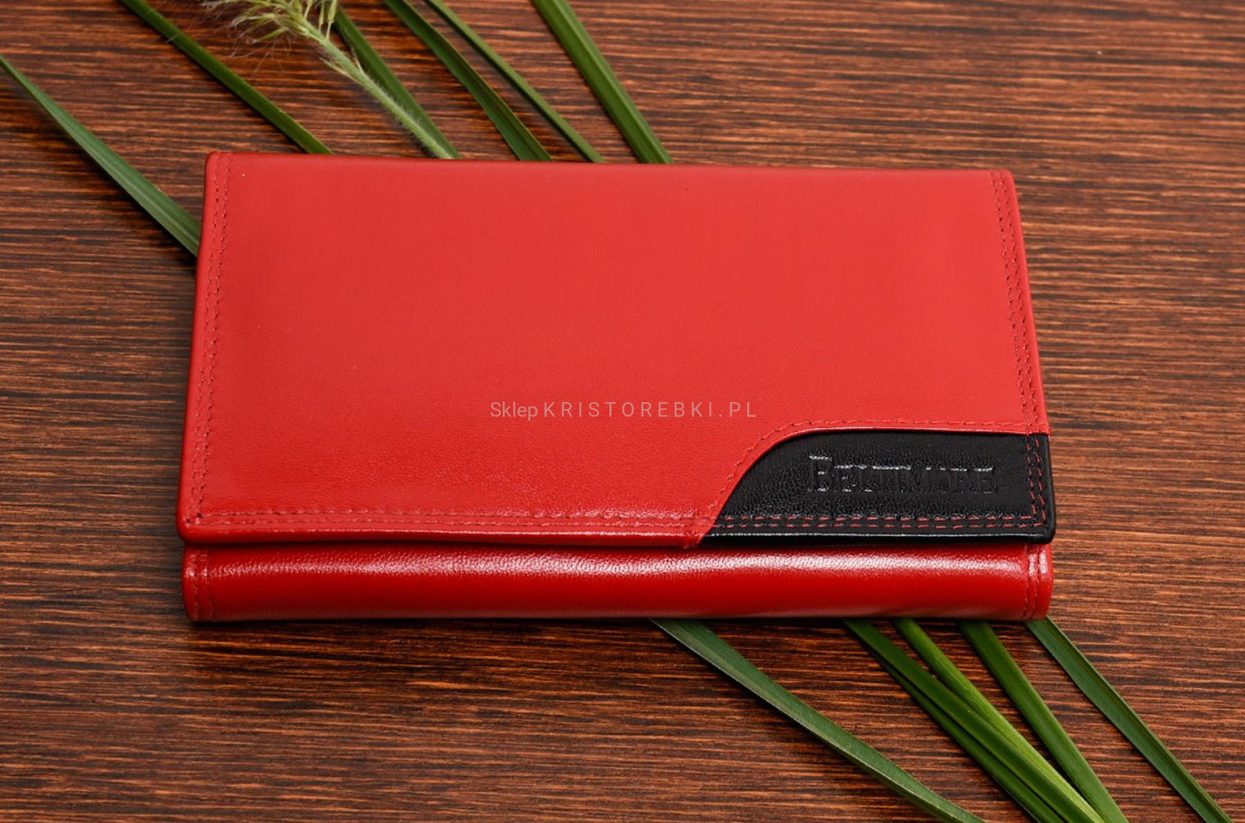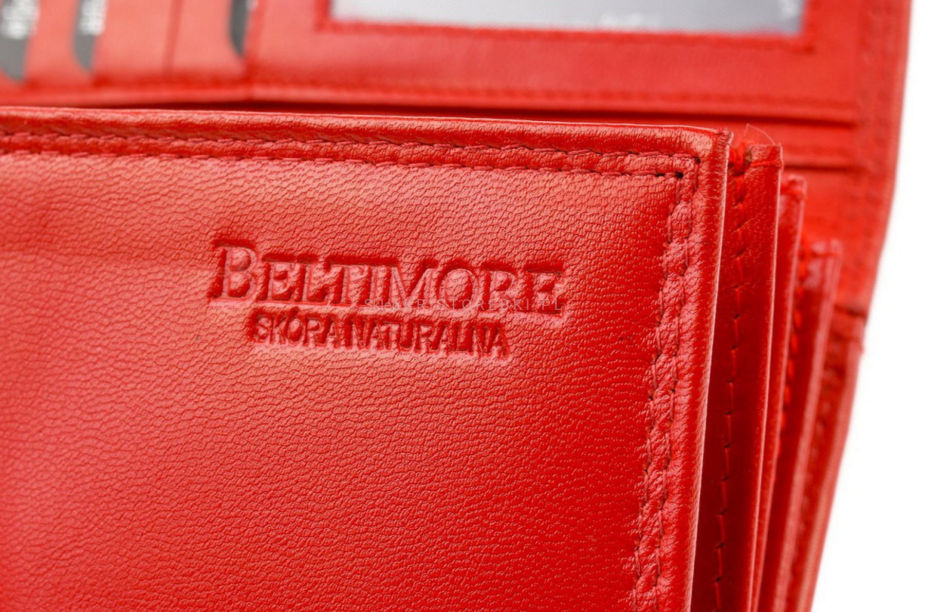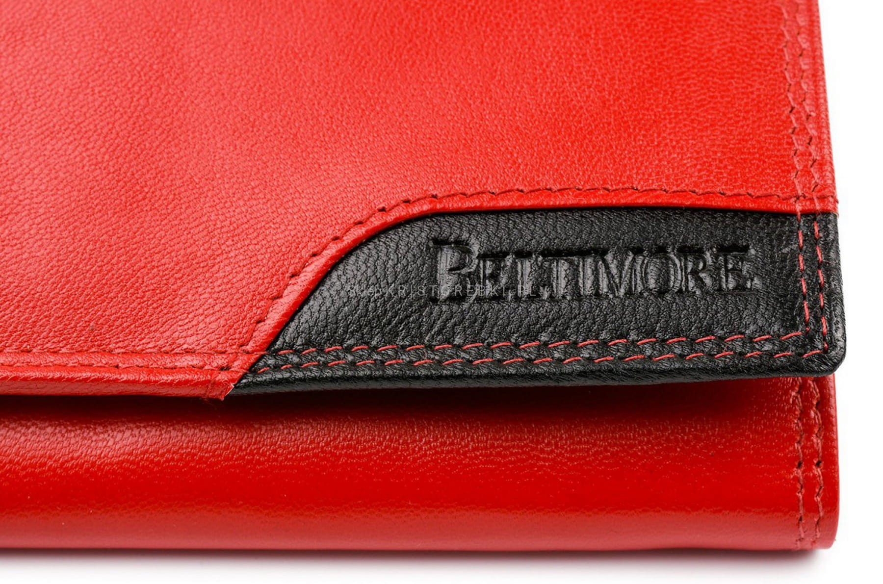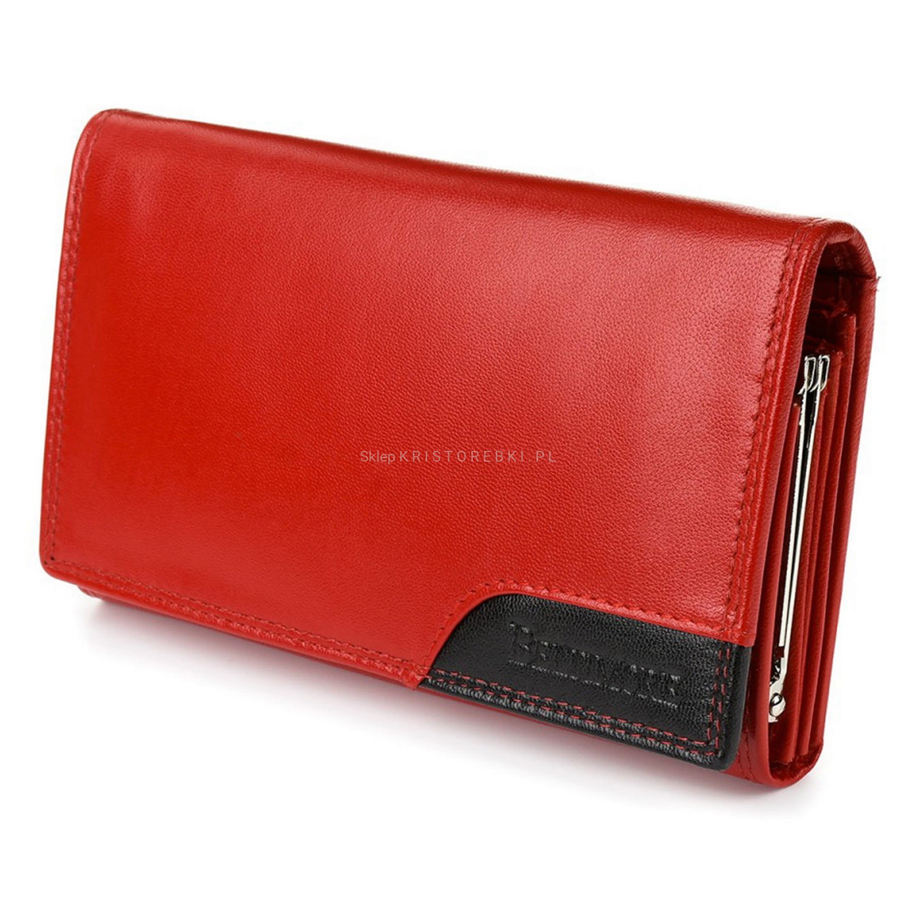 BELTIMORE portfel damski skórzany klasyczny elegancki poziomy z biglem P201 czerwony
