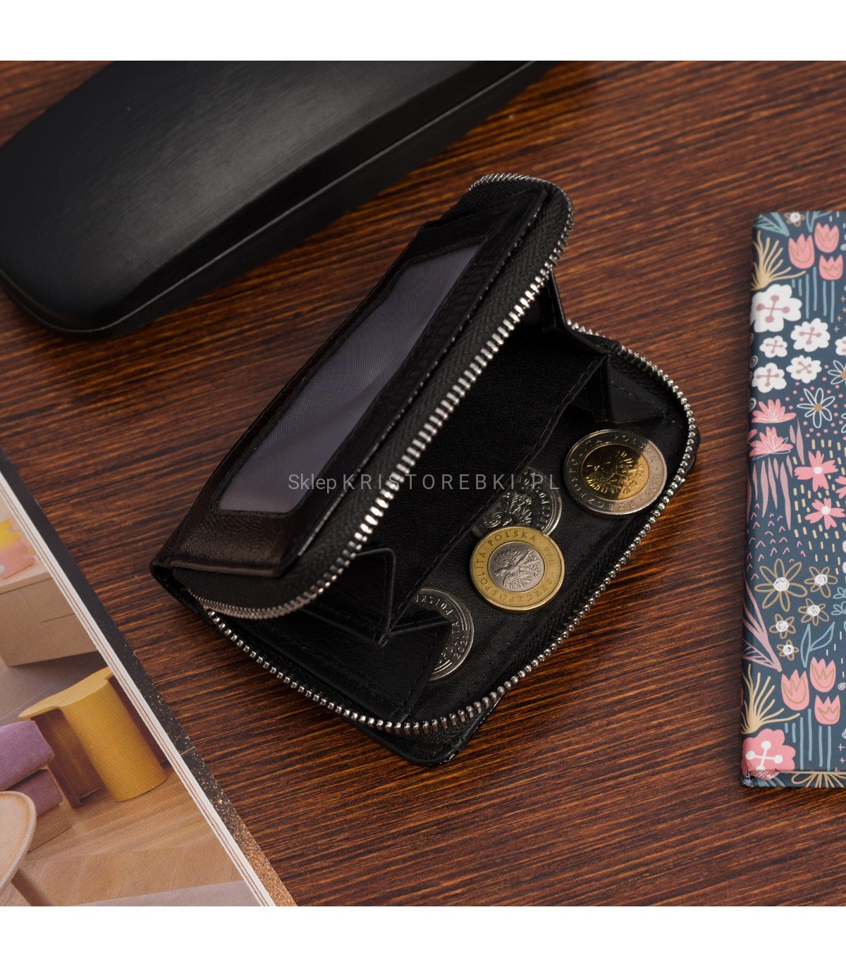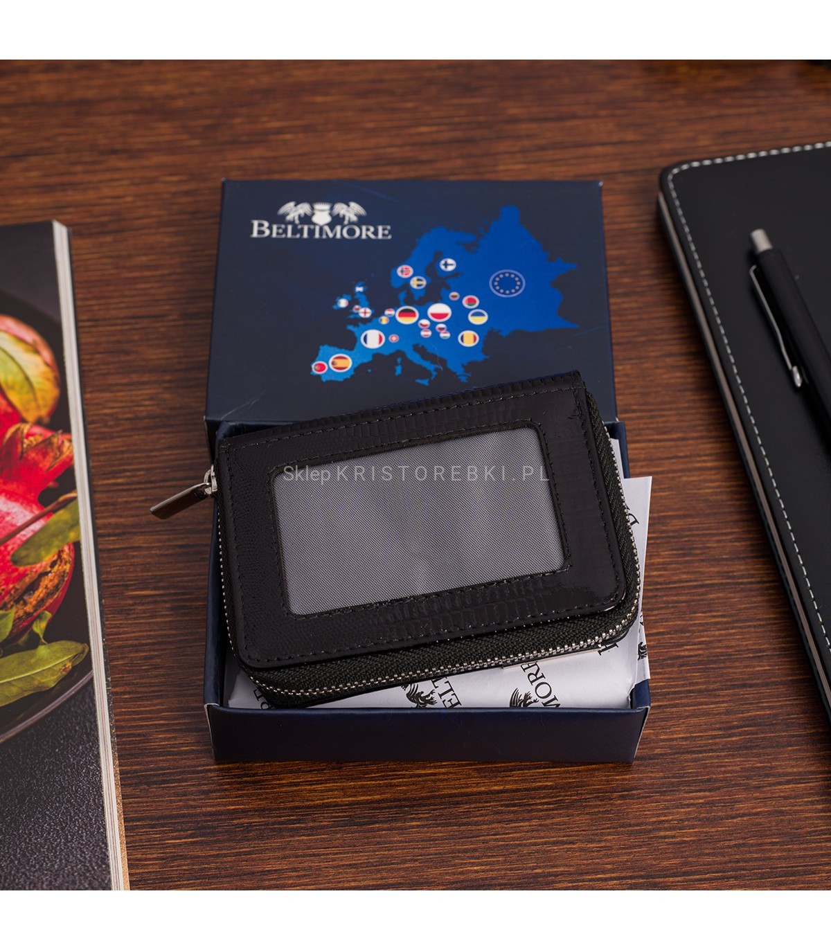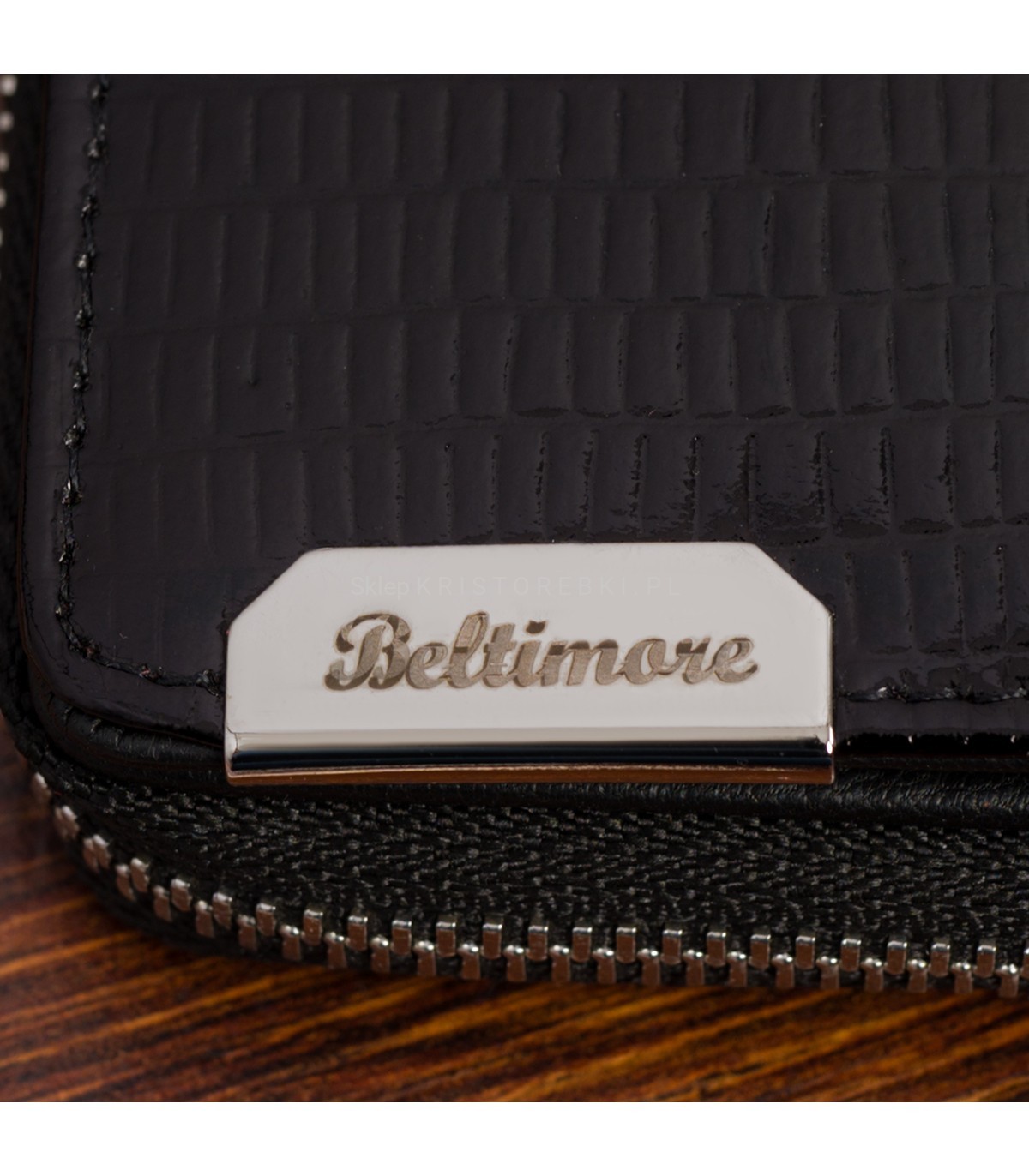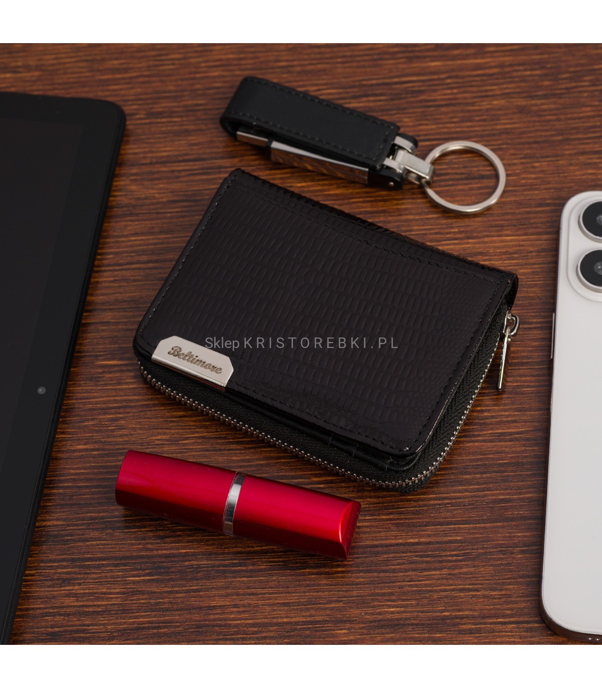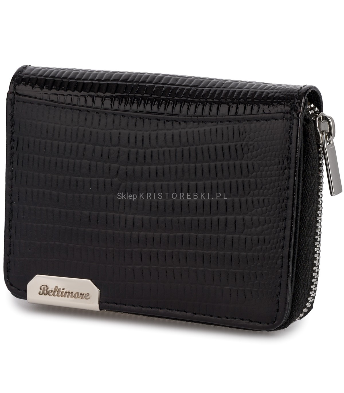 BELTIMORE portfel damski skórzany mały lakierowany kroko z suwakiem P255 czarny