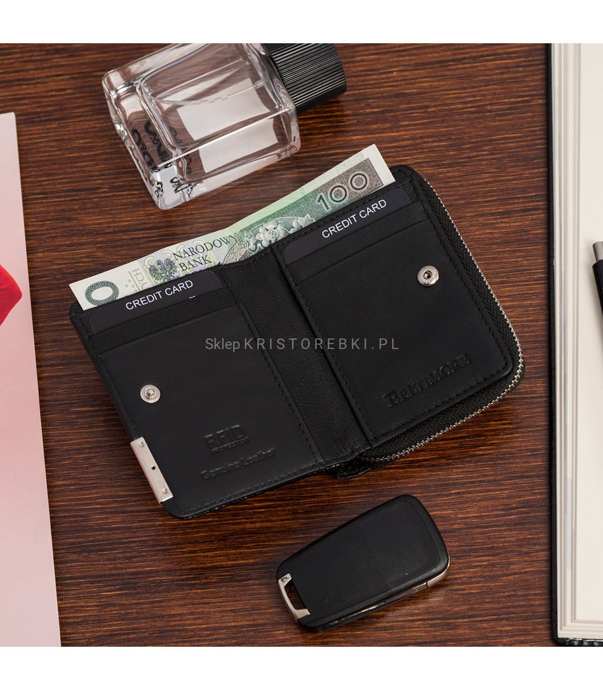 - Gotowy Prezent: Portfel na prezent w zestawie ma oryginalne, eleganckie czarne pudełko z dodatkowym oznaczeniem RFiD.