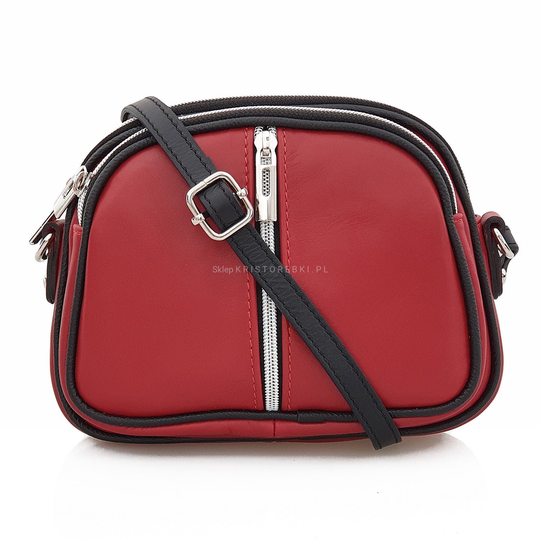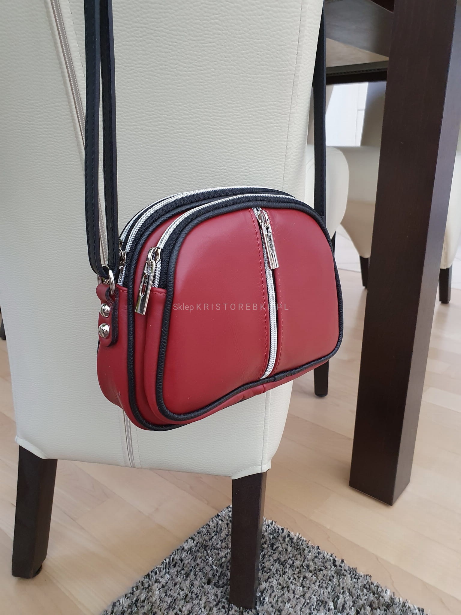VERA PELLE torebka damska skórzana listonoszka 3 komorowa z paskiem na ramię V463 bordowa