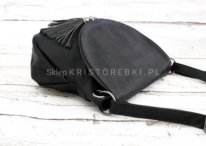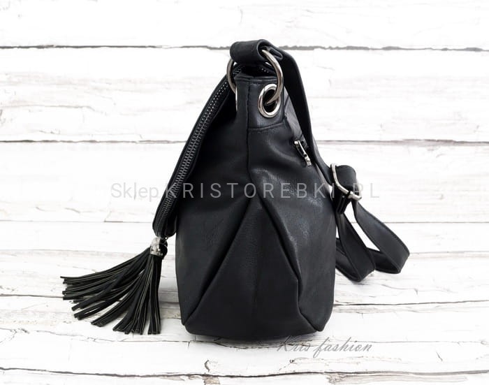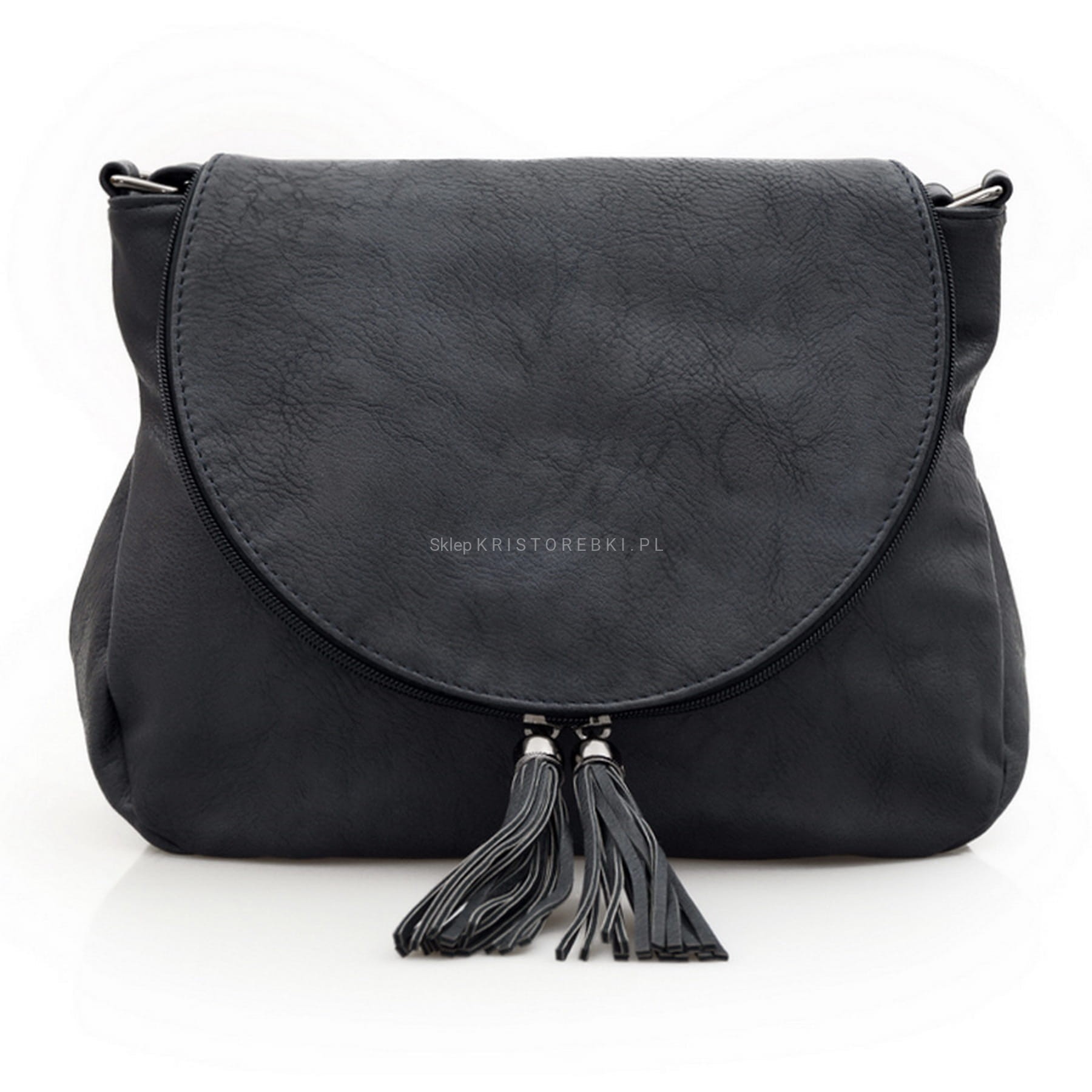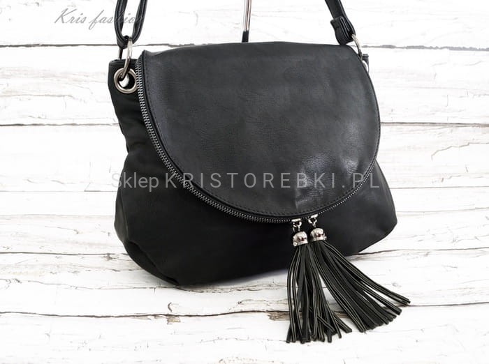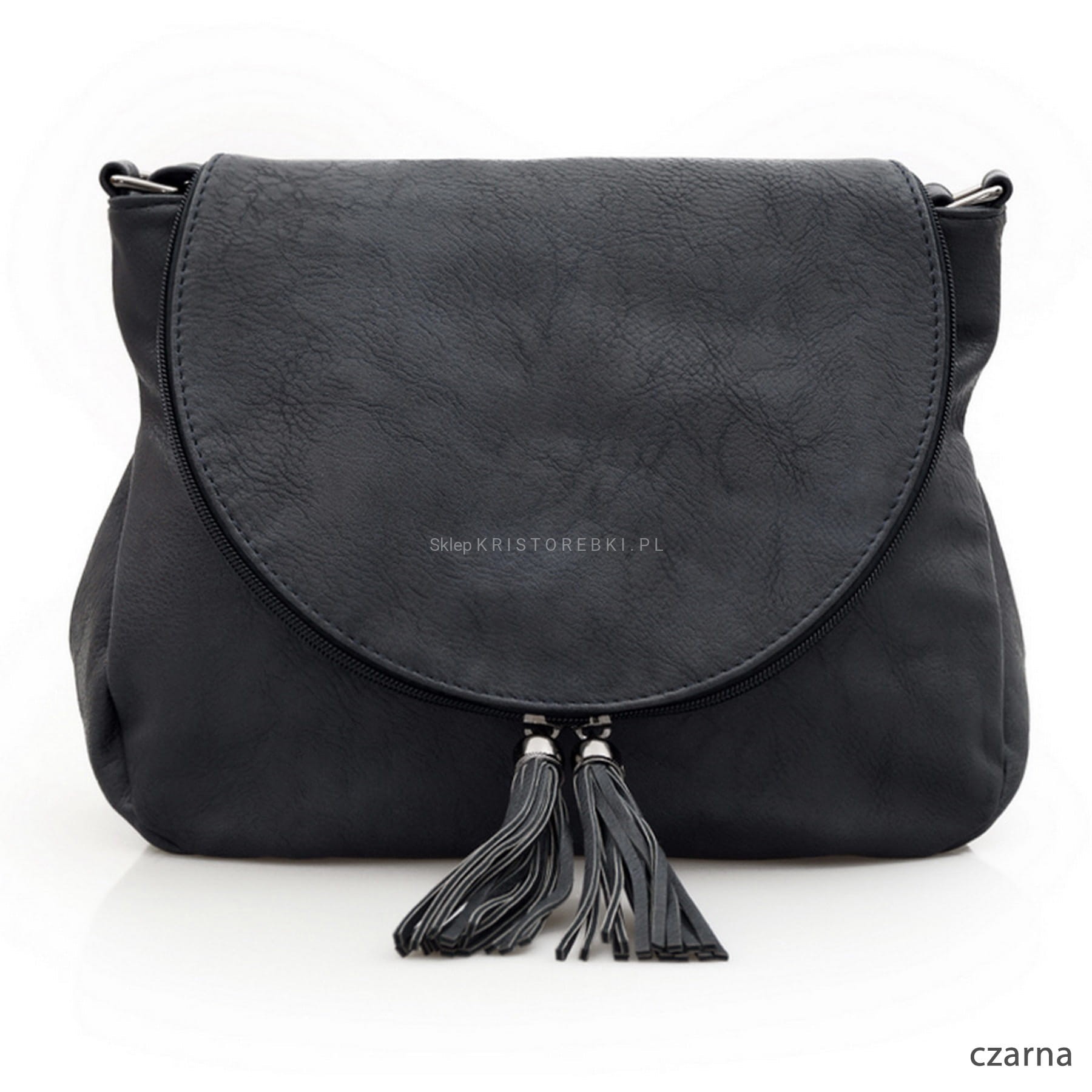 GALLANTRY torebka damska listonoszka chlebak duża z frędzelkami i paskiem na ramię U85 czarna