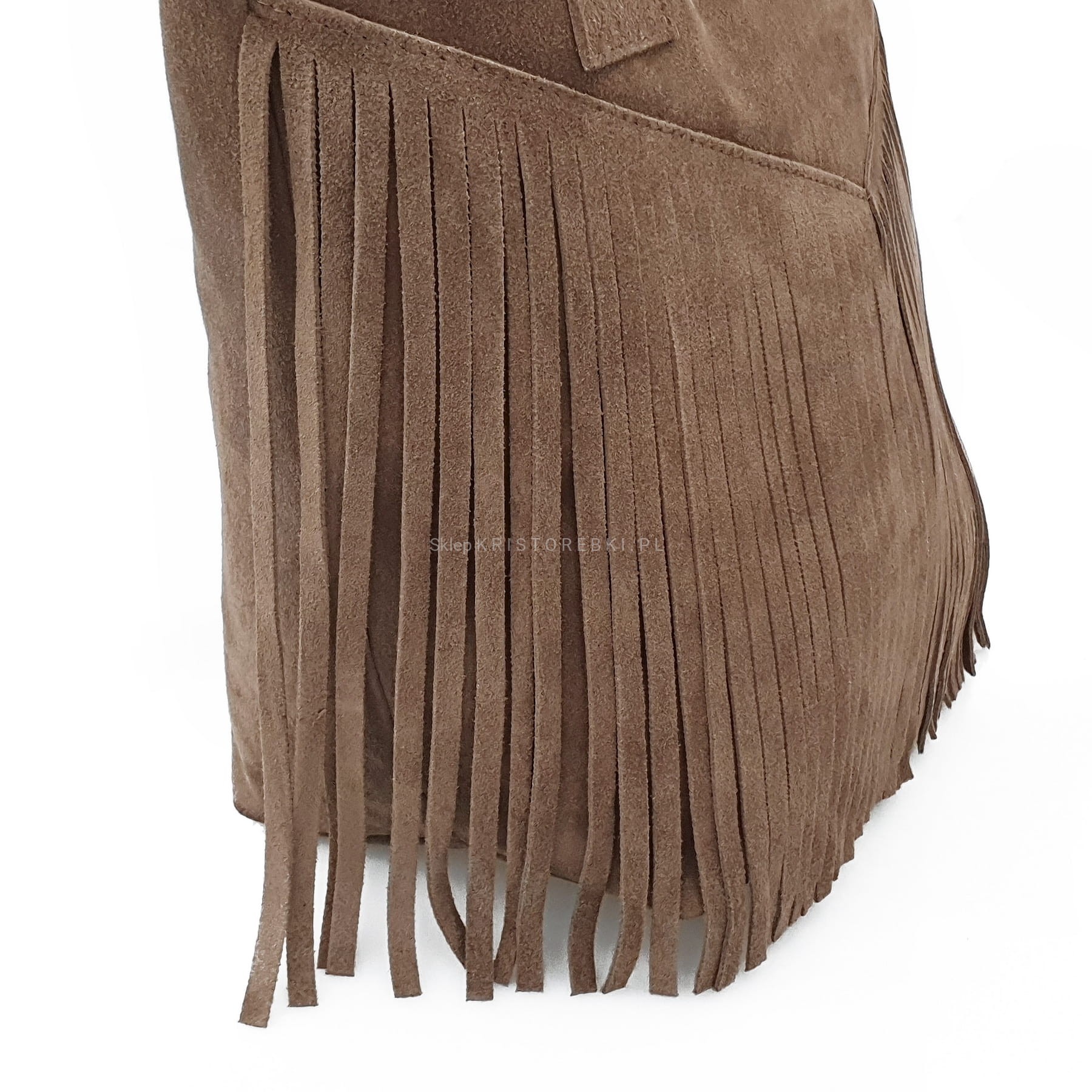 VERA PELLE torebka zamszowa damska shopper worek boho z frędzlami V007 granatowa