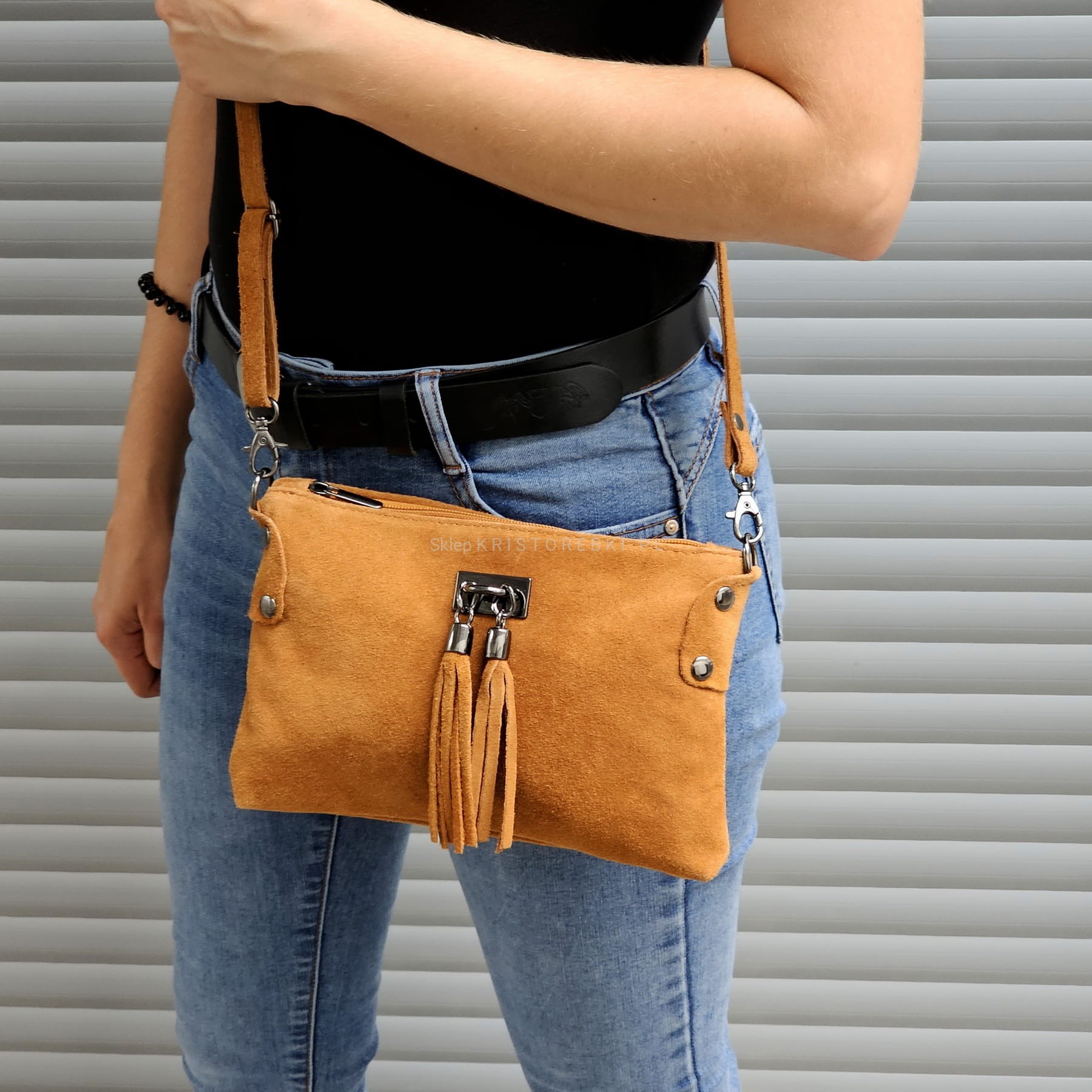 Skórzana, mała, lekka i zgrabna torebka listonoszka marki VERA PELLE ITALY w kolorze BORDOWYM. Wyprodukowana została we Włoszech z najwyższej jakości, pięknie pachnącej i miłej w dotyku skóry naturalnej zamszowej z dbałością o najmniejsze szczegóły. Zamykana jest na suwak a środek wykończony jest solidną podszewką. Dodatkowo w środku znajdziesz praktyczną kieszonkę zamykaną na suwak. Przód torebki zdobią 2 ozdobne frędzelki nadające jej styl boho. Mimo niedużych rozmiarów jest pojemna i pomieści najpotrzebniejsze rzeczy codziennego użytku.