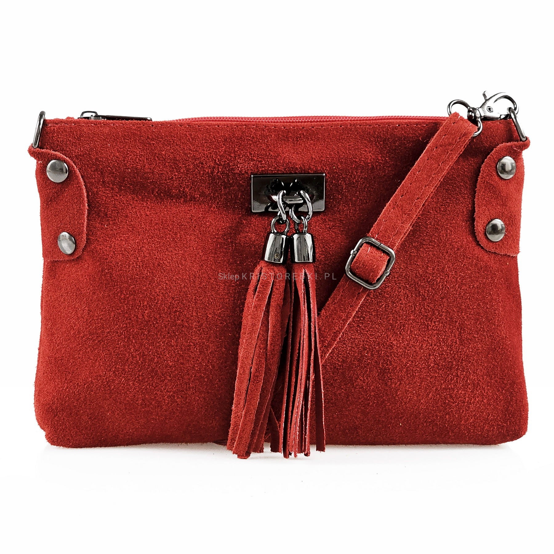 VERA PELLE torebka damska zamszowa listonoszka z frędzelkami V036 bordowa