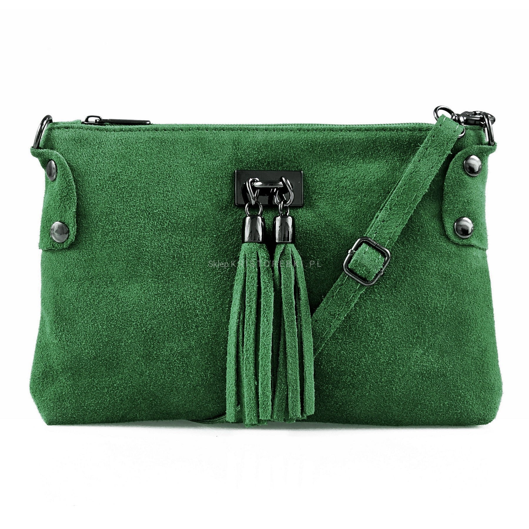 VERA PELLE torebka damska zamszowa listonoszka z frędzelkami V036 ciemna zielona