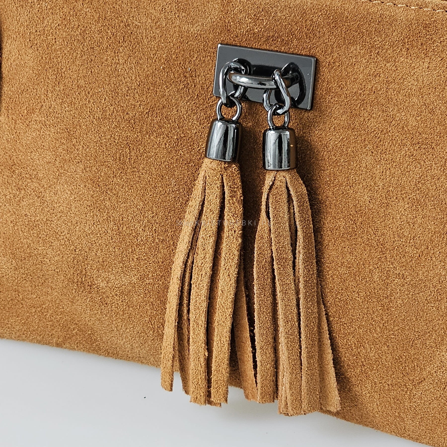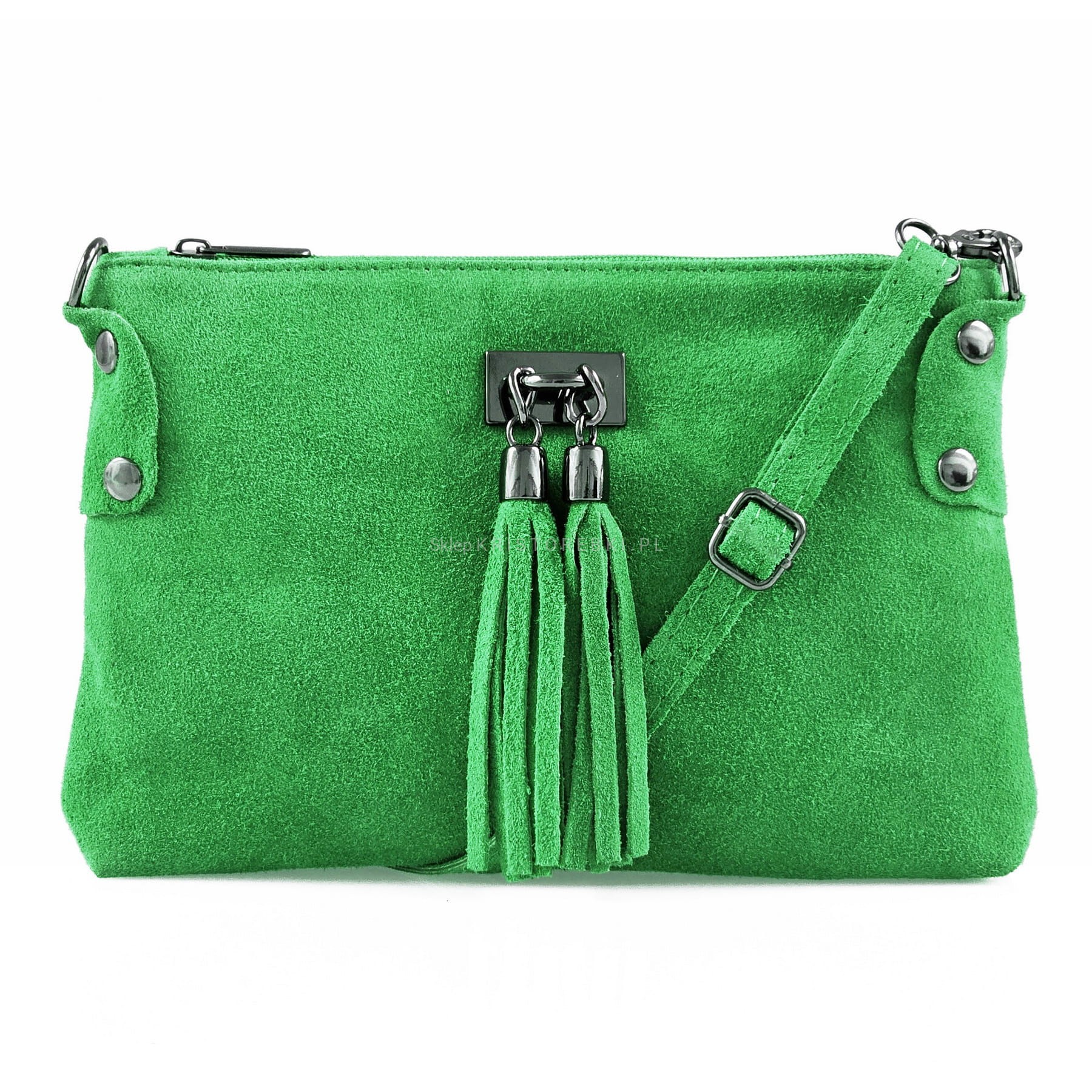 VERA PELLE torebka damska zamszowa listonoszka z frędzelkami V036 zielona