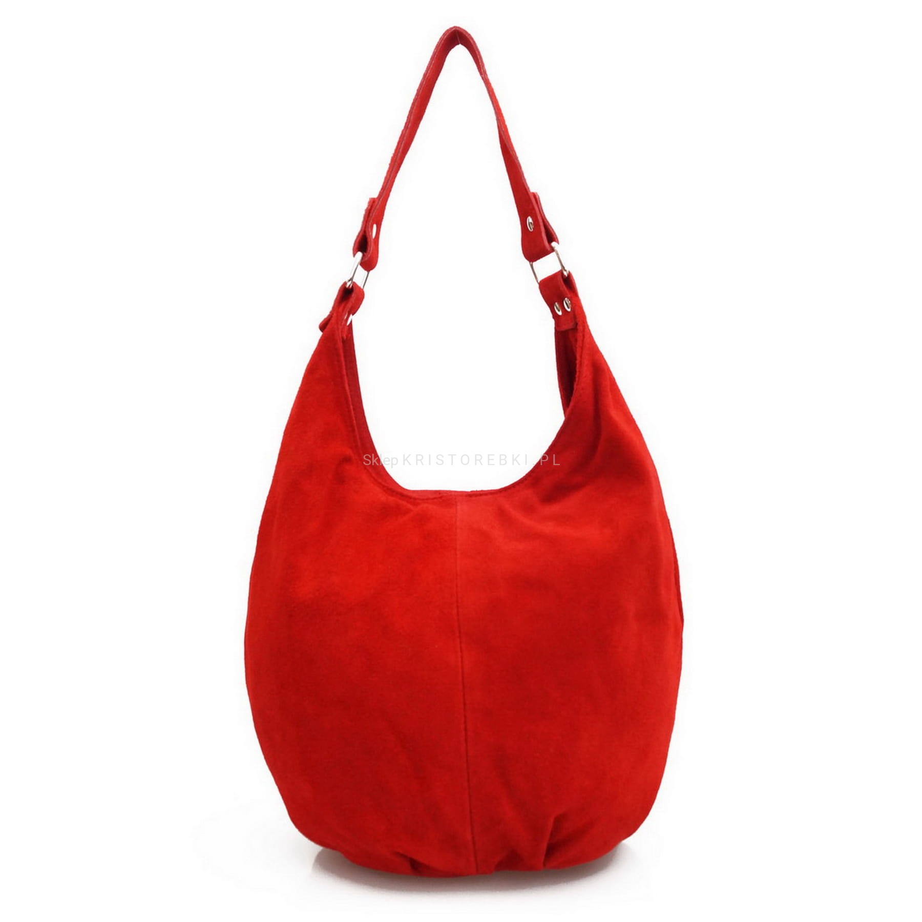 Włoska zamszowa torebka marki VERA PELLE ITALY w kolorze CZERWIENI. Torebka w całości wykonana została z włoskiej, miękkiej i pachnącej, wysokiej jakości skóry naturalnej zamszowej. Jest duża, solidna i praktyczna. Torebka posiada okucia w kolorze srebrnym. Główna komora torebki zamykana jest na solidny suwak a środek wykończony jest podszewką. W środku znajduje się na bocznej ściance nieduża kieszeń zamykana na suwak - idealna na telefon lub dokumenty. Ładny krój i rodzaj użytej skóry sprawia, że będzie pasowała do niemal każdej codziennej stylizacji. Będzie idealna do szkoły, pracy lub na uczelnię.