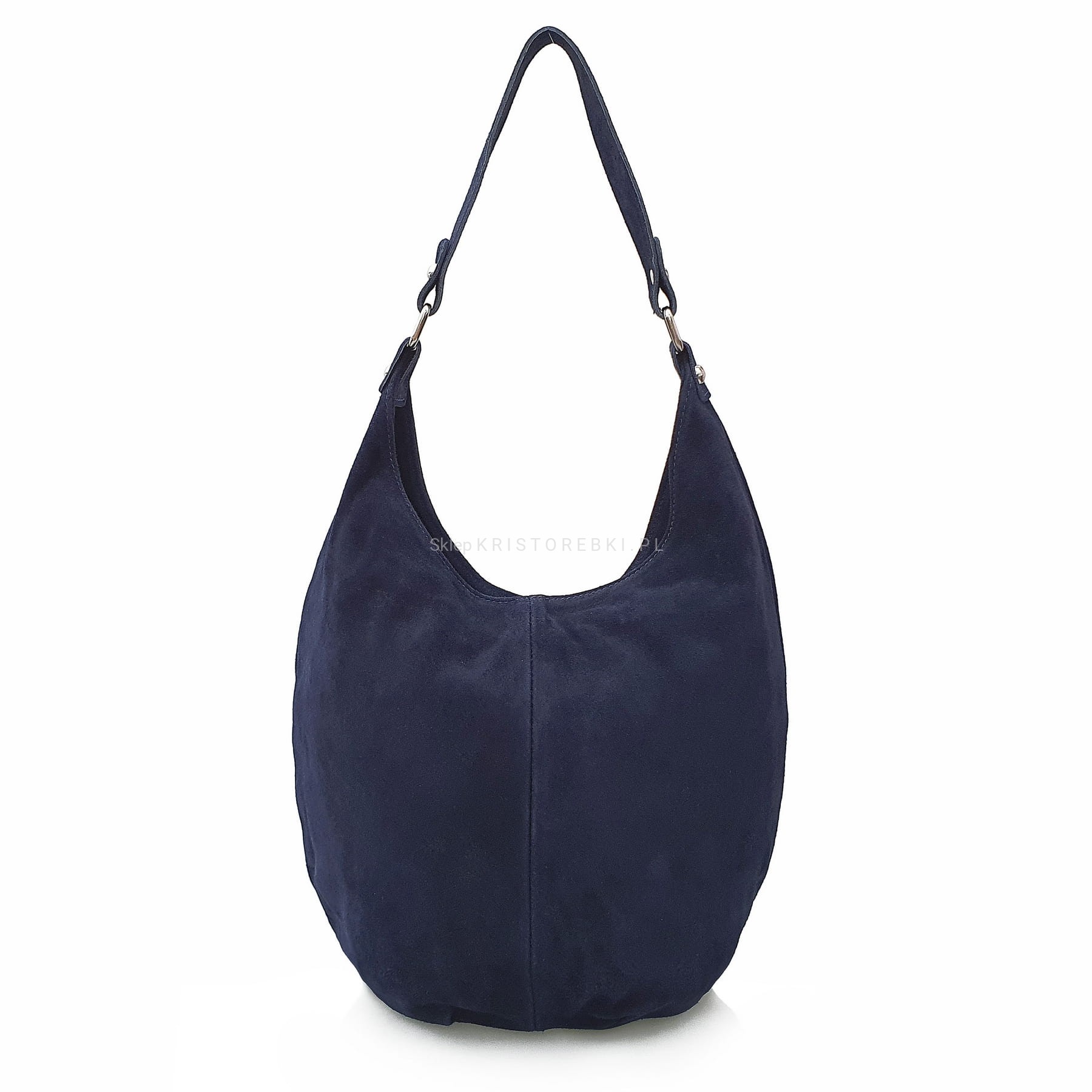 VERA PELLE torebka damska zamszowa worek na ramię V058 granatowa