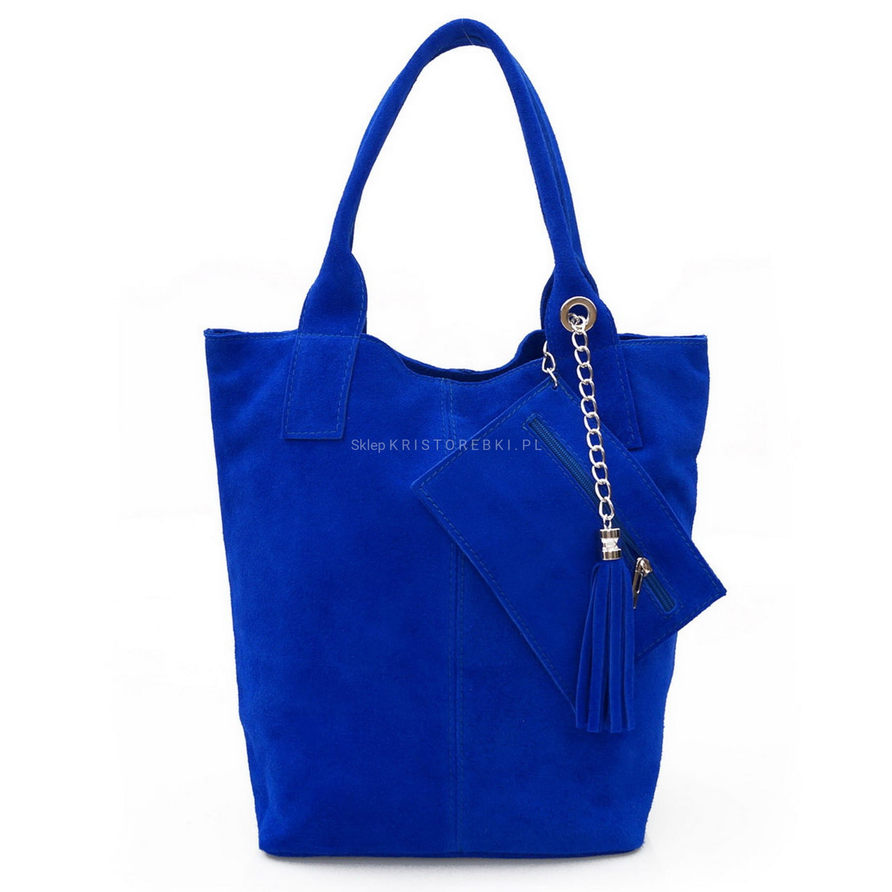 VERA PELLE torebka damska zamszowa worek shopper z saszetką na ramię V093 chabrowa