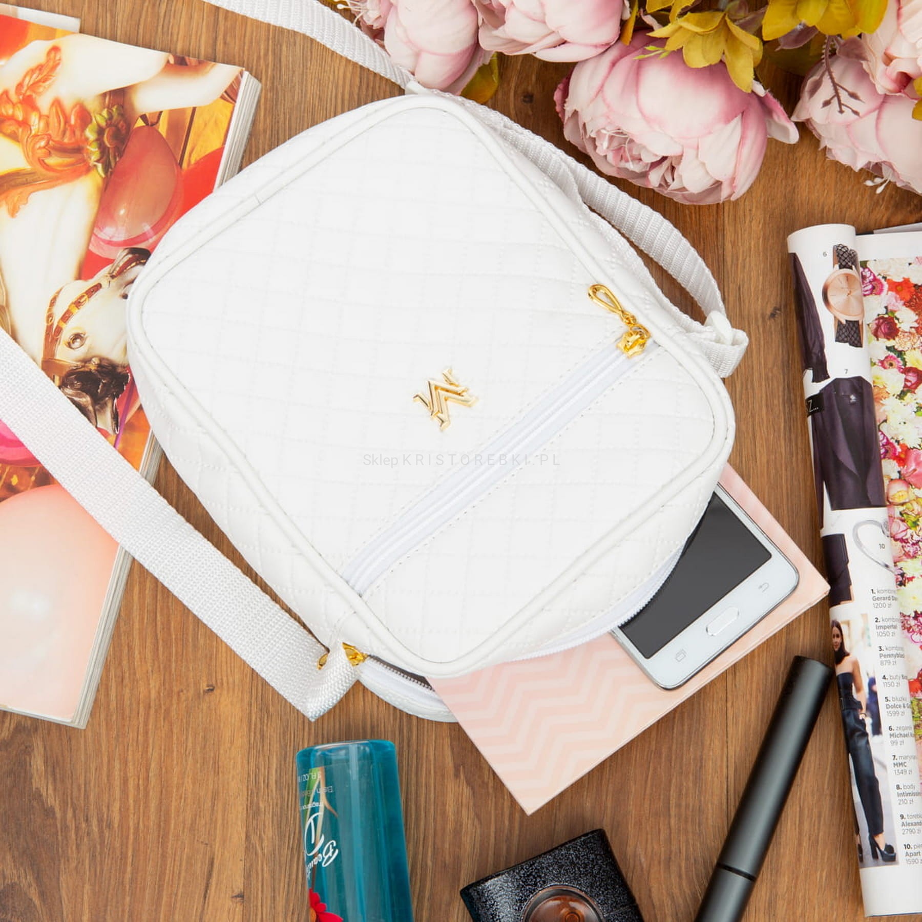 VERMARI torebka skórzana eko listonoszka na ramię pikowana V101 biała