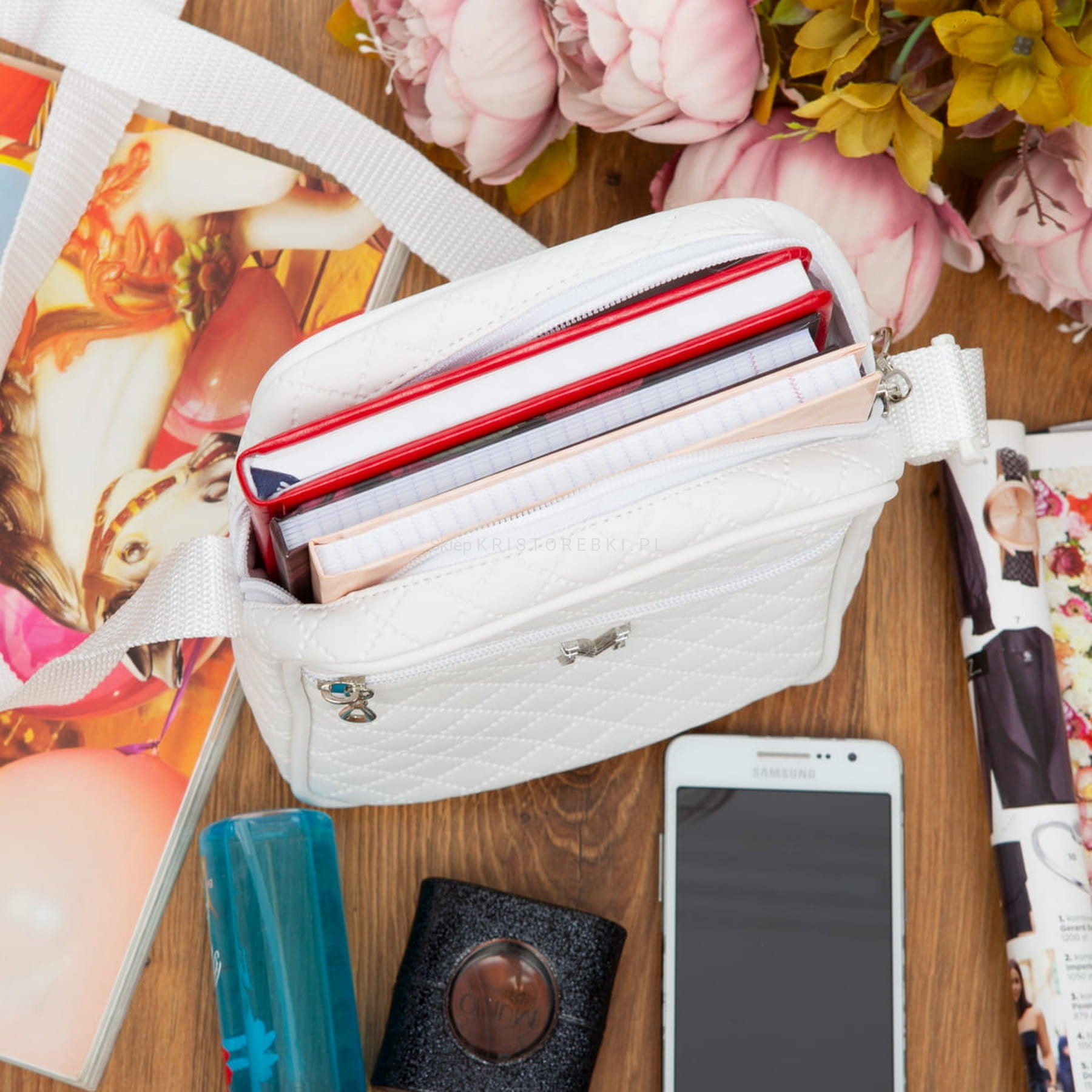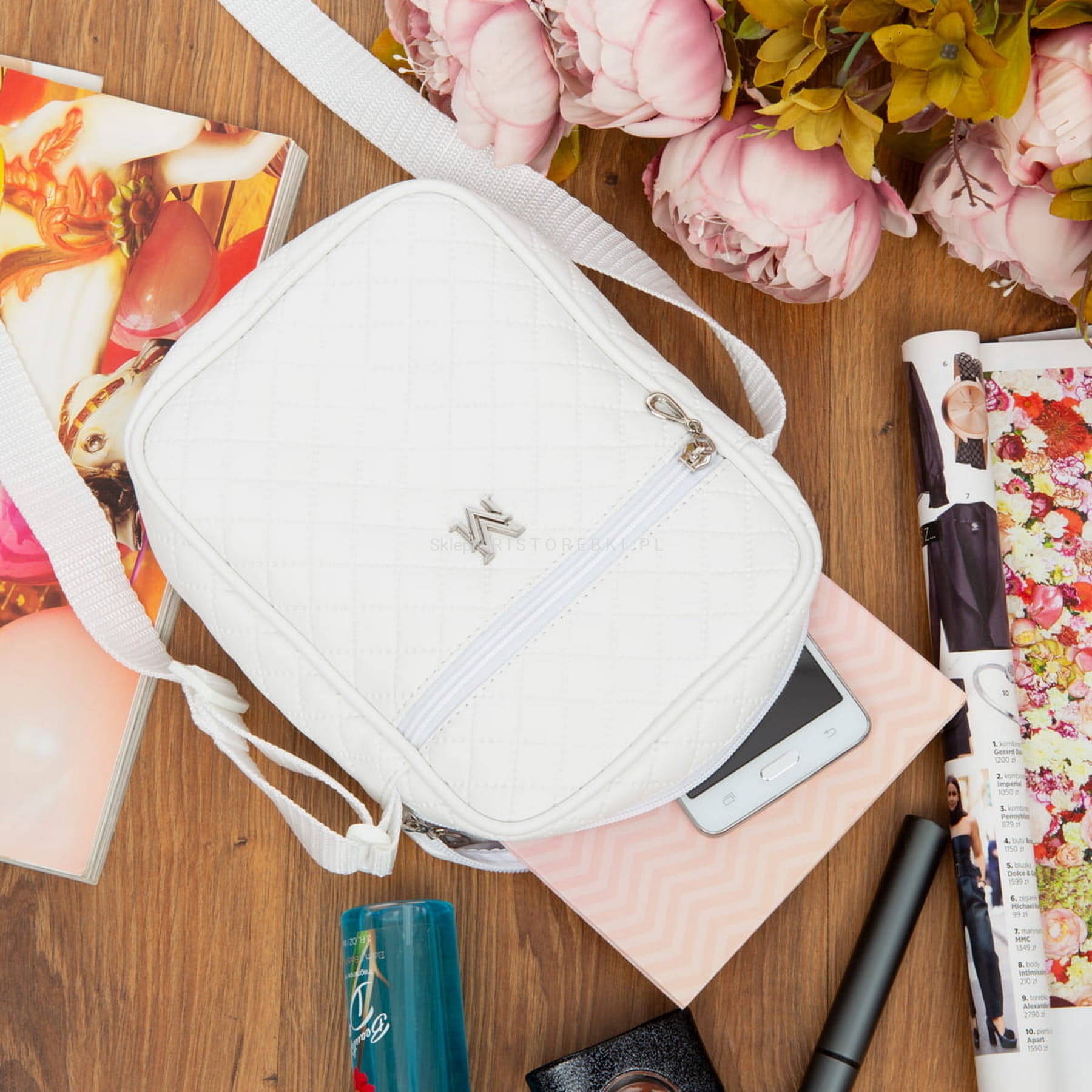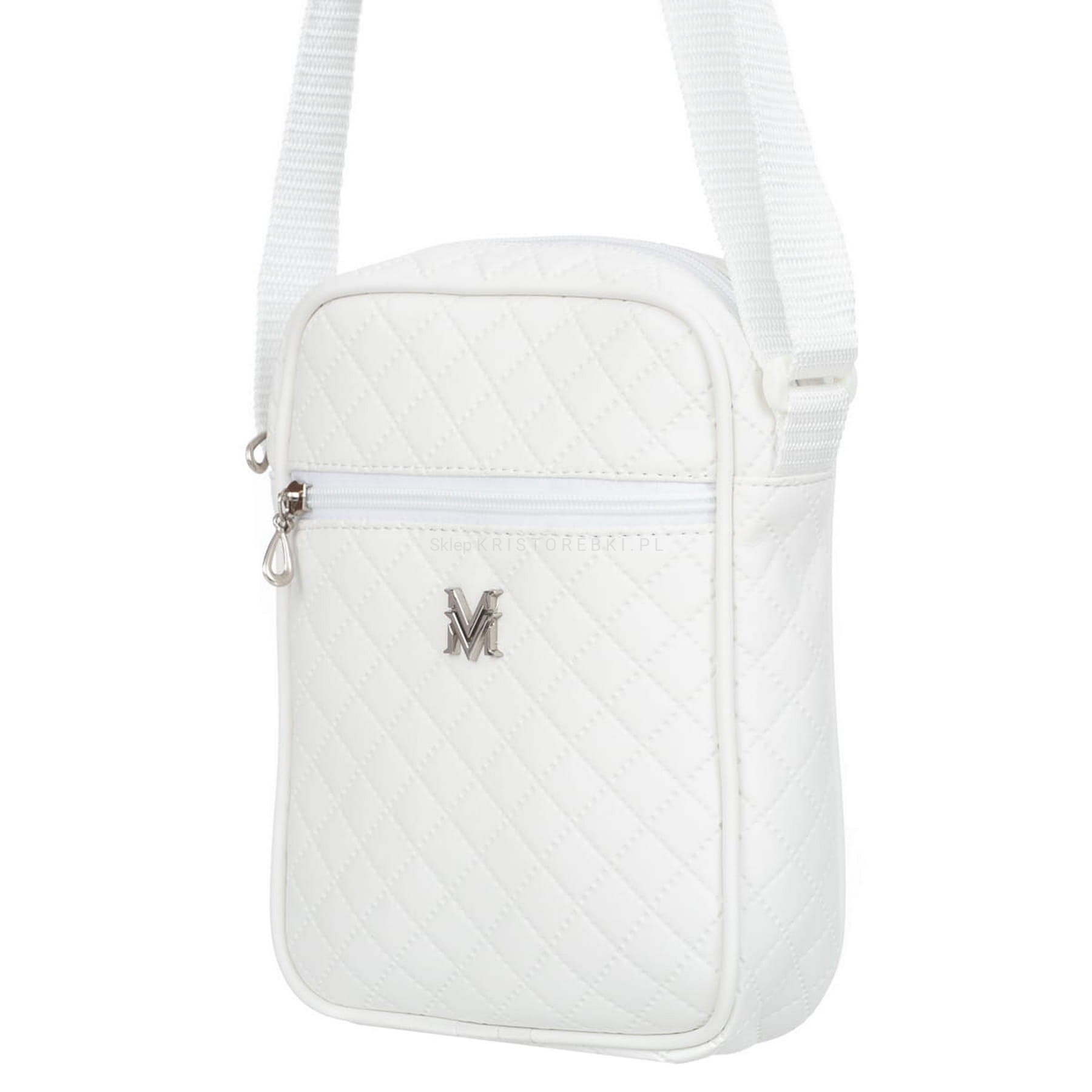VERMARI torebka skórzana eko listonoszka na ramię pikowana V102 biała