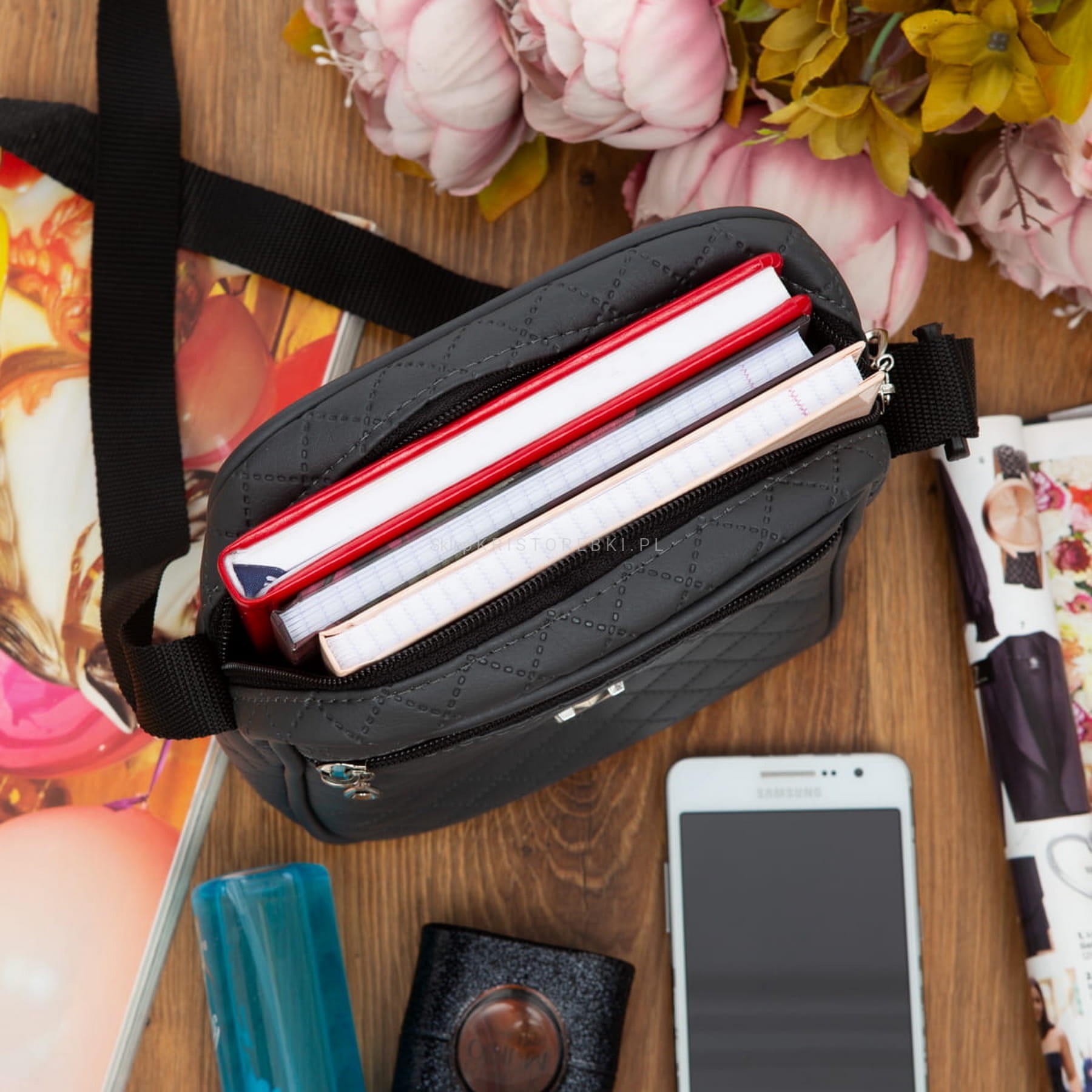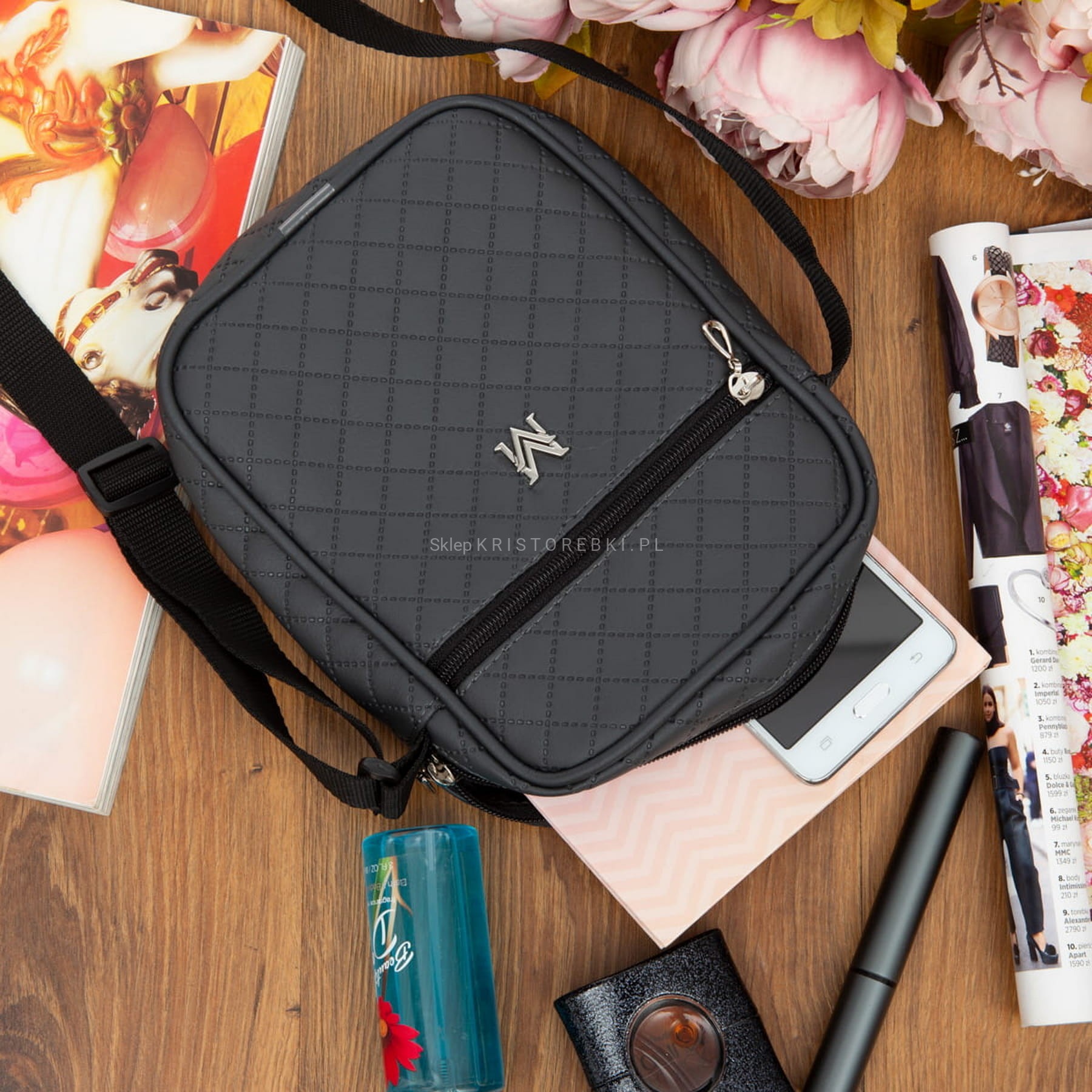 VERMARI torebka skórzana eko listonoszka na ramię pikowana V102 grafitowa