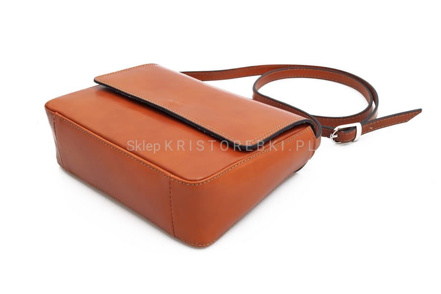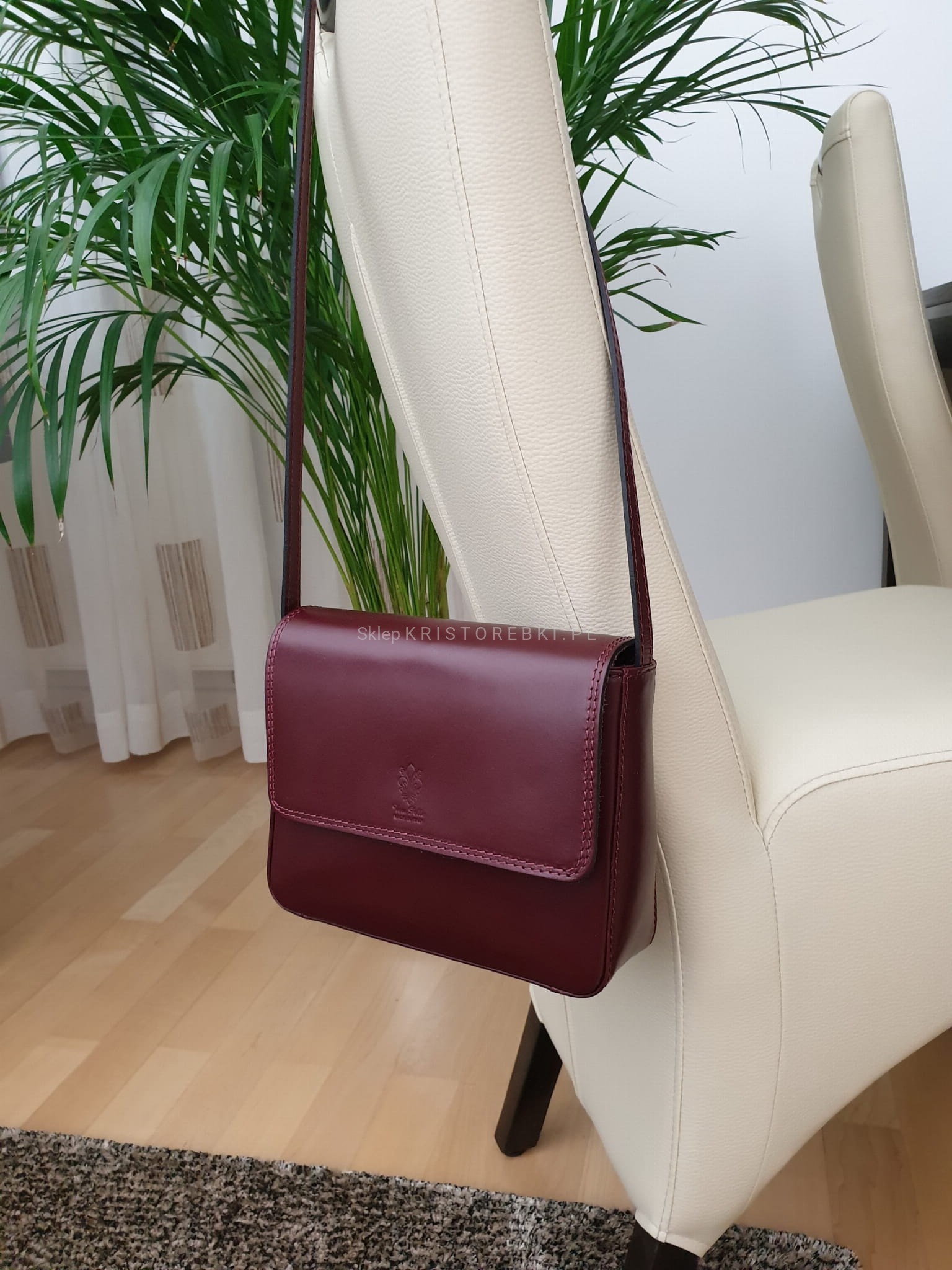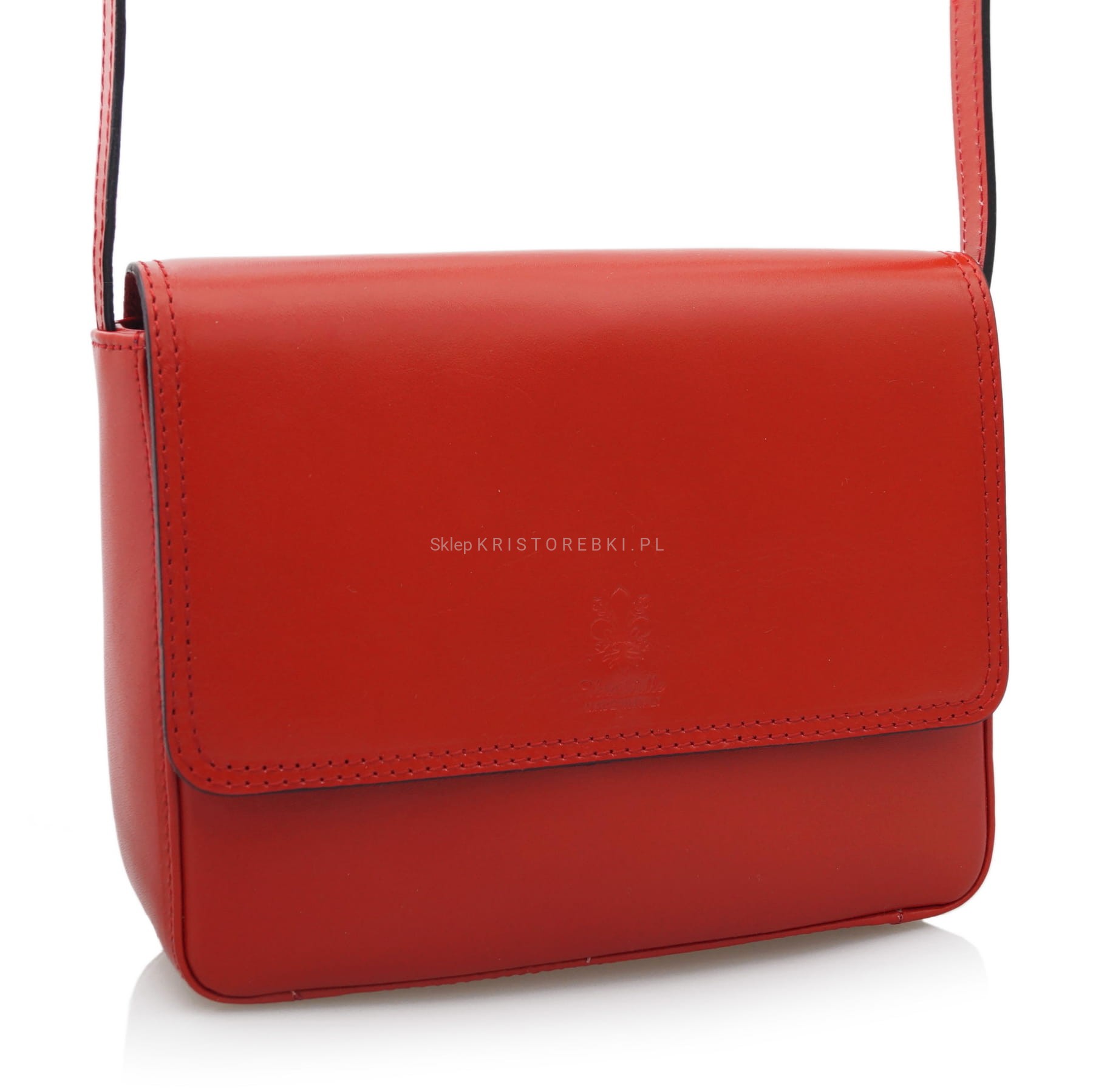 VERA PELLE torebka damska skórzana listonoszka z klapą i paskiem na ramię V109 czerwona