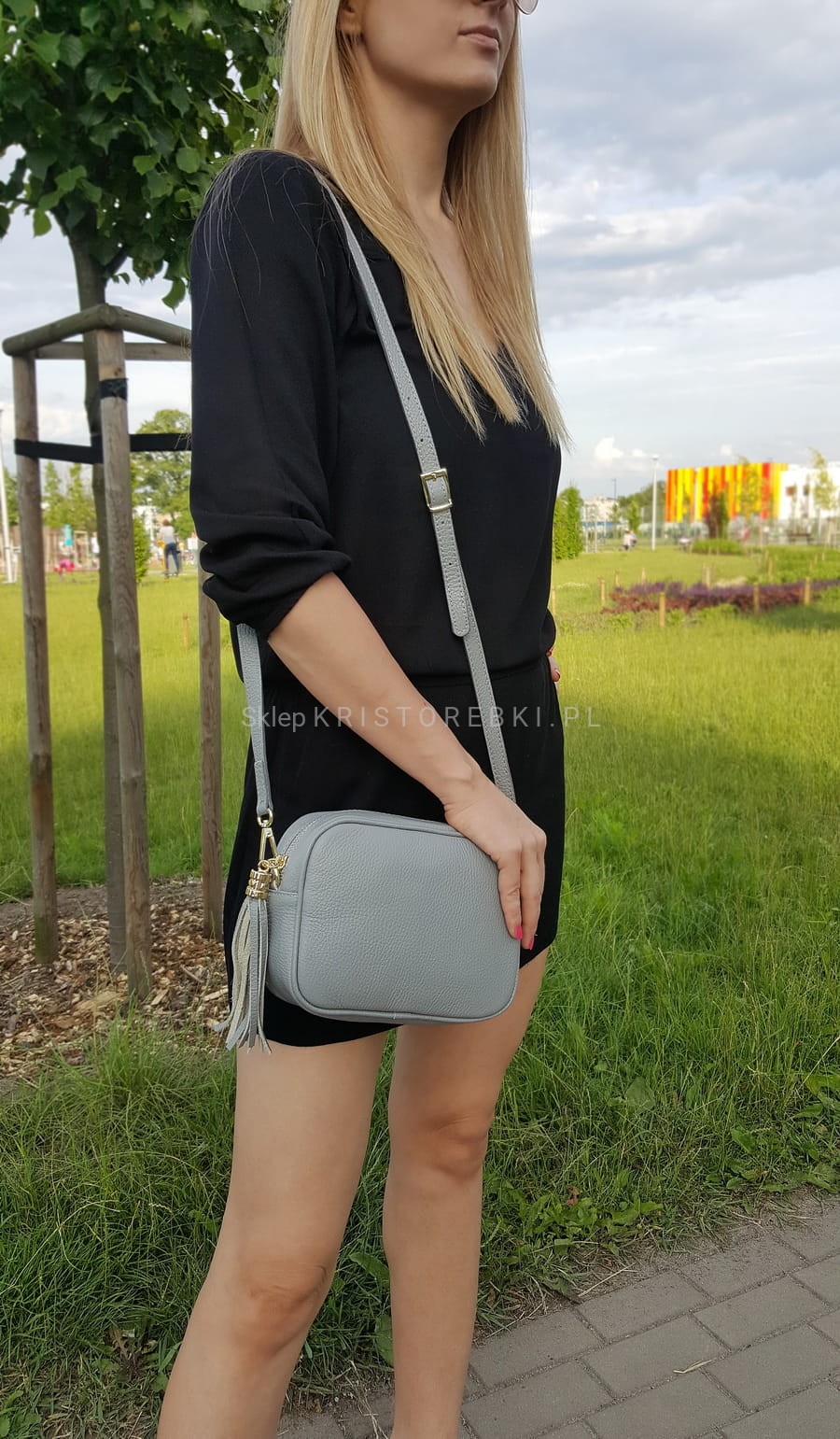 Mała i praktyczna torebka damska, listonoszka marki VERA PELLE ITALY w kolorze TAUPE. Wykonana została z najwyższej jakości włoskiej skóry naturalnej. Posiada odpinany, długi i regulowany pasek, dzięki czemu można ją wygodnie na ramieniu. Zamykana jest na suwak a w środku wykończona jest podszewką. W środku dodatkowo posiada na ściance bocznej funkcjonalną kieszonkę na telefon lub dokumenty. Do głównego suwaka dopięty jest ozdobny breloczek z frędzelkiem. Mimo niedużych rozmiarów jest pojemna i niezwykle praktyczna. Będzie świetnym dopełnieniem codziennych stylizacji i wizytowych wyjść.