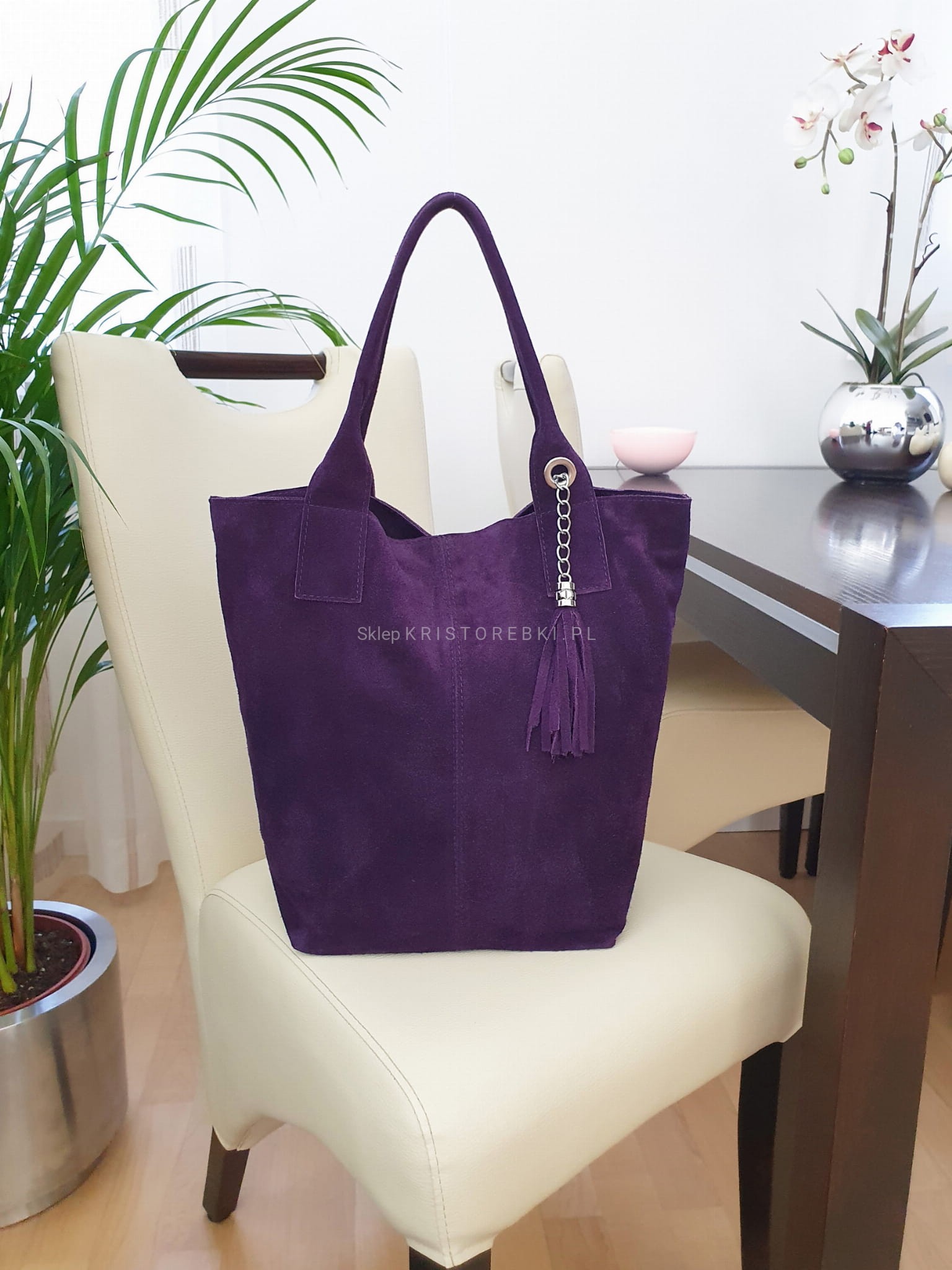 Włoska skórzana torebka damska typu shopper znanej i cenionej marki VERA PELLE ITALY w kolorze KHAKI. Wykonana została bardzo starannie z dbałością o najmniejsze szczegóły z najwyższej jakości zamszowej skóry naturalnej oraz dostępna jest w wyjątkowo szerokiej kolorystyce. Torebka posiada w środku solidną podszewkę oraz zamykana jest na suwak. Z przodu ozdobiona jest wiszącym frędzelkiem oraz dodatkowo posiada w zestawie saszetkę zamykaną na suwak, w której możesz schować np. dokumenty. W środku jest bardzo pojemna oraz dodatkowo posiada kieszonkę zamykaną na suwak. Torebka posiada długie uszy, dzięki czemu możesz ją wygodnie nosić i w ręku i na ramieniu a dzięki uniwersalnemu wyglądowi będzie pasowała do niemal każdej codziennej stylizacji. Jest bardzo wygodna i praktyczna dzięki czemu jest jednym z najlepiej sprzedających się modeli w naszej ofercie.