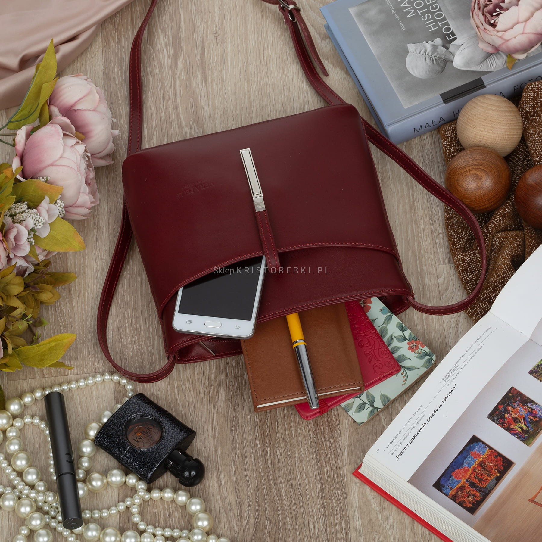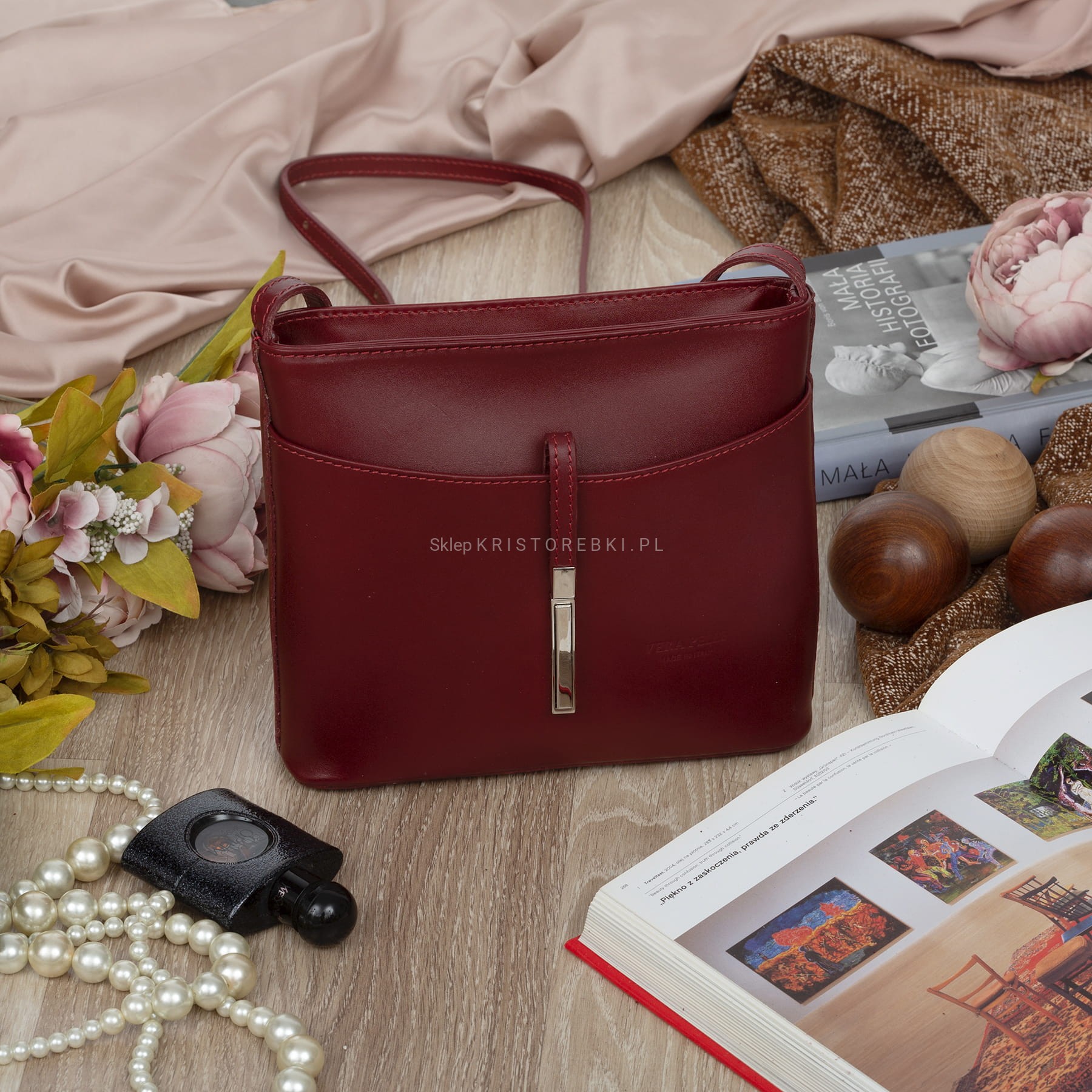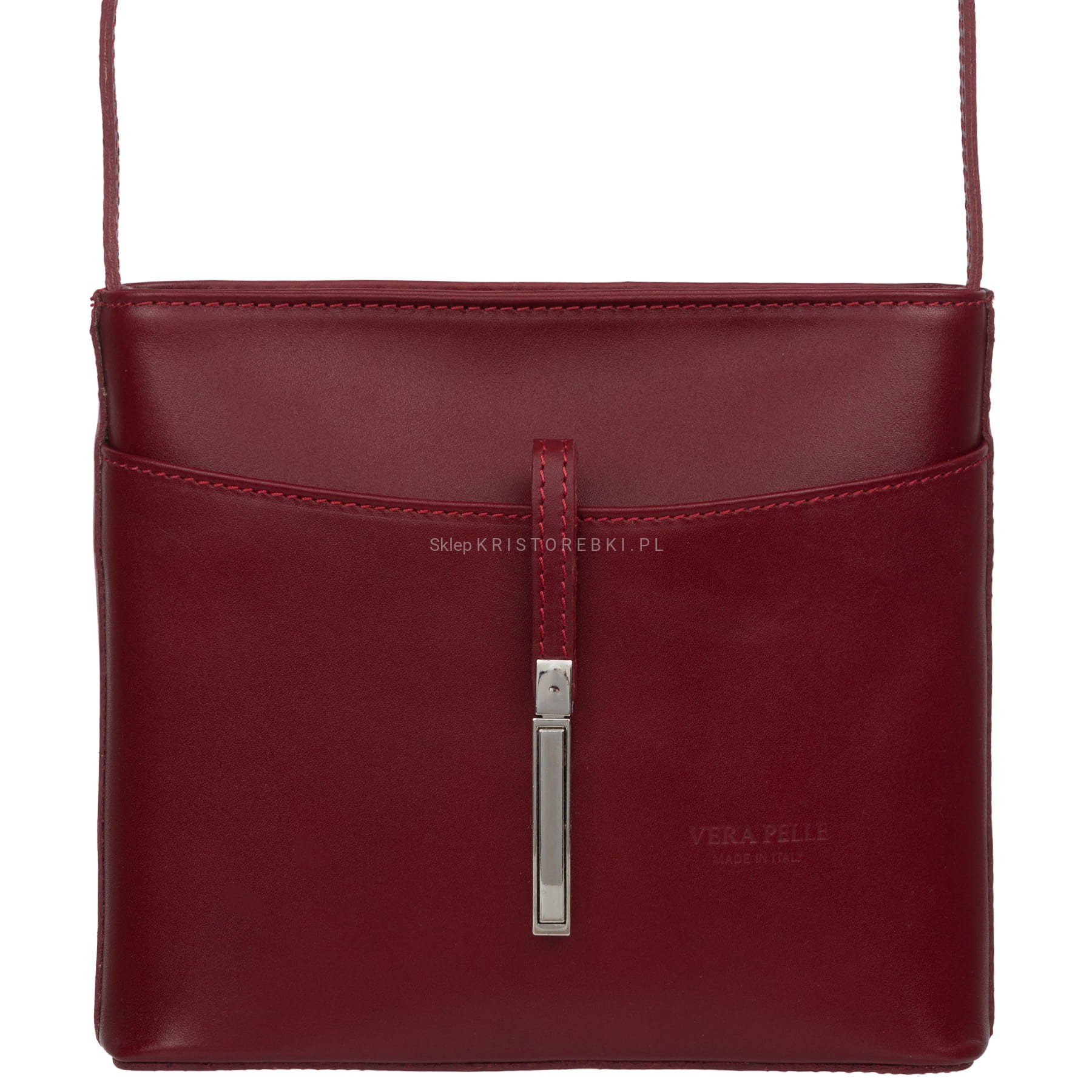 VERA PELLE torebka damska skórzana listonoszka z paskiem na ramię V159 bordowa