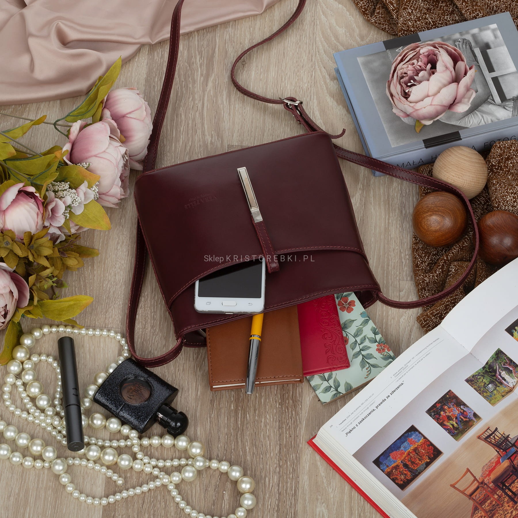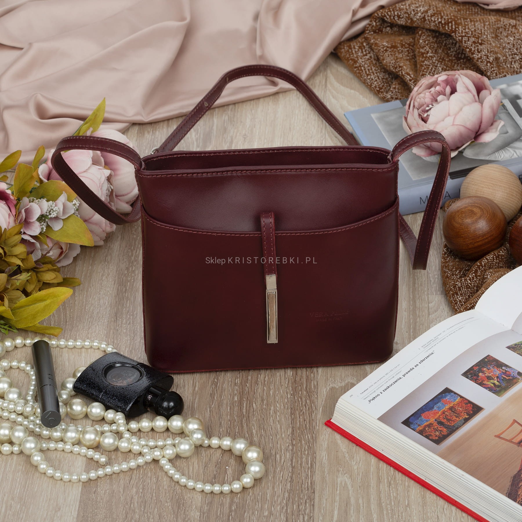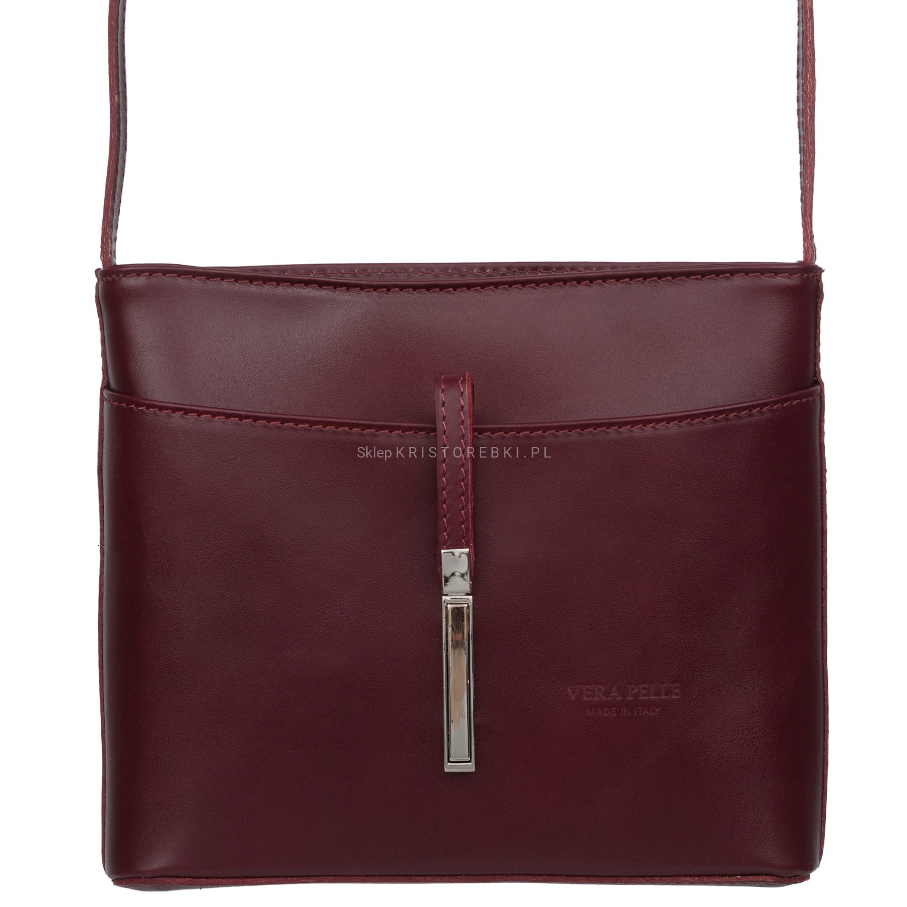 VERA PELLE torebka damska skórzana listonoszka z paskiem na ramię V159 ciemna bordowa