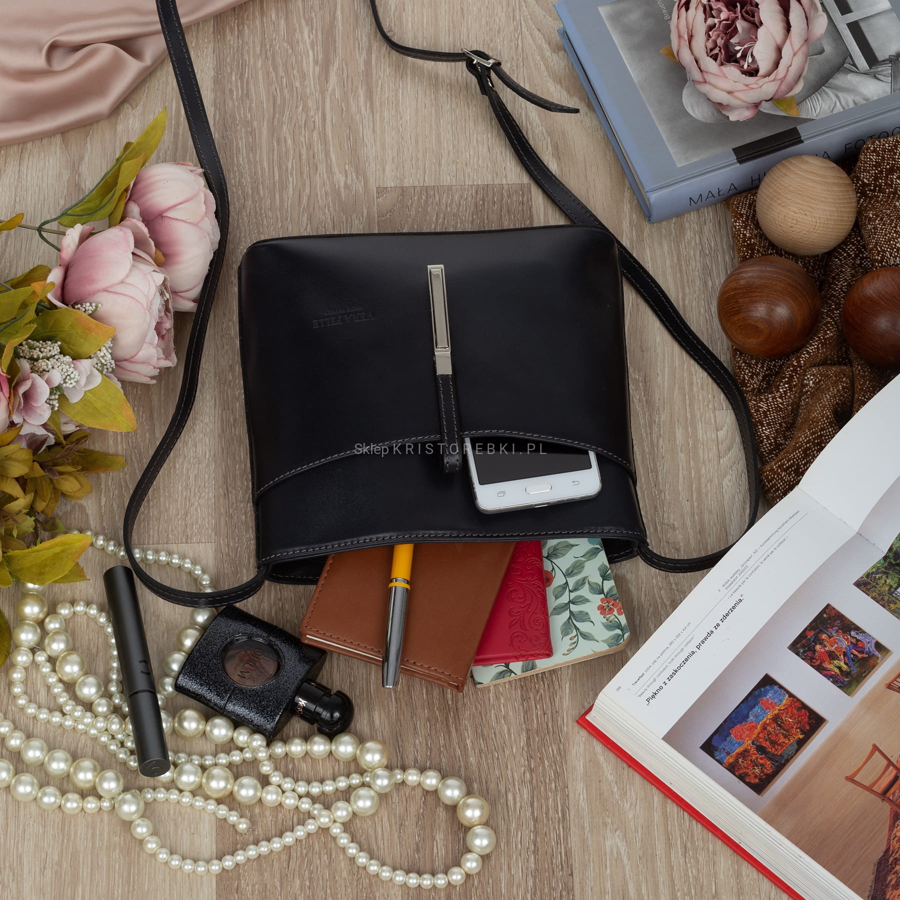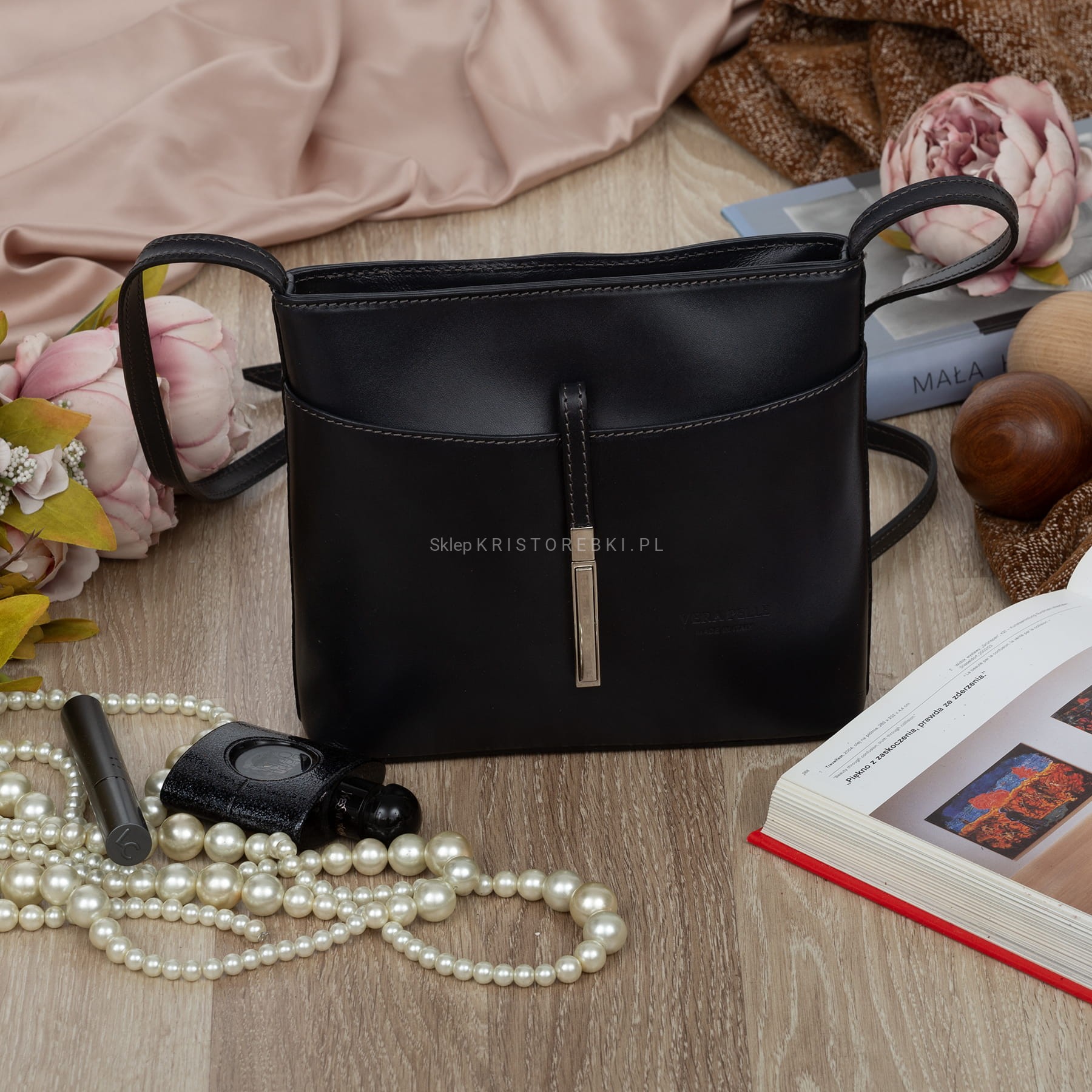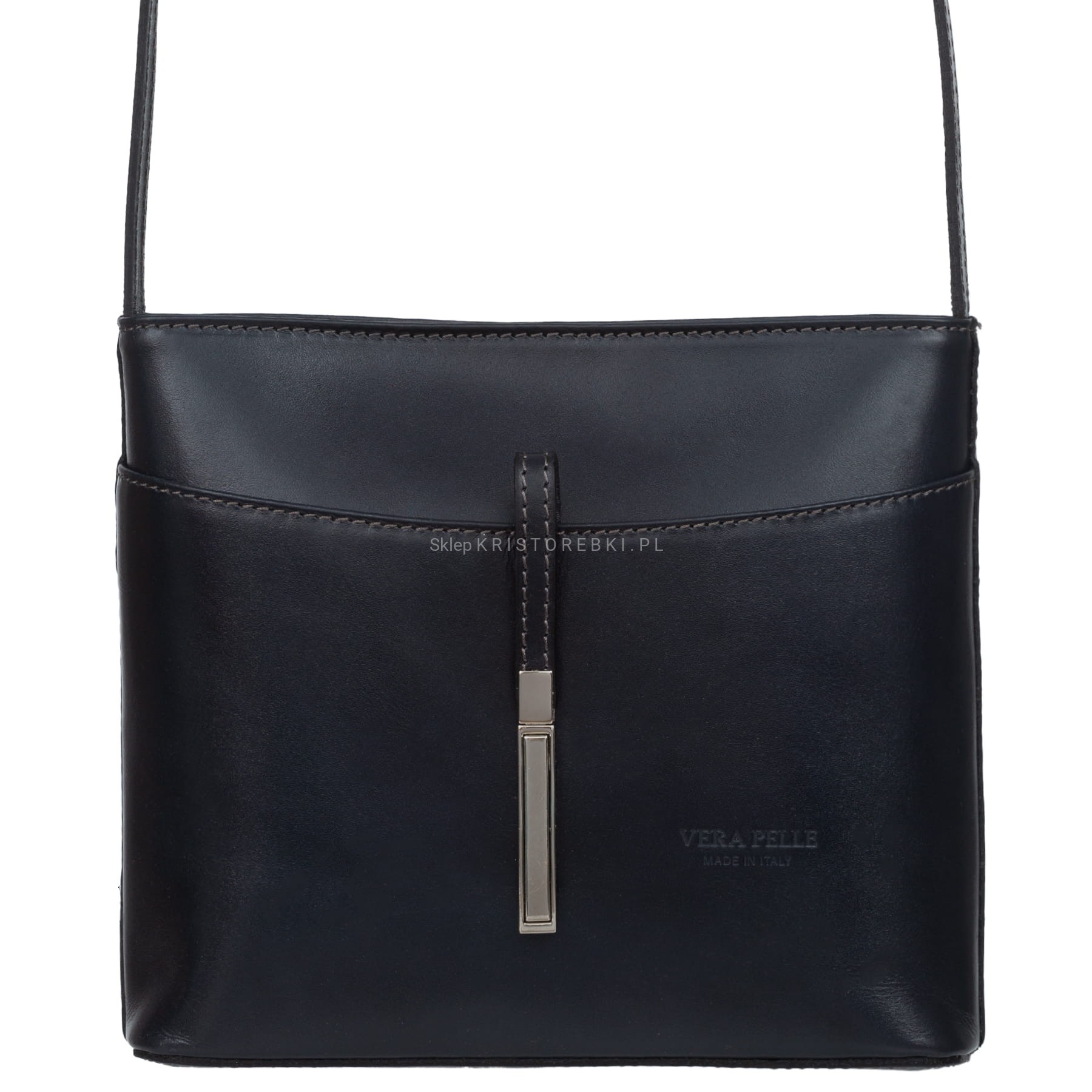 VERA PELLE torebka damska skórzana listonoszka z paskiem na ramię V159 grafitowa