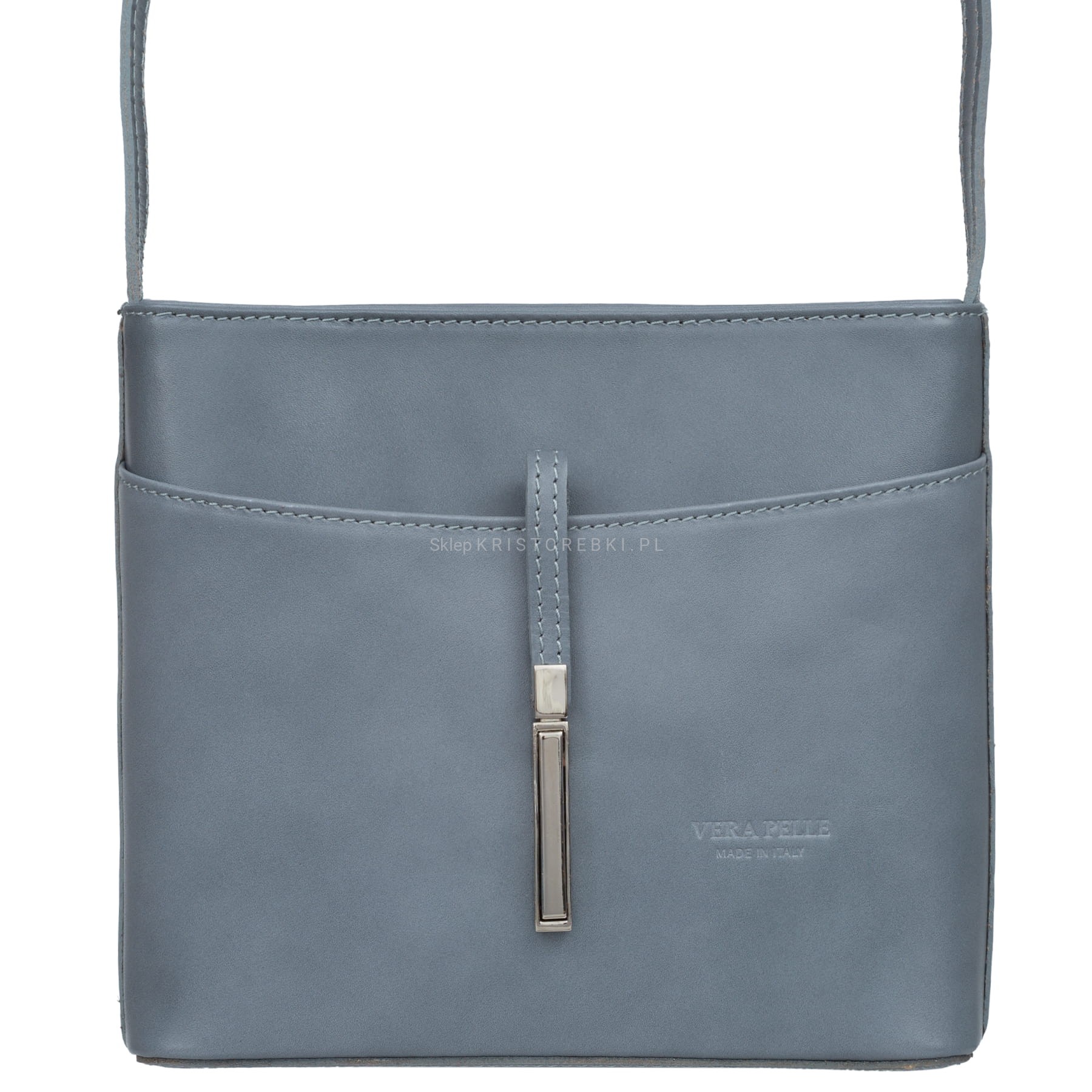 Torebka damska listonoszka znanej i cenionej na rynku europejskim marki VERA PELLE ITALY w kolorze SZARYM GOŁĘBIM. Wykonana została z najwyższej jakości włoskiej skóry naturalnej. Torebka posiada długi regulowany pasek, dzięki czemu możesz ją wygodnie nosić na ramieniu oraz dostosować do własnych preferencji. Wnętrze zamykane jest na suwak oraz wykończone wysokiej jakości podszewką. W środku torebki znajduje się dodatkowa kieszonka zamykana na suwak. Z przodu torebki znajduje się dodatkowa funkcjonalna kieszeń zamykana na zaczep. Z tyłu znajdziesz kolejną funkcjonalną kieszeń zamykaną na suwak. Torebka i jej spód są usztywnione, dzięki czemu nawet bez zawartości pięknie trzyma swój kształt. Jest bardzo praktyczna i funkcjonalna, dzięki czemu będzie dobrze służyła na co dzień i wyjścia okazjonalne.