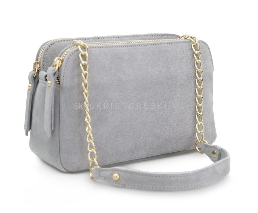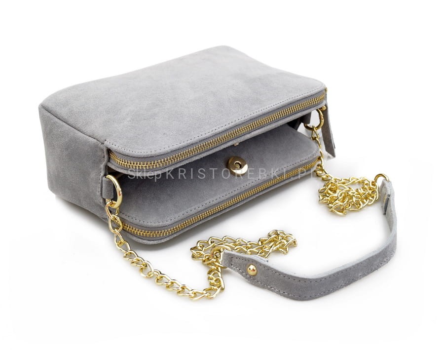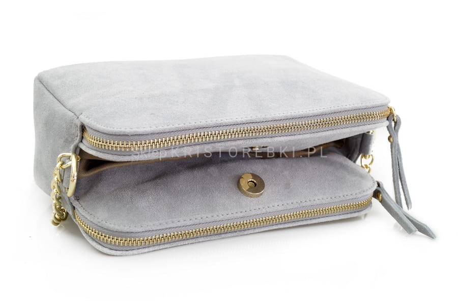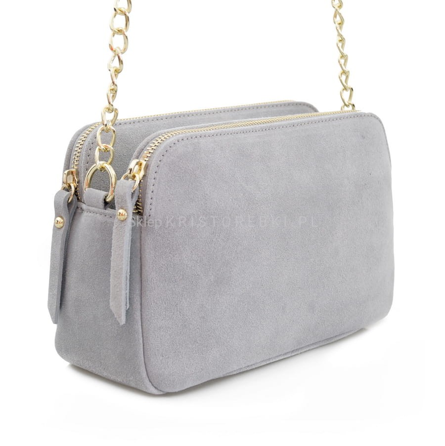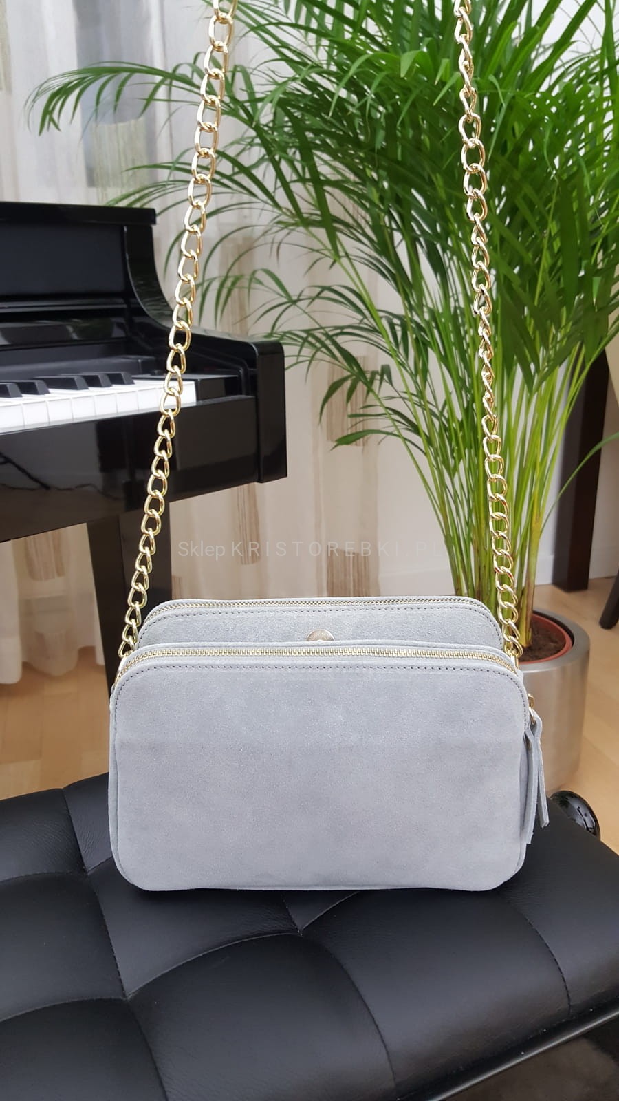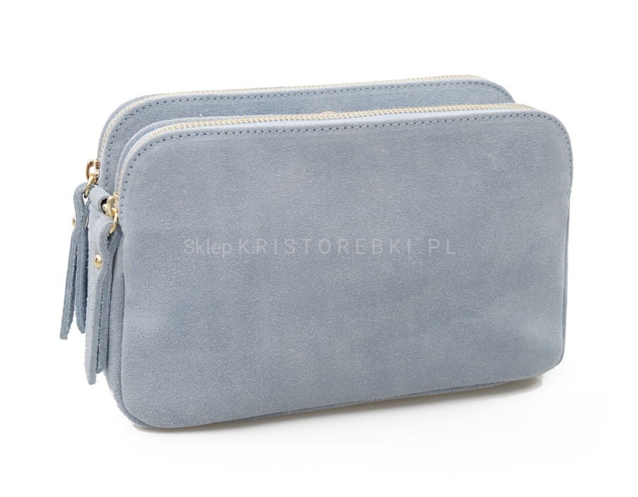 VERA PELLE torebka damska zamszowa listonoszka z łańcuszkiem V171 jasna niebieska