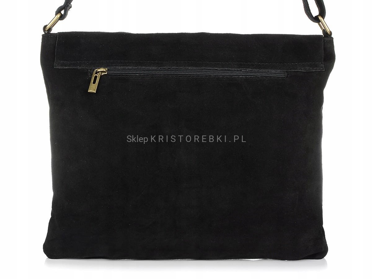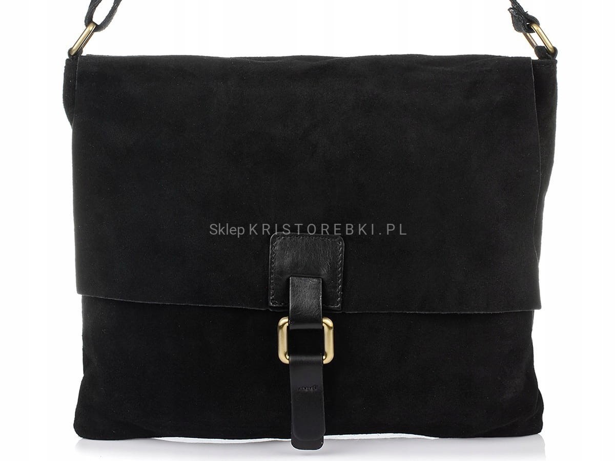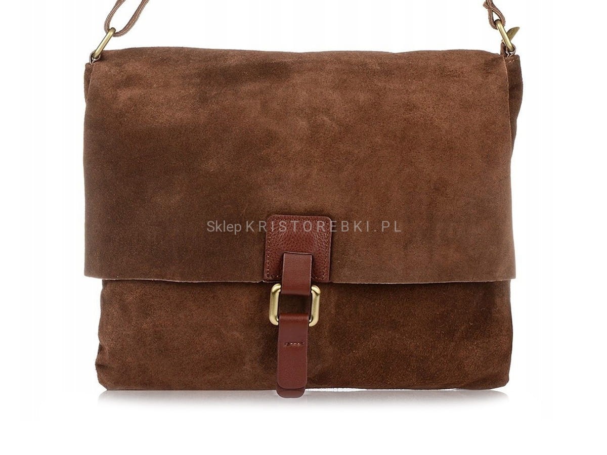 VERA PELLE torebka damska zamszowa listonoszka duża z klapą i paskiem V312 brązowa