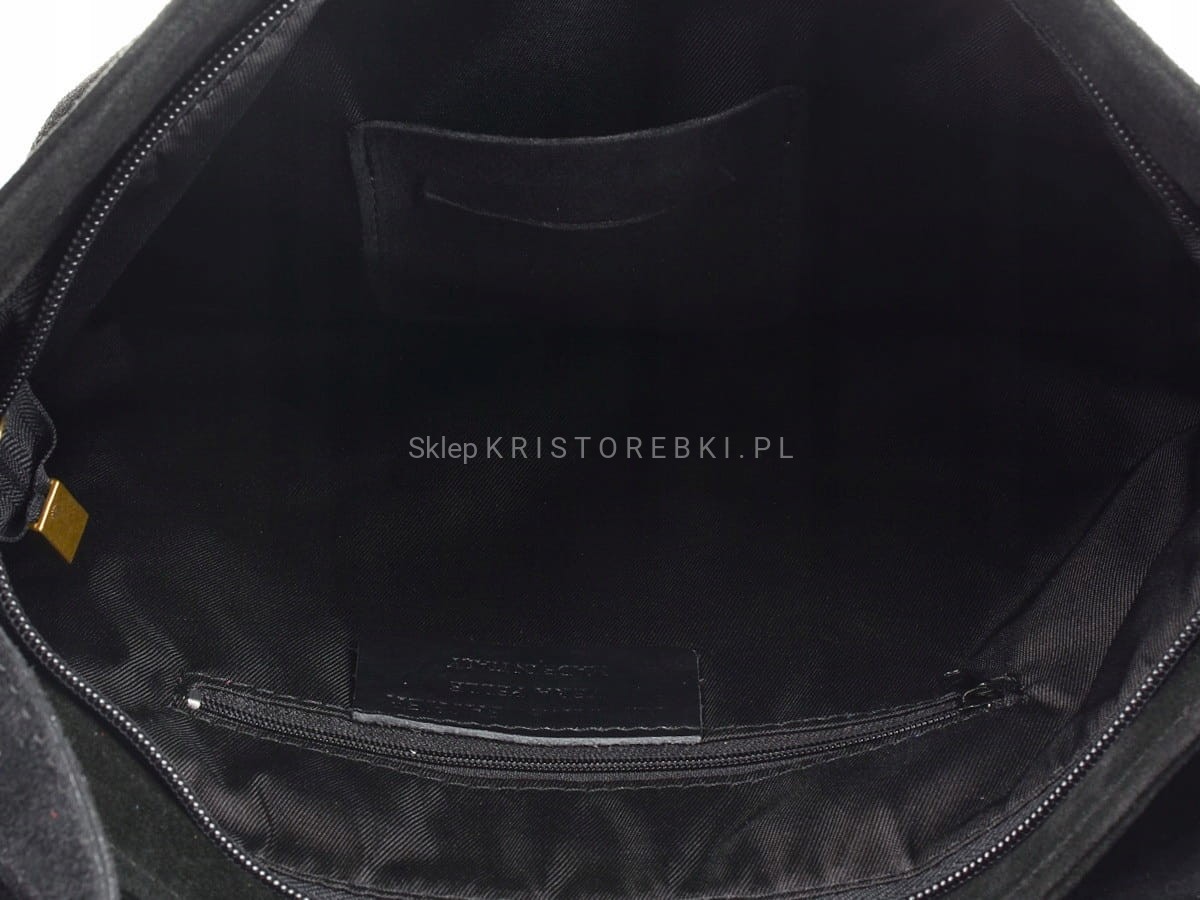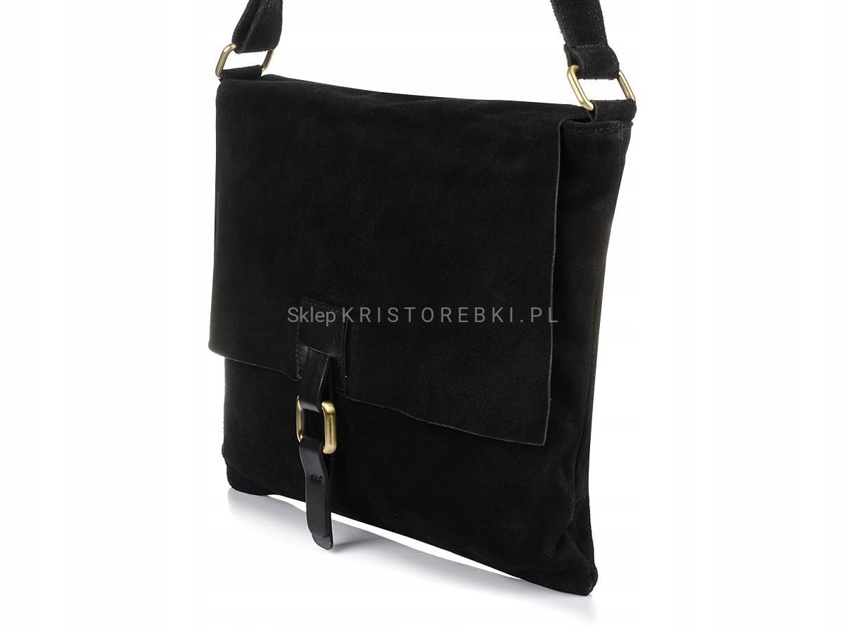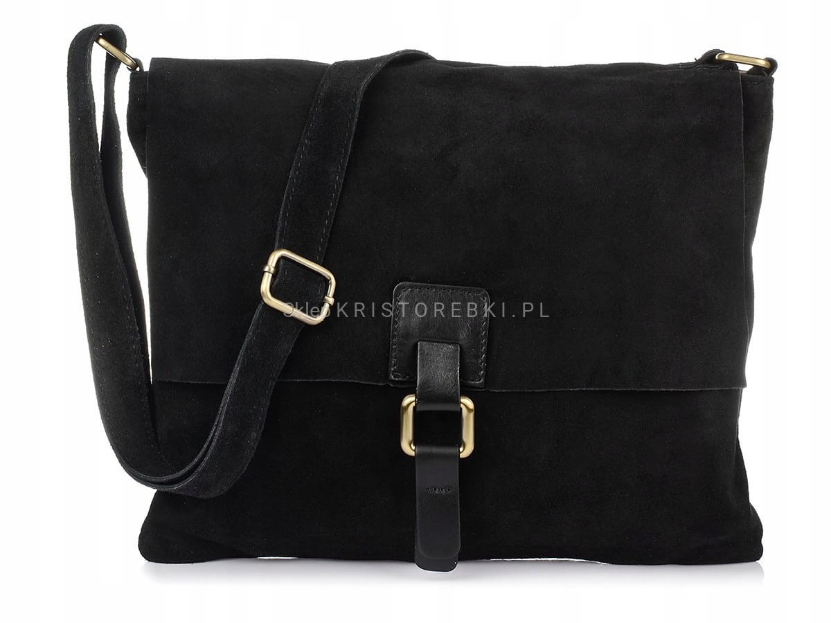 VERA PELLE torebka damska zamszowa listonoszka duża z klapą i paskiem V312 brązowa