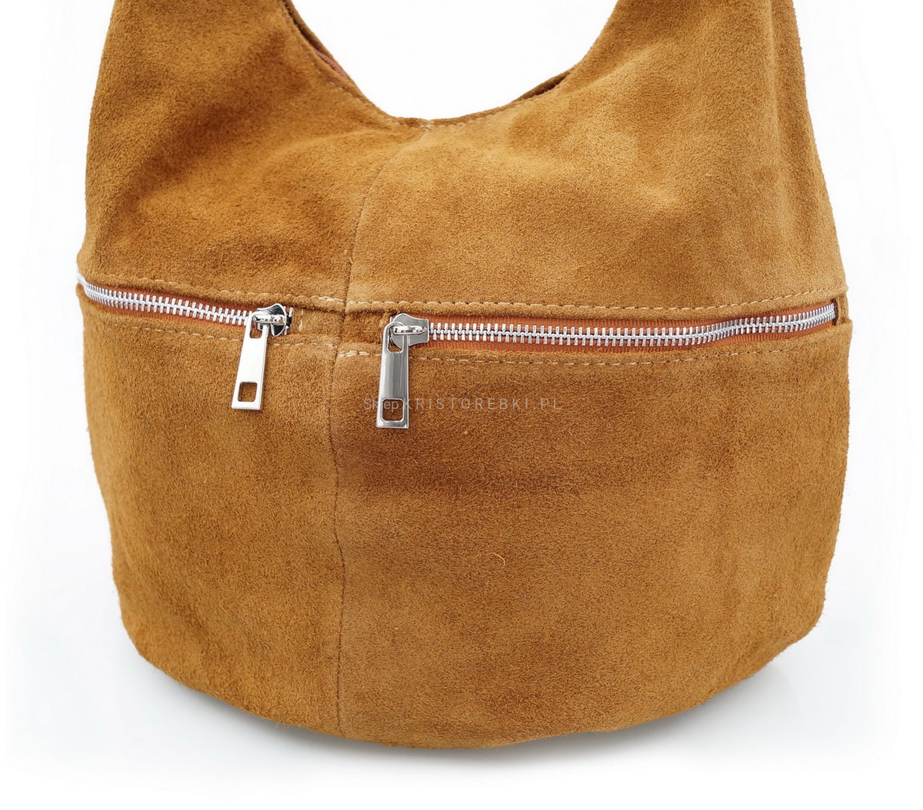 Włoska zamszowa torebka marki VERA PELLE ITALY w kolorze BORDOWYM. Torebka w całości wykonana została z miękkiej i pachnącej, wysokiej jakości skóry naturalnej zamszowej. Jest duża, solidna i praktyczna. Bez trudu pomieści format A4. Z przodu znajdują się dwie nieduże kieszenie zamykane na suwak a z tyłu duża i pojemna dodatkowa zasuwana kieszeń. Torebka posiada okucia w kolorze srebrnym oraz dodatkowo odpinany pasek o długości 115 cm, dzięki czemu możesz ją nosić wygodnie na kilka sposobów - w ręku lub na ramieniu. Główna komora torebki zamykana jest na solidny suwak a środek wykończony jest podszewką. Środek torebki przedzielony jest funkcjonalną, dużą przegrodą zamykaną na zamek błyskawiczny. Dodatkowo w środku znajduje się na bocznej ściance nieduża kieszeń na telefon komórkowy lub dokumenty oraz nieduża kieszonka na suwak - idealna na drobiazgi. Duża liczba kieszonek pozwoli Ci bez trudu utrzymać w niej ład i porządek. Ładny krój i rodzaj użytej skóry sprawia, że będzie pasowała do niemal każdej codziennej stylizacji. Będzie idealna do szkoły, pracy lub na uczelnię.