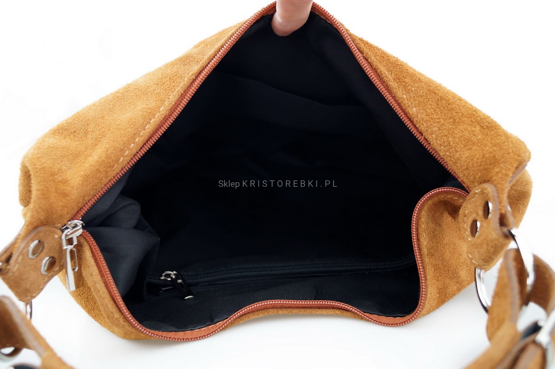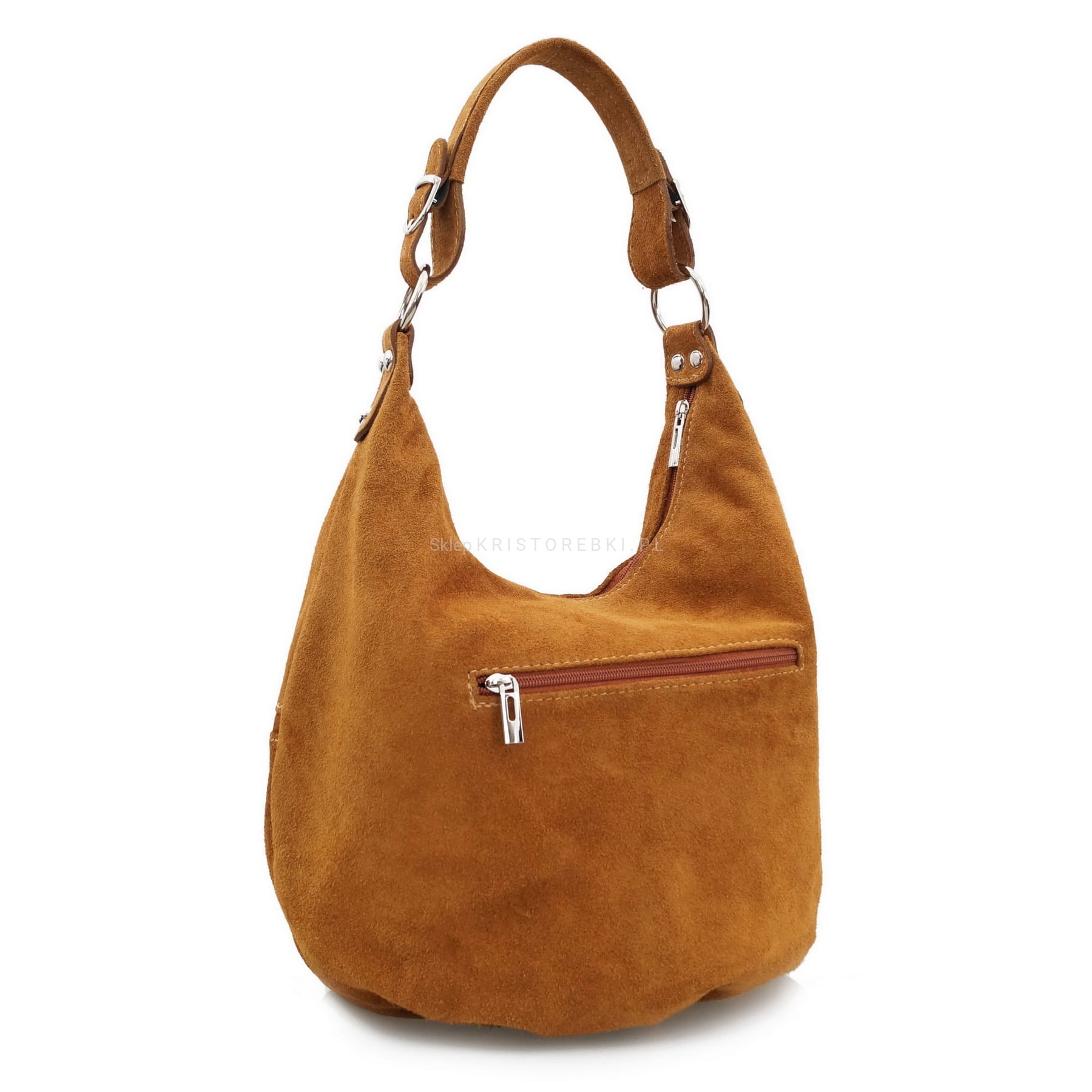 Włoska zamszowa torebka marki VERA PELLE ITALY w kolorze CIEMNEGO CZEKOLADOWEGO BRĄZU. Torebka w całości wykonana została z miękkiej i pachnącej, wysokiej jakości skóry naturalnej zamszowej. Jest duża, solidna i praktyczna. Bez trudu pomieści format A4. Z przodu znajdują się dwie nieduże kieszenie zamykane na suwak a z tyłu duża i pojemna dodatkowa zasuwana kieszeń. Torebka posiada okucia w kolorze srebrnym oraz dodatkowo odpinany pasek o długości 115 cm, dzięki czemu możesz ją nosić wygodnie na kilka sposobów - w ręku lub na ramieniu. Główna komora torebki zamykana jest na solidny suwak a środek wykończony jest podszewką. Środek torebki przedzielony jest funkcjonalną, dużą przegrodą zamykaną na zamek błyskawiczny. Dodatkowo w środku znajduje się na bocznej ściance nieduża kieszeń na telefon komórkowy lub dokumenty oraz nieduża kieszonka na suwak - idealna na drobiazgi. Duża liczba kieszonek pozwoli Ci bez trudu utrzymać w niej ład i porządek. Ładny krój i rodzaj użytej skóry sprawia, że będzie pasowała do niemal każdej codziennej stylizacji. Będzie idealna do szkoły, pracy lub na uczelnię.