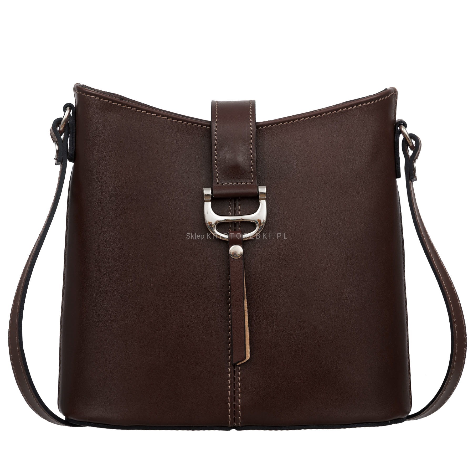 Sztywna torebka damska listonoszka znanej i cenionej na rynku europejskim marki VERA PELLE ITALY w kolorze CIEMNEGO CZEKOLADOWEGO BRĄZU. Uszyta została z najwyższej jakości pachnącej włoskiej skóry naturalnej licowej. Torebka posiada długi i regulowany pasek, dzięki czemu można ją wygodnie nosić na ramieniu i dopasować do własnych preferencji. Torebka posiada srebrne okucia i zamykana jest na ozdobną klamrę na pasku z magnesikiem. Jednokomorowy środek zamykany jest na suwak i wykończony podszewką. W środku znajdziesz praktyczną kieszonkę zamykaną na suwak oraz otwartą kieszonkę na telefon lub dokumenty. Z tyłu znajduje się kolejna praktyczna kieszonka zamykana na suwak as spód jest dodatkowo usztywniony. Torebka jest bardzo wygodna i praktyczna. Będzie świetnym dodatkiem do codziennych i wyjściowych stylizacji.