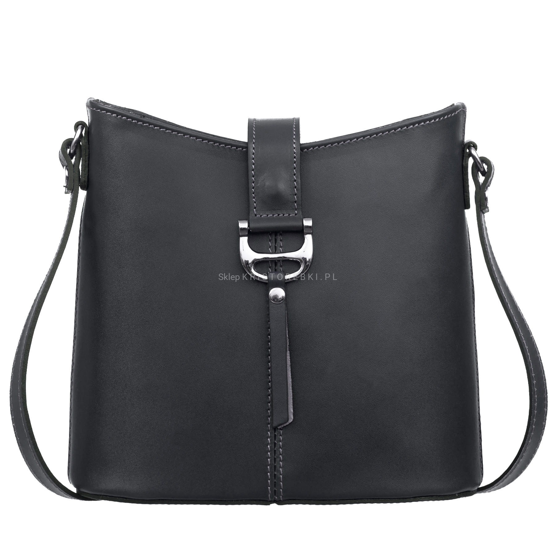 Sztywna torebka damska listonoszka znanej i cenionej na rynku europejskim marki VERA PELLE ITALY w kolorze GRAFITOWYM. Uszyta została z najwyższej jakości pachnącej włoskiej skóry naturalnej licowej. Torebka posiada długi i regulowany pasek, dzięki czemu można ją wygodnie nosić na ramieniu i dopasować do własnych preferencji. Torebka posiada srebrne okucia i zamykana jest na ozdobną klamrę na pasku z magnesikiem. Jednokomorowy środek zamykany jest na suwak i wykończony podszewką. W środku znajdziesz praktyczną kieszonkę zamykaną na suwak oraz otwartą kieszonkę na telefon lub dokumenty. Z tyłu znajduje się kolejna praktyczna kieszonka zamykana na suwak as spód jest dodatkowo usztywniony. Torebka jest bardzo wygodna i praktyczna. Będzie świetnym dodatkiem do codziennych i wyjściowych stylizacji.