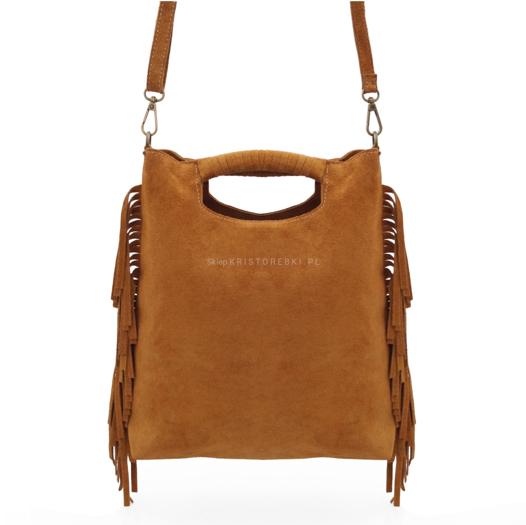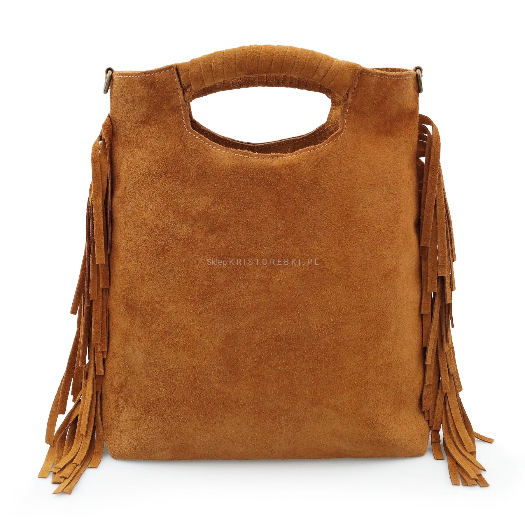 | Dodatkowe informacje | po bokach ozdobne frędzle w stylu boho + plecione rączki dzięki którym można nosić torebkę również w ręku |