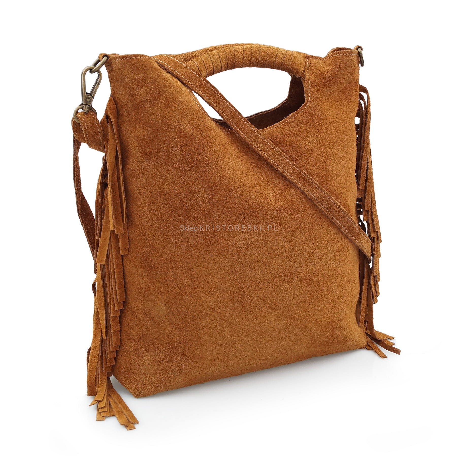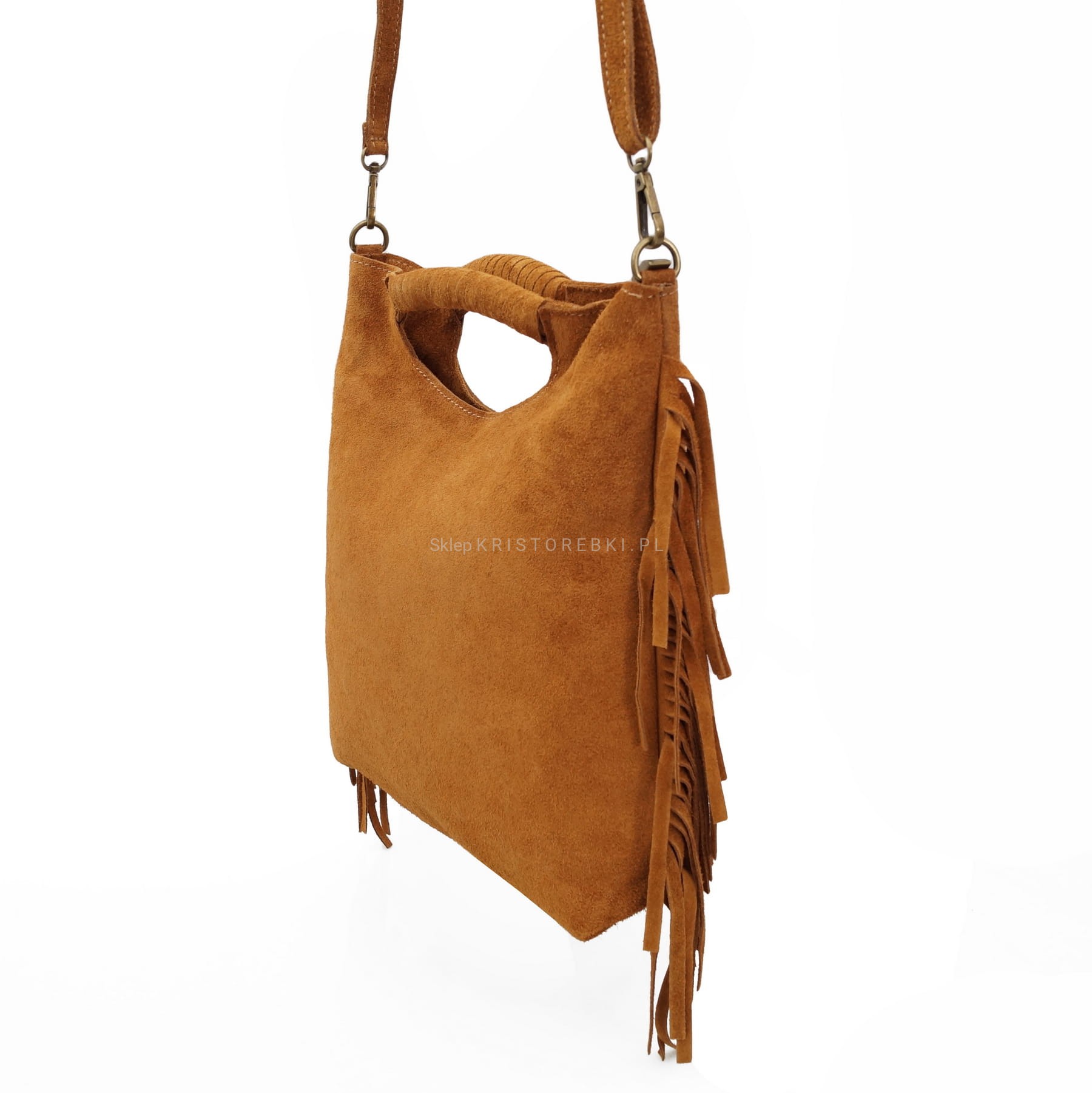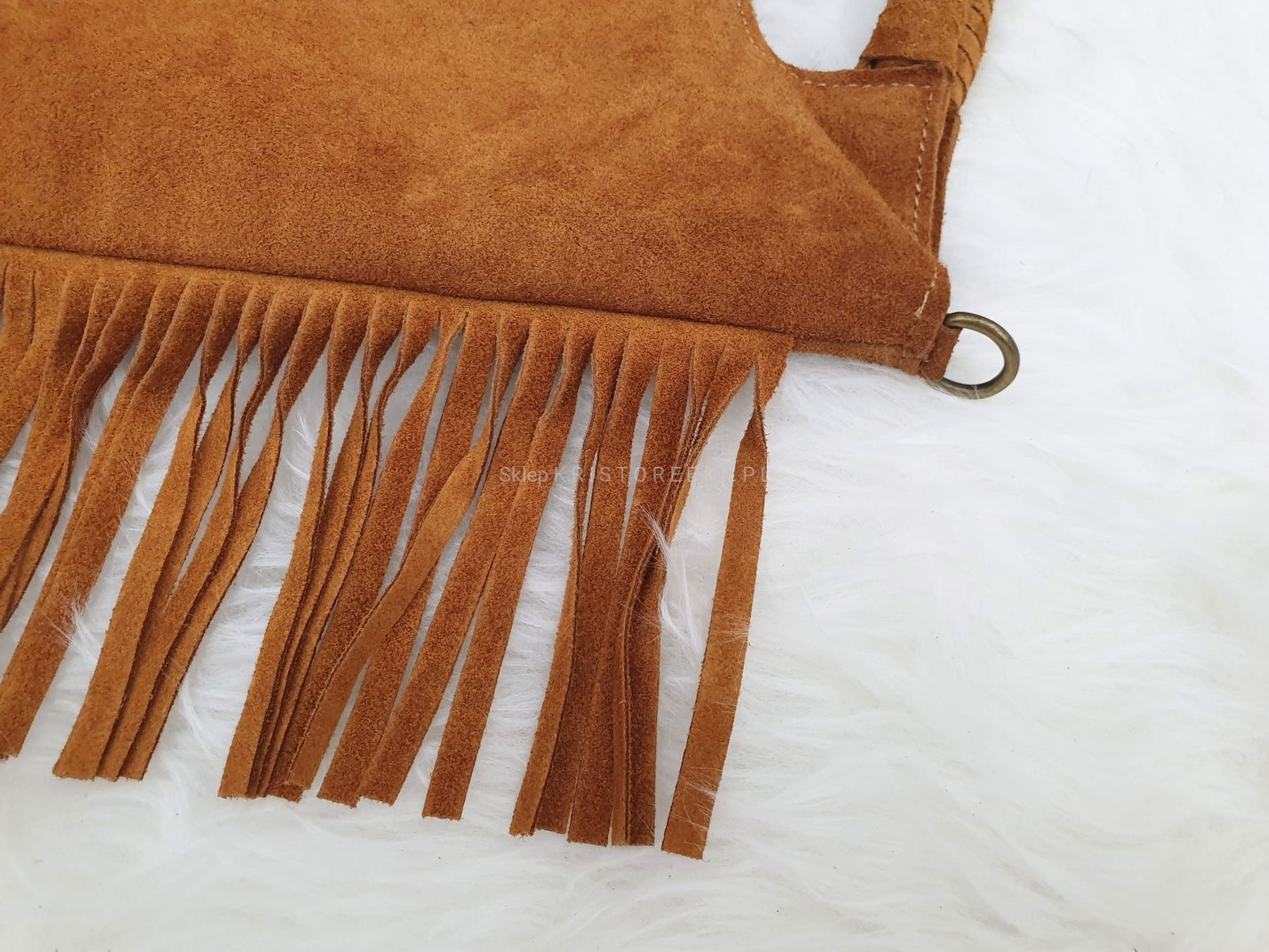 | Dodatkowe informacje | po bokach ozdobne frędzle w stylu boho + plecione rączki dzięki którym można nosić torebkę również w ręku |