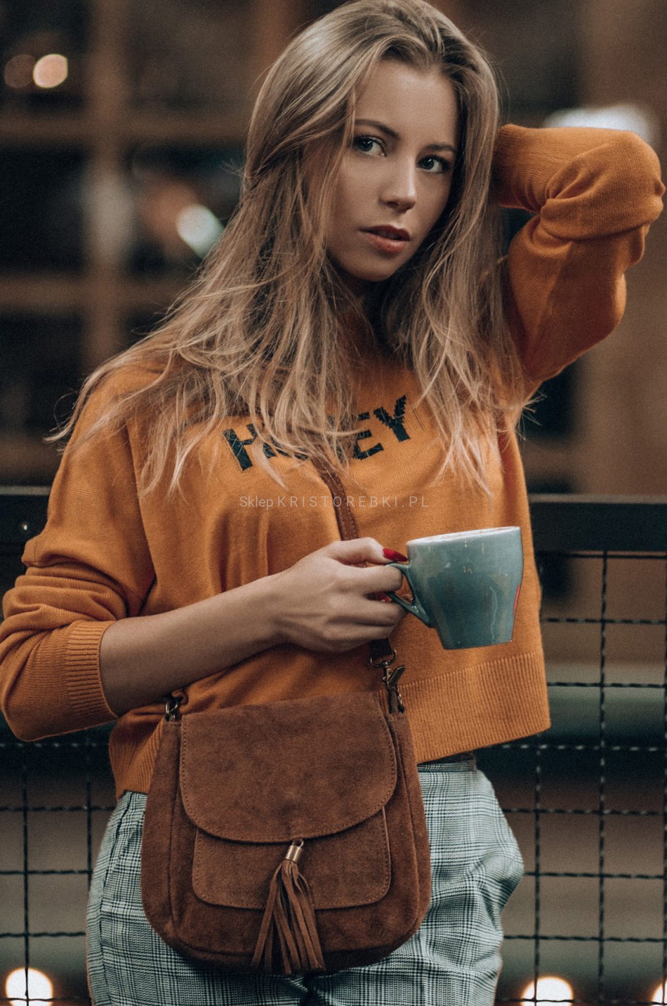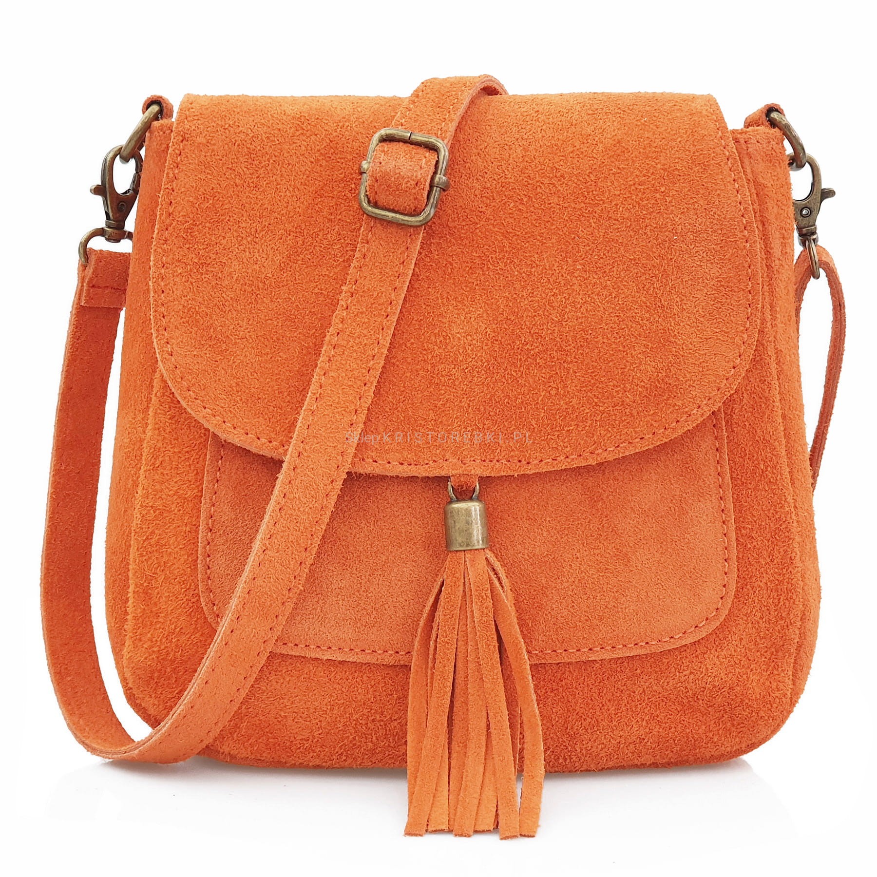 VERA PELLE torebka damska zamszowa listonoszka na ramię z klapą V449 pomarańczowa