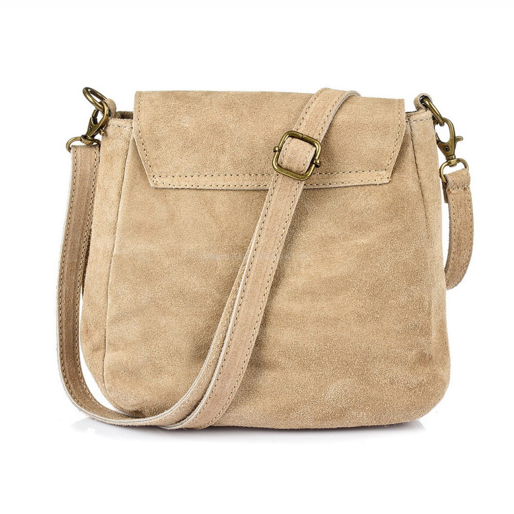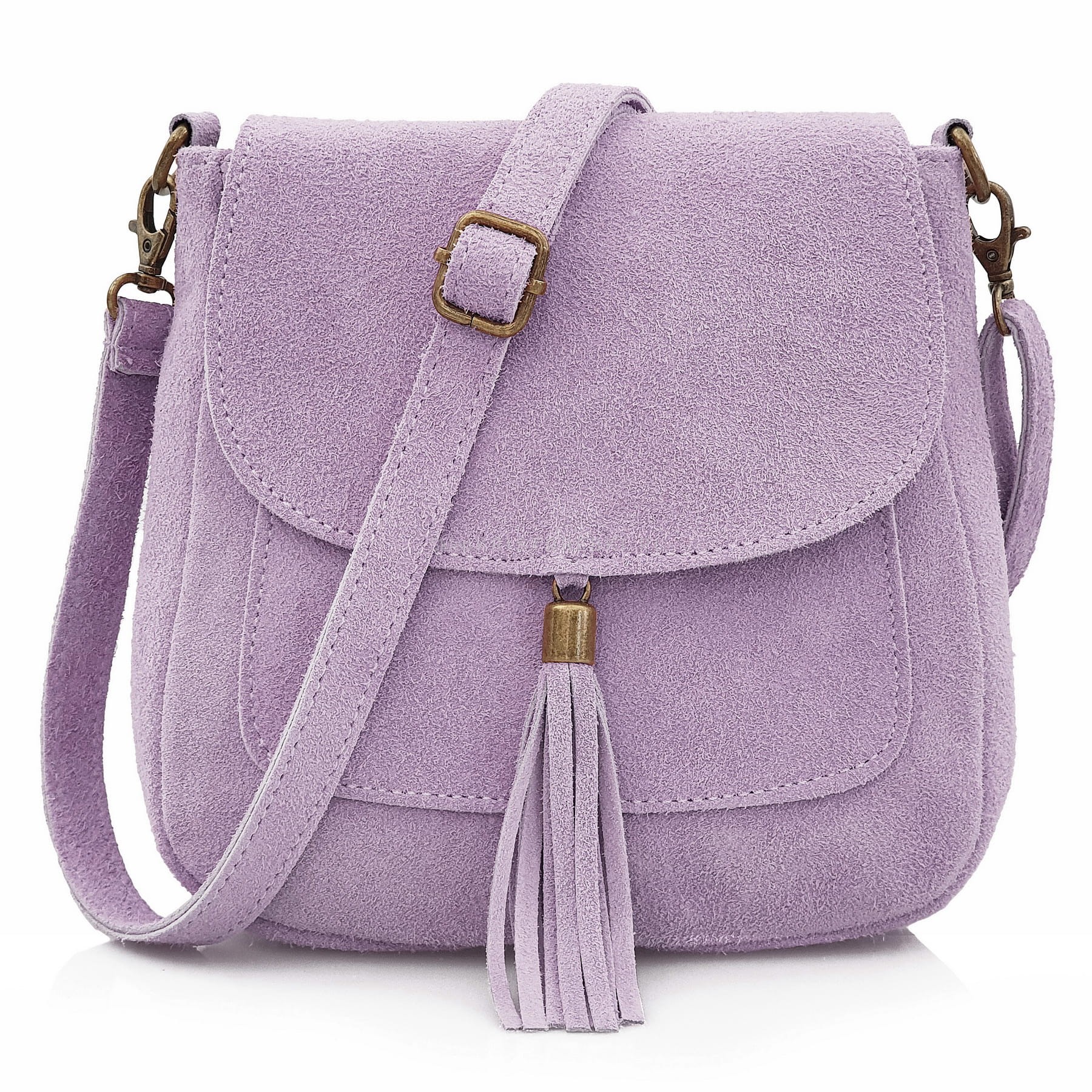 VERA PELLE torebka damska zamszowa listonoszka na ramię z klapą V449 wrzosowa