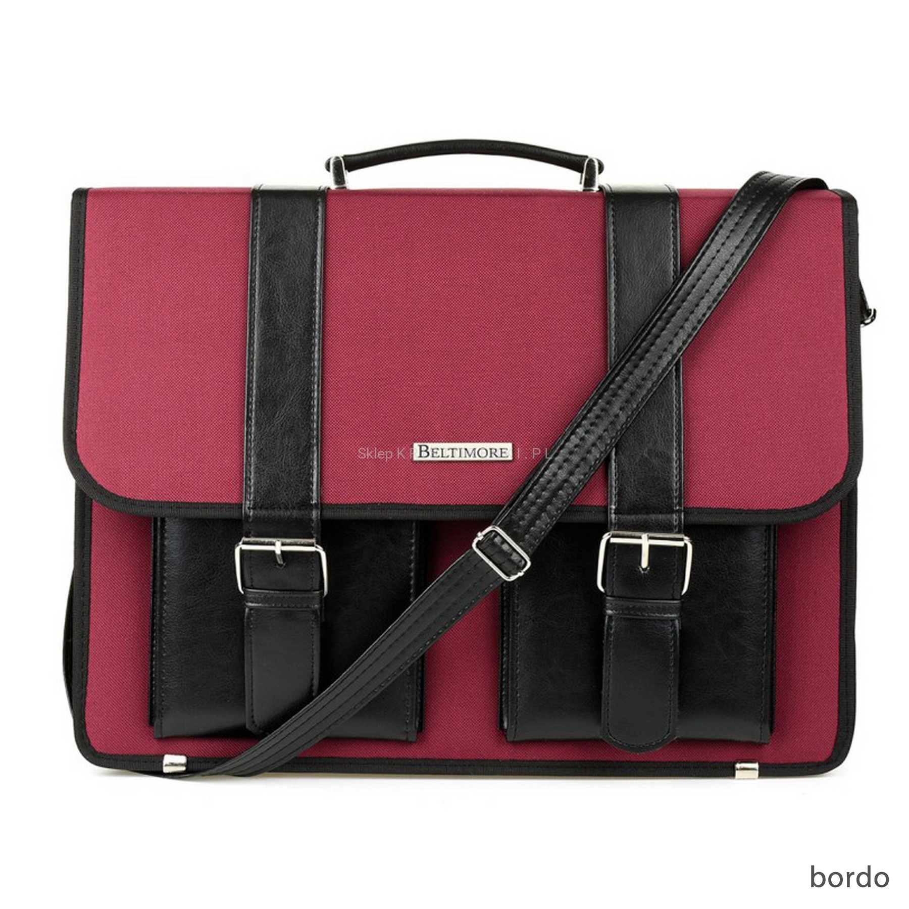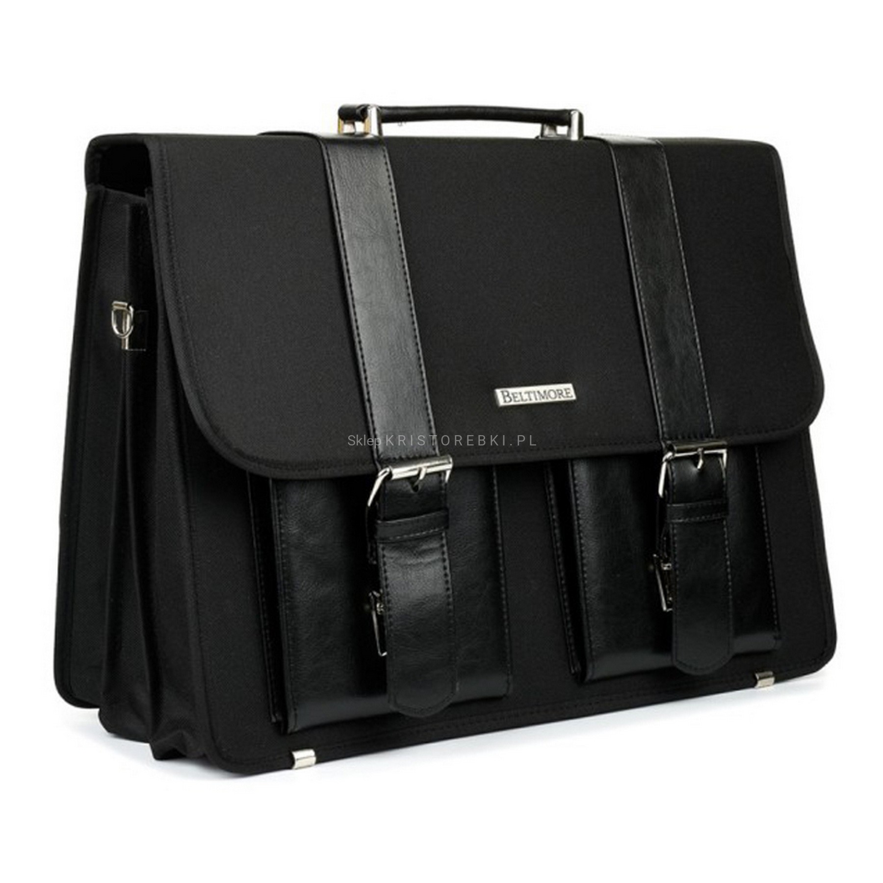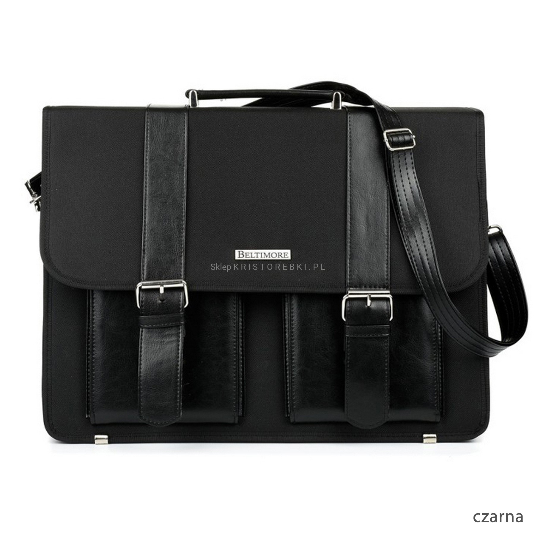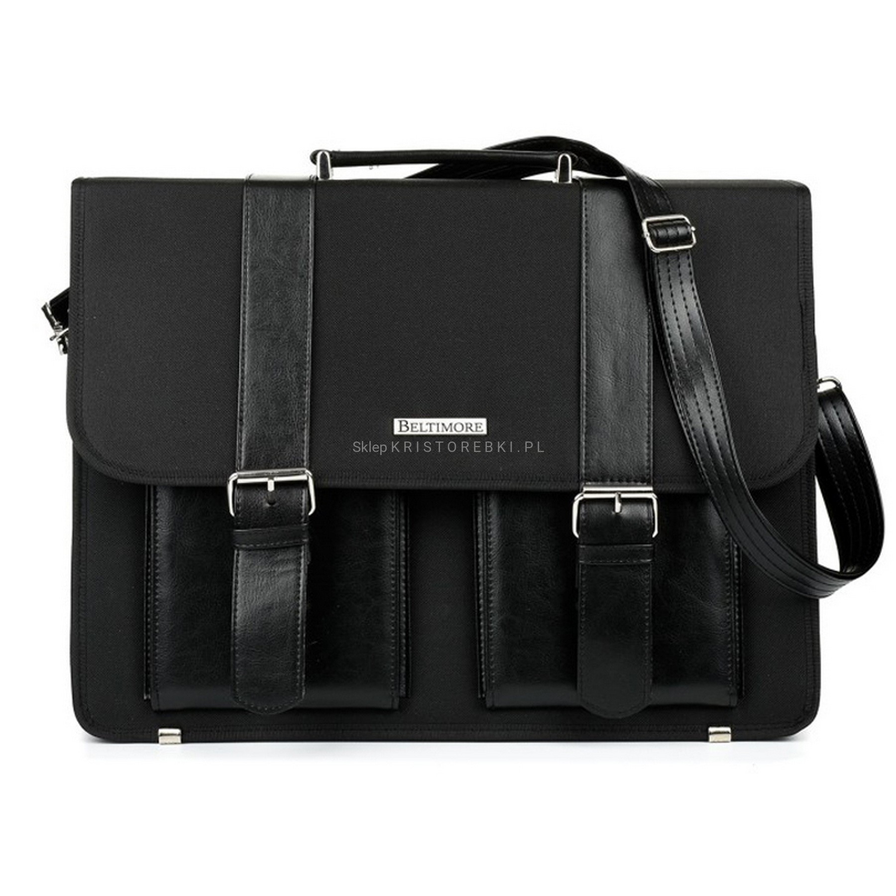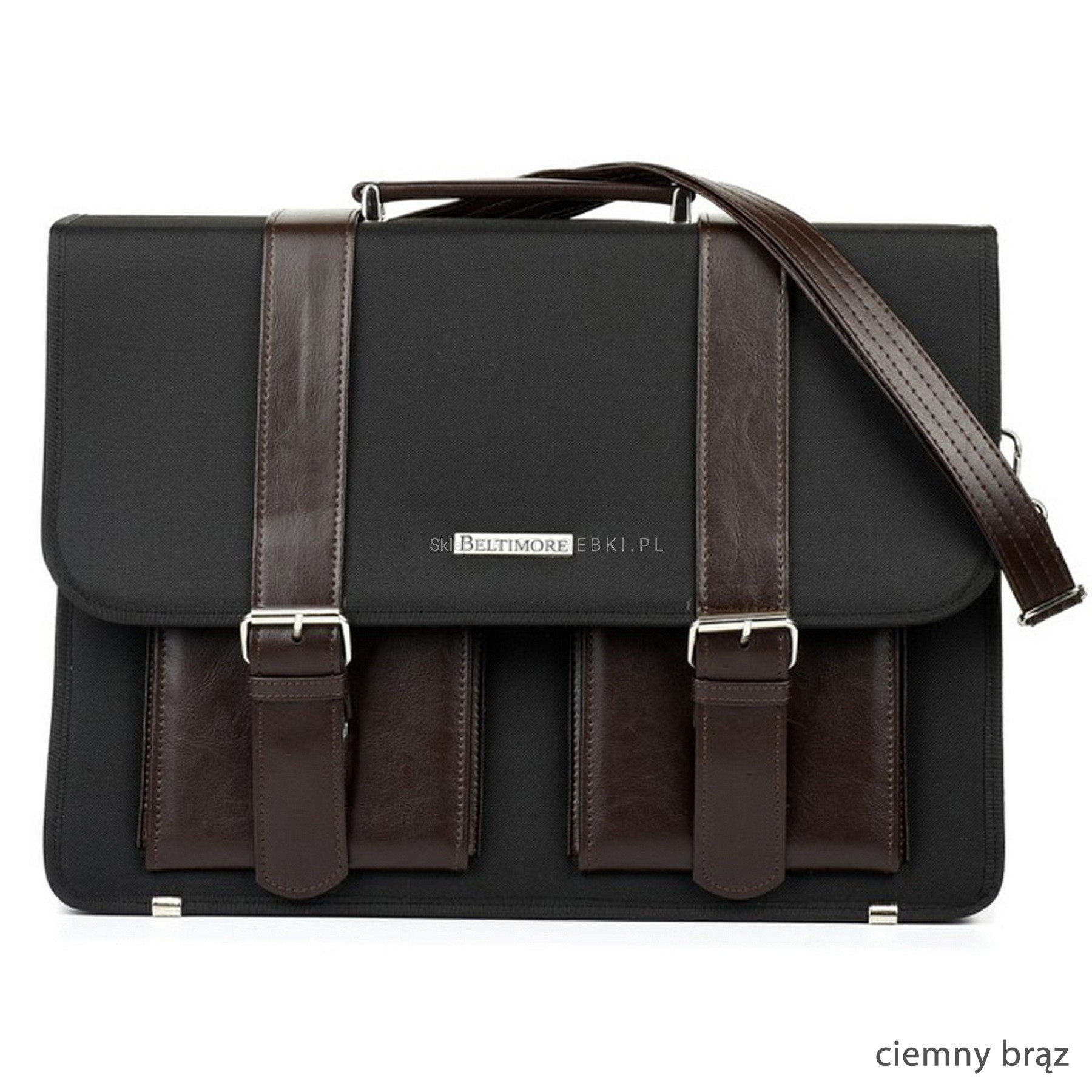 Praktyczna i funkcjonalna torba, teczka męska marki BELTIMORE dostępna w modnych KOLORACH. Wyprodukowana została bardzo starannie z dbałością o najmniejsze szczegóły z wysokiej jakości tkaniny oraz wstawek ze skóry ekologicznej. Jest bardzo pojemna więc bez trudu zmieści sztywny format A4 a nawet dużego laptopa lub tablet. Główna klapa torby zamykana jest na dwie odpinane klamry. Bezpośrednio pod klapą, z przodu znajdują się dwie nieduże kieszonki na drobiazgi. W środku torby znajdują się 3 oddzielne, pojemne komory z czego jedna zamykana na suwak. W głównej komorze znajdziesz kieszonkę na telefon, karty płatnicze oraz specjalne uchwyty na pióra i długopisy, dzięki czemu bez trudu utrzymasz w niej ład i porządek. Z tyłu znajdziesz dodatkową, dużą kieszonkę zamykaną na suwak. Torbę można nosić w ręku dzięki zamocowanemu, solidnemu uchwytowi. Do zestawu dołączony jest również długi, regulowany i odpinany pasek o maksymalnej długości 140cm, dzięki czemu torbę możesz nosić również wygodnie na ramieniu. Spód torby chronią metalowe nóżki. Idealnie sprawdzi się do pracy i wyjścia służbowe a niespotykany wygląd podkreśli Twój indywidualny styl, charakter i klasę.