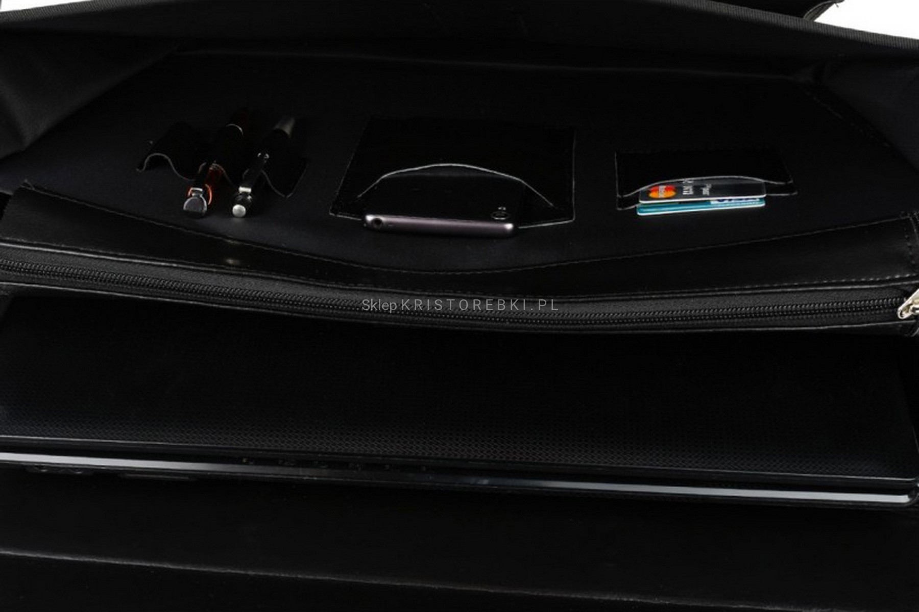 | Cechy wnętrza | w środku kieszonka na telefon, karty płatnicze oraz długopisy i pióra |