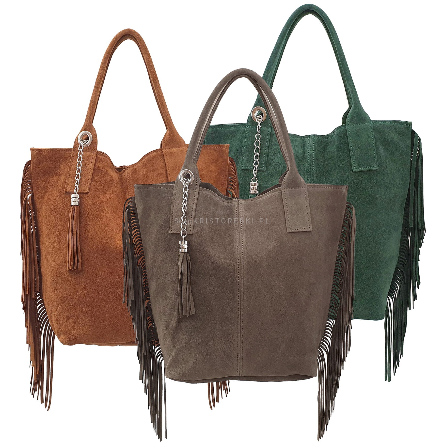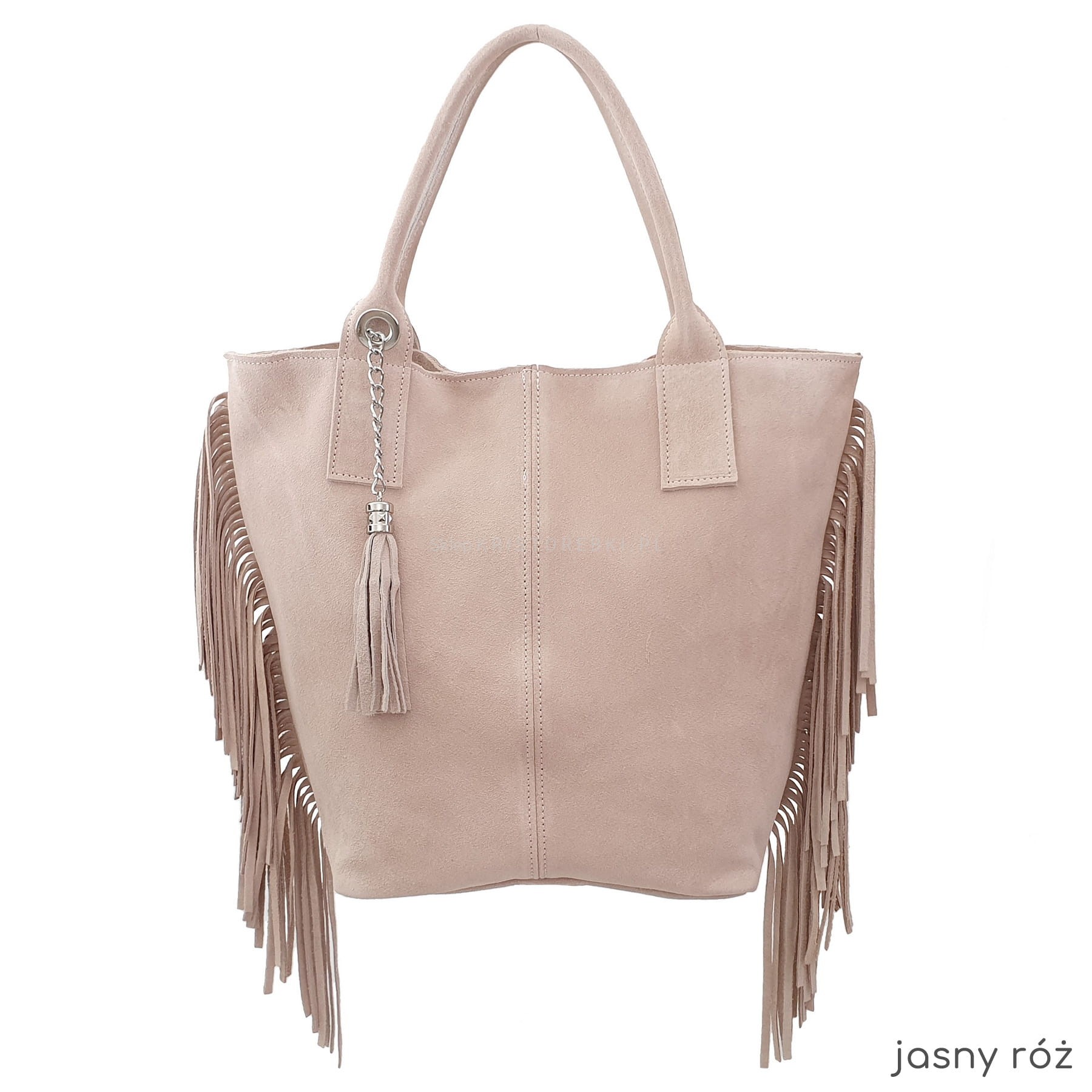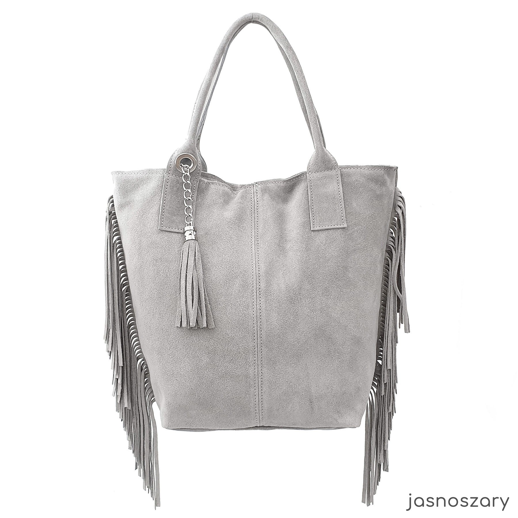 VERA PELLE torebka damska zamszowa shopper z frędzlami i saszetką V460 kolory